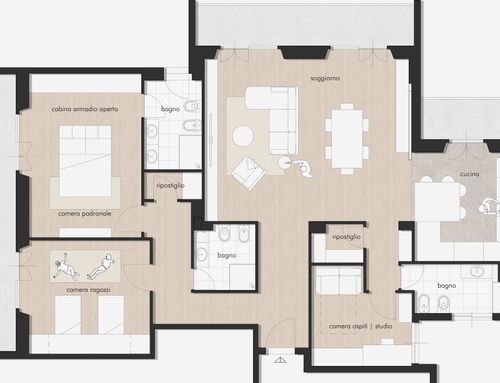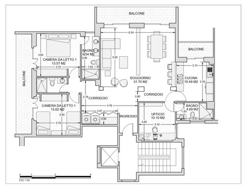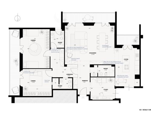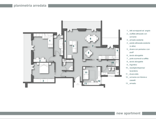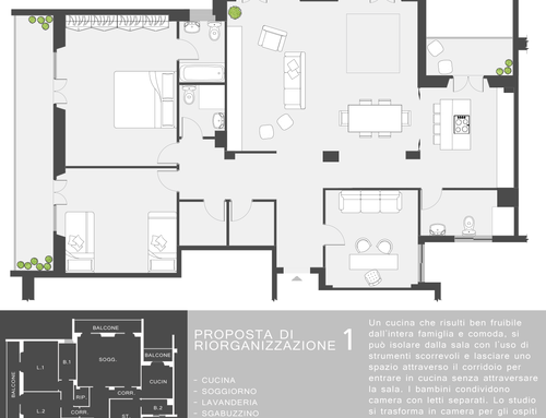 Salve a tutti, ho un appartamento di circa 113mq(calpestabili), appena acquistato, dove vorrei riorganizzare gli spazi interni dell'immobile.