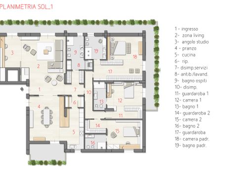 • Nelle due stanze dei ragazzi vi preghiamo di inserire delle ampie zone studio fornite di una capiente libreria. Grazie