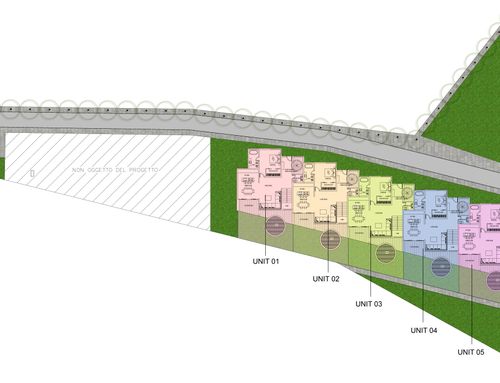 The hypothetical housing units can have dimensions ranging from 65/80 square meters (to offer two or more types, even in the possibility of using the entire area). It is considered that garages are not necessary as it is a seaside resort.