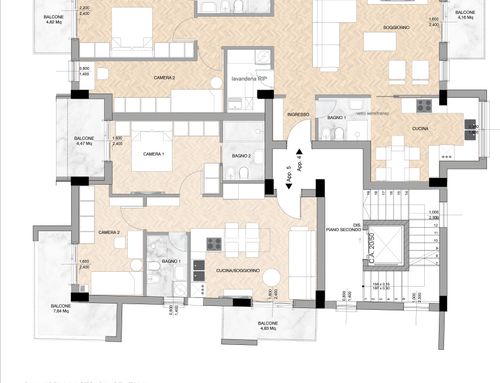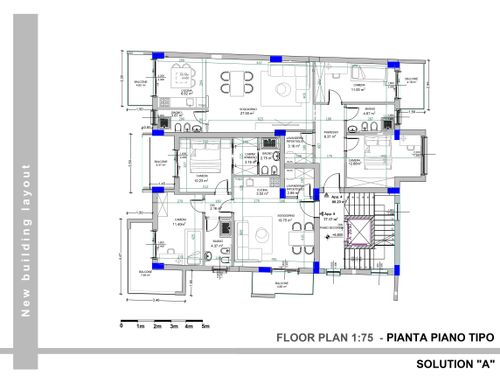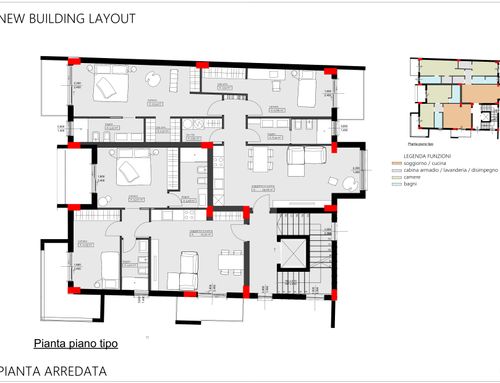 Hola a todos, estamos construyendo un nuevo edificio y estamos reevaluando la reconfiguración de los espacios internos de los apartamentos. AgradecerÃamos una solución diferente de la ya existente, sin modificar las fachadas que aparecen en las fotos adjuntas.