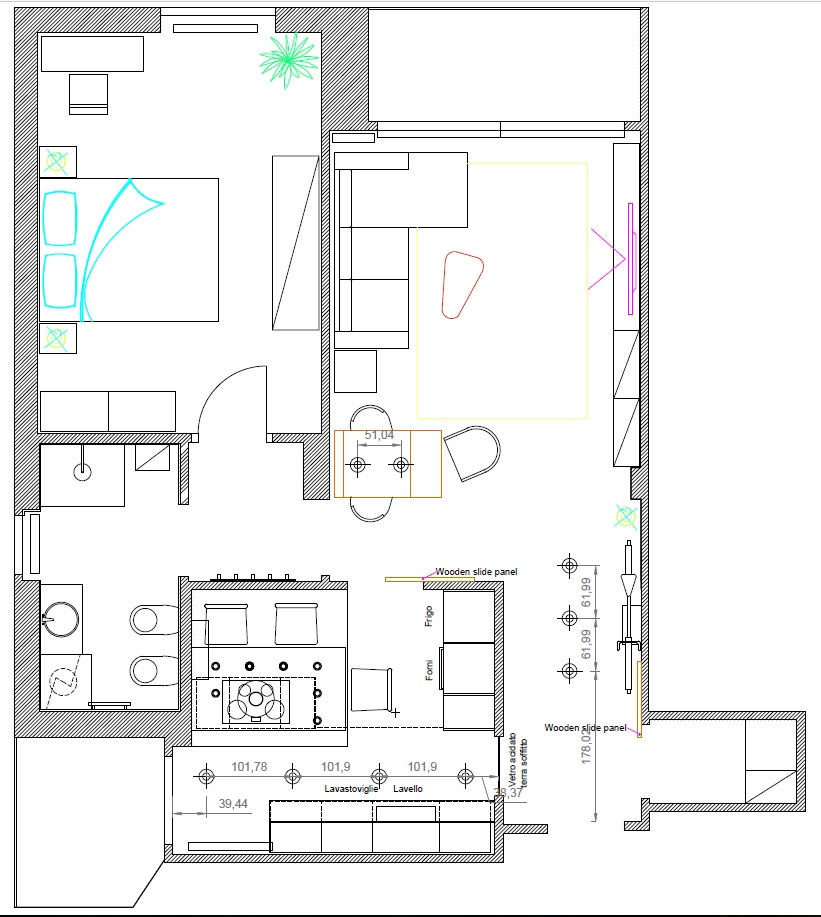 We like suspended, movable furniture for easy cleaning and enhance the parquet. Not too many stuff on the wall and a bright environment.