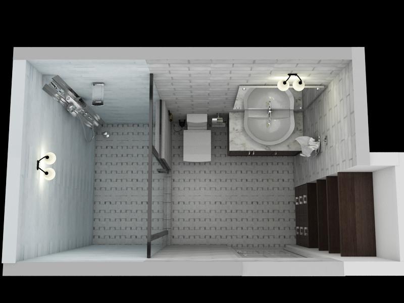 We are getting ready to build this new guest bathroom and are looking for a mockup of how it will look. The room has no windows and is adjacent to a second floor stairway/front hall. I would like to see the design w the materials links supplied in a couple of different lighting mood's and perhaps you can help us design it and other rooms.