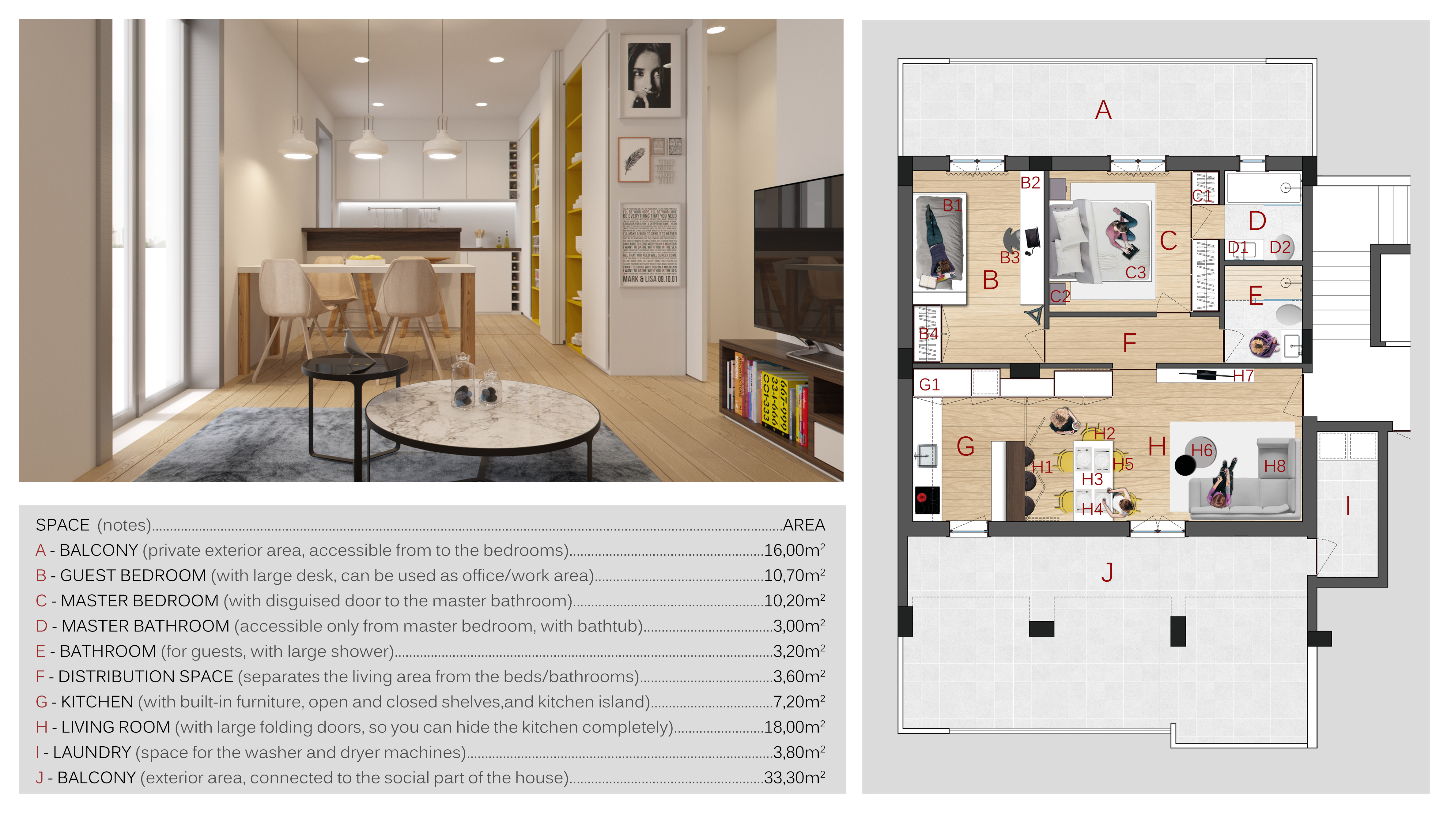 ZONA GIORNO: SOGGIORNO+CUCINA, MI PIACEREBBE UN OPEN SPACE, CHE PERO ALL'OCCORRENZA LA CUCINA SI POTESSE CHIUDERE/DIVIDERE DALLA ZONA GIORNO. UNA CUCINA ABBASTANZA VIVIBILE, INCORPORANDO UNA PENISOLA/O ISOLA DOVE POTER FAR COLAZIONE/PRANZO VELOCE.