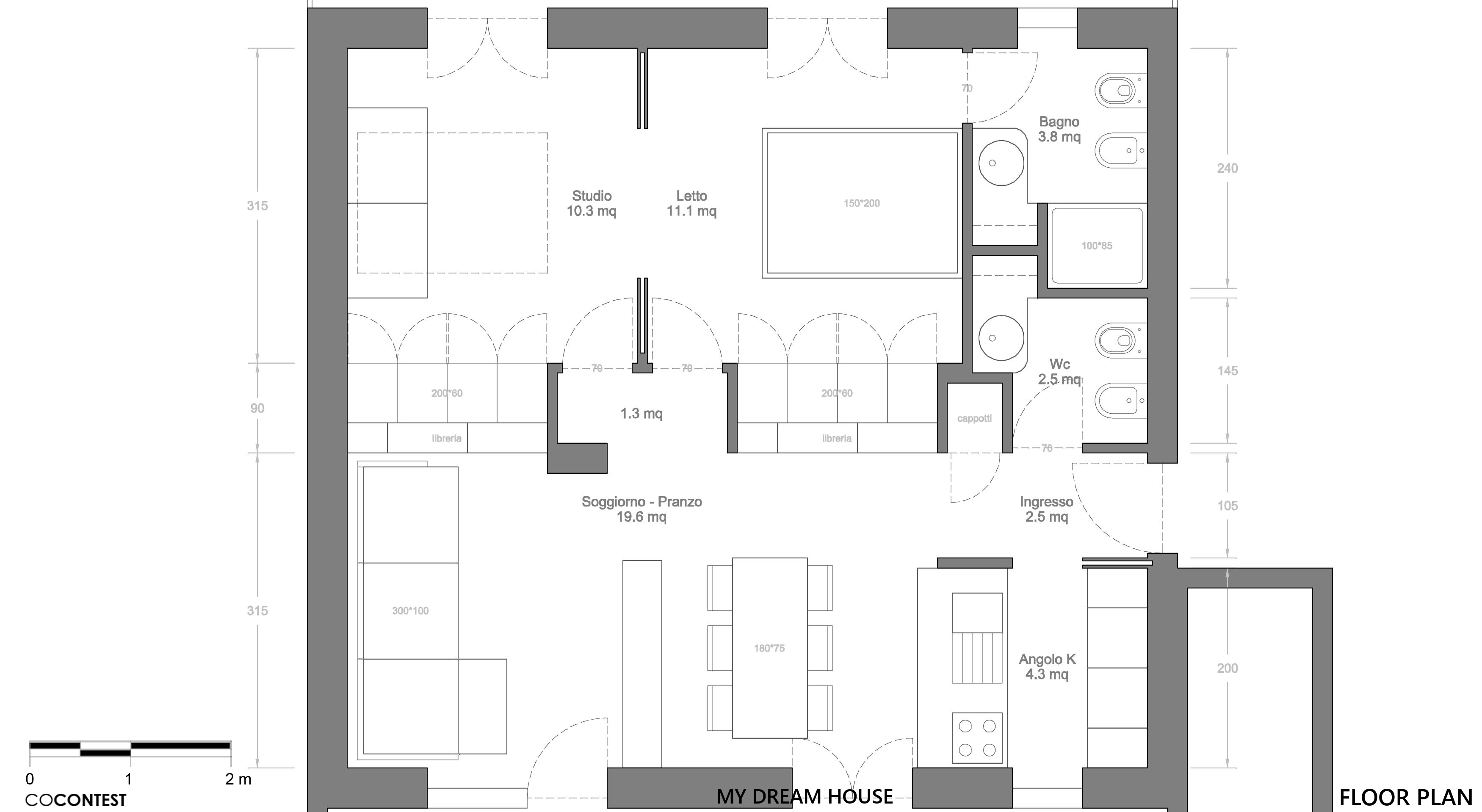 P.S. : VI COMUNICO CHE LA DISPOSIZIONE DELLE FINIESTRE PUO' ESSERE MODIFICATA, PERO' IL BAGNO DEVE VENIRE SEMPRE IN QUEL PUNTO.