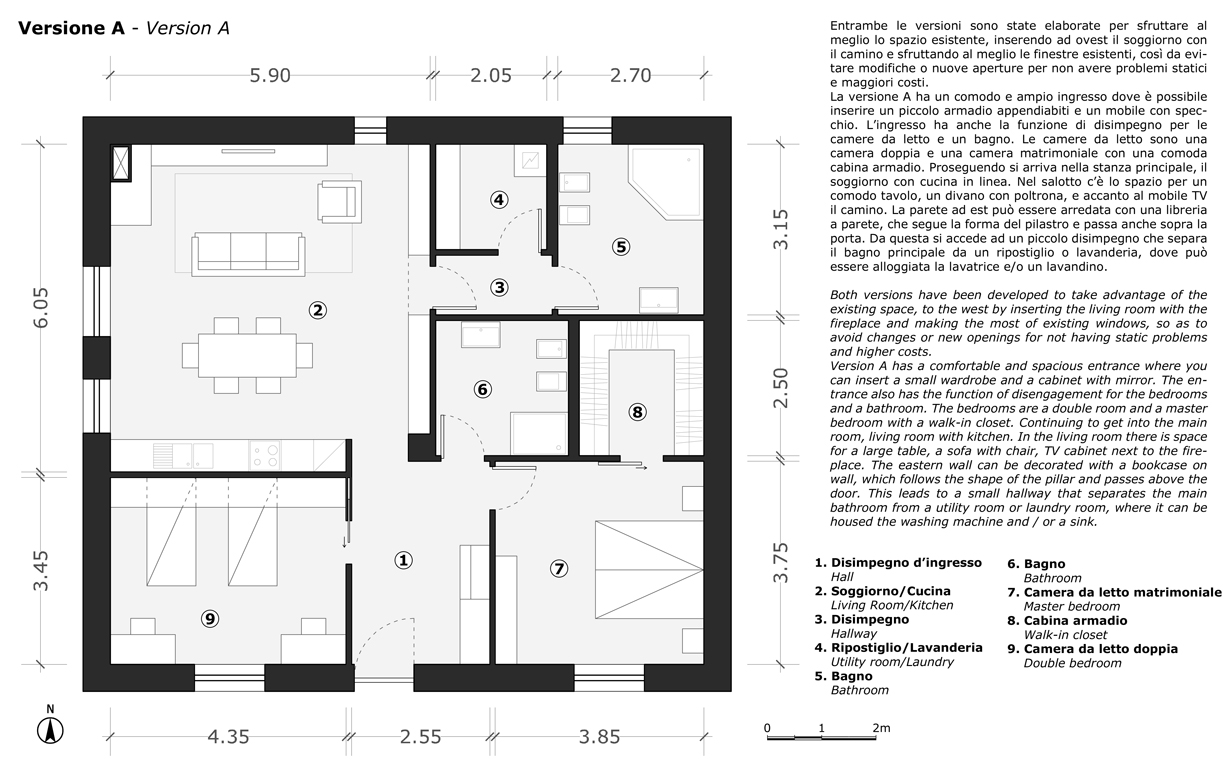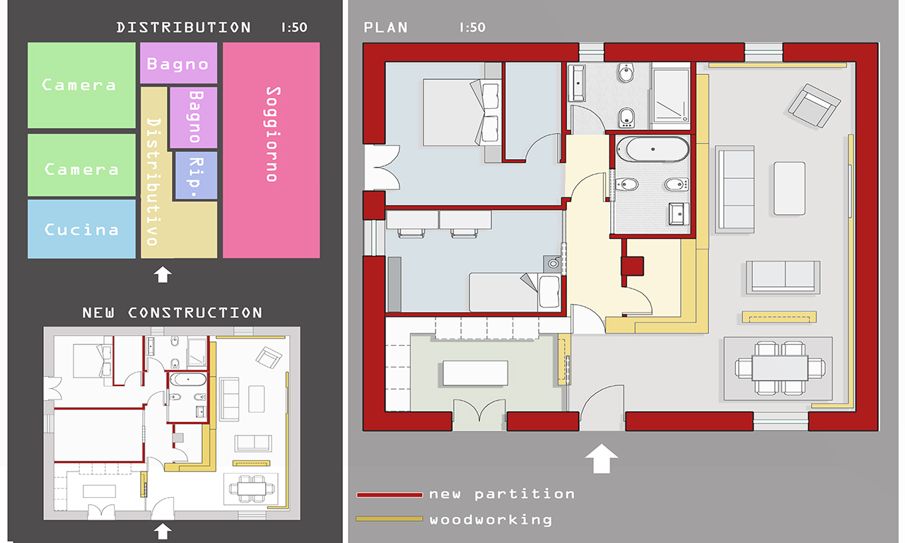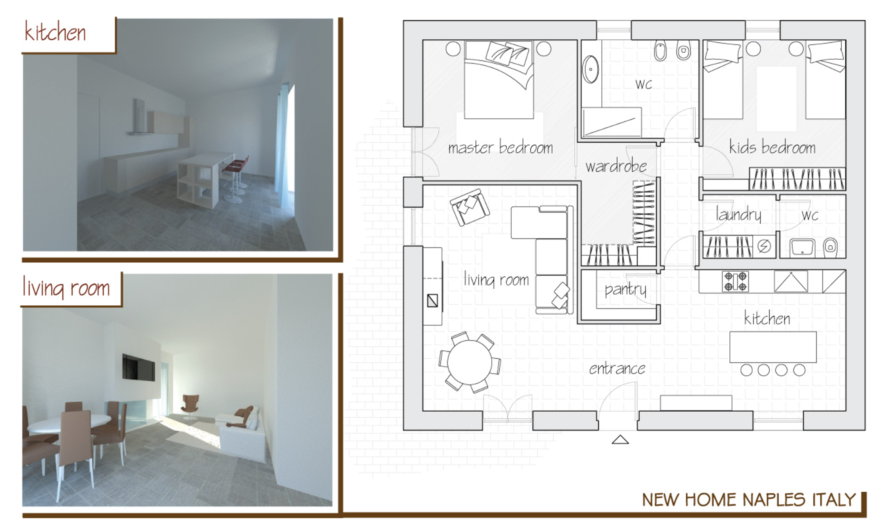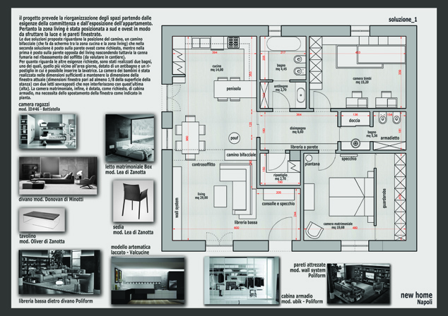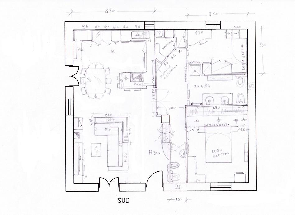 Ciao, grazie a chiunque prenderà in considerazione il nostro progetto. siamo una coppia che deve ristrutturare casa di 35 e 30 anni. innanzitutto i difetti della casa: - non è possibile aprire finestre a nord e ad est della casa a parte quelle esistenti che sono solo per la luce quindi posizionate in alto; - non abbiamo messo lo stato attuale perché è tutto da rifare, non abbiamo problemi nè con il muratore nè con gli impianti sia idraulici che elettrici perché ci aiutano persone di famiglia che fanno questo mestiere quindi dal punto di vista del budget per questi lavori siamo agevolati. ora le cose che ci piacerebbero: - vorremo avere due camere da letto di cui una con cabina armadio e un'altra da camera per bambini, due bagni uno per gli ospiti ed un altro a funzione delle camere, una piccola zona lavanderia / ripostiglio, e poi la zona più importante per noi il soggiorno con la cucina. Vorremo un soggiorno con camino però il nostro grande dubbio è come avere un camino dove riscaldarci su comodi divani e/o poltrone e contemporaneamente guardare la TV, il camino andrà posizionato sul lato ovest perché è l'unico punto dove poter mettere lo scarico. Ci piace la cucina con isola o penisola ma un altro dubbio è se lasciare un unico ambiente aperto o separare il soggiorno dalla cucina e soprattutto come posizionare la cucina. avevamo pensato a qualche parete divisoria particolare tipo libreria ma sono accettati tutti i tipi di proposte. abbiamo un budget per l'arredamento intorno ai 10.000,00/15.000,00 euro e ci piace uno stile moderno essenziale ma particolare e curato nei dettagli. grazie a tutti Hello, thank you to anyone who will consider our project. we are a couple that needs to renovate the house of 35 and 30 years.First, the defects of the house:- You can not open the windows to the north and east of the house apart from the existing ones that are just for the light then positioned at the top;- We did not put the current state because it is all to be redone, we have no problems with either the mason nor with both hydraulic and electrical systems because they help family people who do this job then from the point of view of the budget for these jobs are subsidized .Now the things that we'd like:- We want to have two bedrooms, one with walk-in closet and another from children's room, two bathrooms, one for guests and another function of the rooms, a small laundry area / utility room, and then the most important area for we the living room with the kitchen. We would like a living room with fireplace, however, our great doubt is like having a fireplace where warm up on comfy couches and / or chairs and watch TV at the same time, the fireplace will be located on the west side because it is the only place where you can put the drain. We like the kitchen with an island or peninsula, but another question is whether to leave one open environment or separate the living room from the kitchen. we had thought about some particular partition type library but are accepted all kinds of proposals.we have a budget for the furniture around 10,000.00 / 15,000 euro and we like a modern style but essential and particular attention to detail.thanks to all