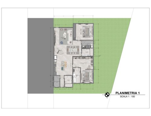 Nella zona salone vorrei una scala che collega al piano di sopra, con un soppalco aperto che mostri quello che c'è al piano inferiore.