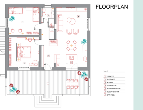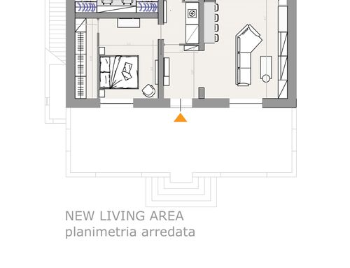 Our idea for the entrance sees a plasterboard divider in the main corridor to separate the living area and the sleeping area, so we would like to make the wall a piece of furniture and set up the hallway, behind the same wall our idea would be to create a small space, with a wardrobe or by equipping the wall also behind it, to be reserved for appliances such as washing machines and dryers, and the remaining space to be managed as a pantry. As for the kitchen, we had thought of transforming the existing window into a French door to facilitate entry to the patio.