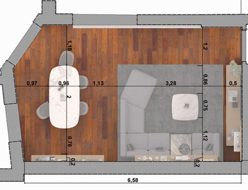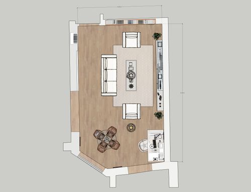 New living room, new colors, new furniture and lights. Modern style in accordance with the present light oak wood floor.