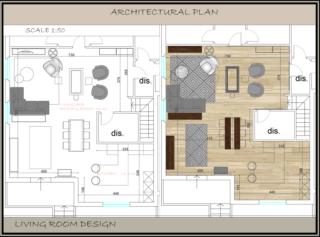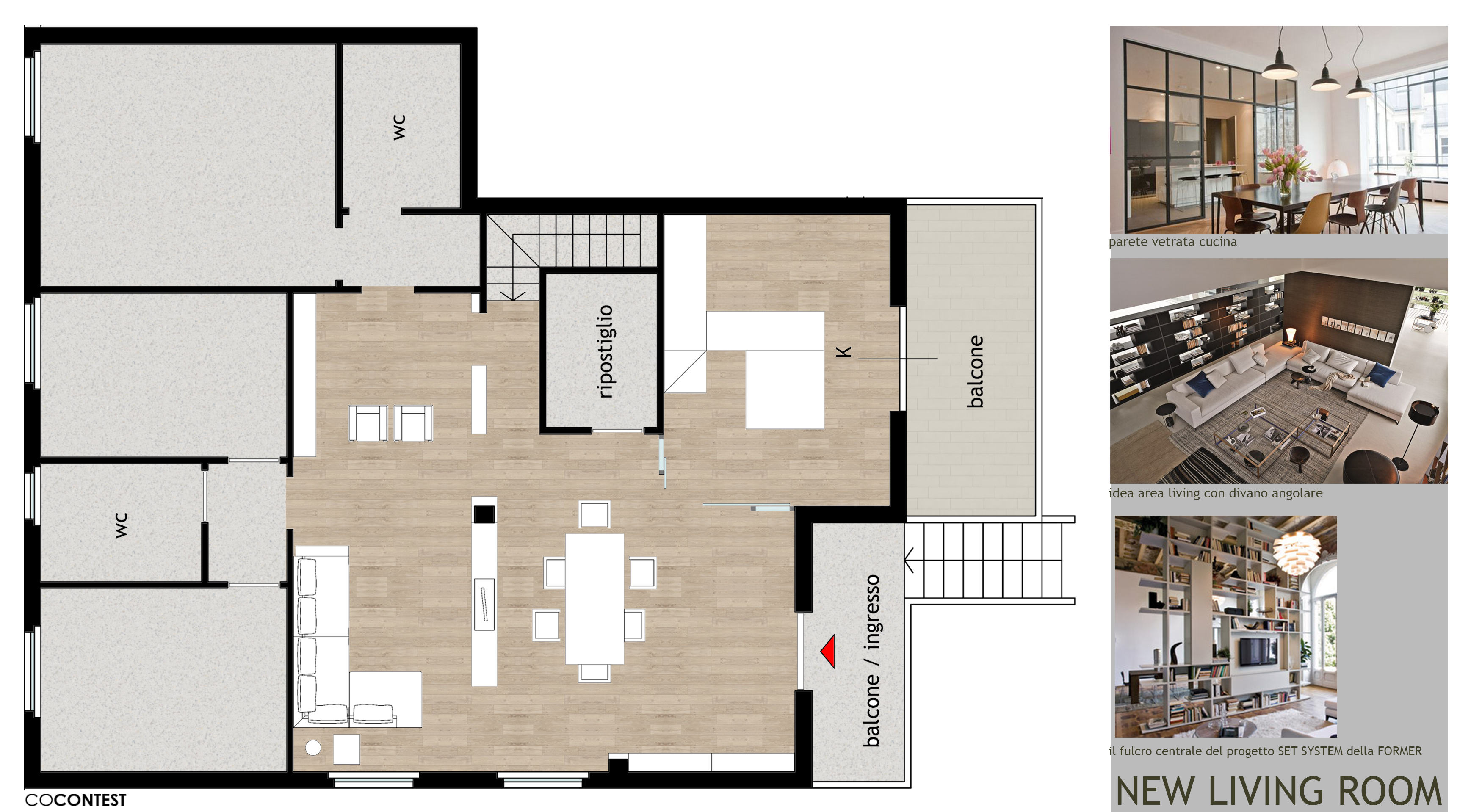 Ciao, siamo Luca, Patrizia e Giada, la nostra Principessa di 4 anni. Stiamo ristrutturando la nostra nuova casa e lanciamo questo contest per ottimizzare al meglio lo spazio e l'arredamento della zona Living/pranzo. Ciò che vorremmo ottenere è un'ampia zona relax con divano, poltrona e Tv ed un'area pranzo con Tavolo per almeno 6 persone, il tutto in stile moderno. Cerchiamo anche idee per lo schema luci, prediligendo Led/strip Led/faretti. Ci piacerebbe anche ricevere indicazioni sul miglior posizionamento di 3-4 Termoarredi H160/180cm, da collocare nella stanza ed eventuali colori e finiture della stessa. Il pavimento sarà in Parquet chiaro. Ok a controsoffitti e cartongesso, siamo aperti ad ogni soluzione. Restiamo in attesa dei vostri consigli, grazie mille.