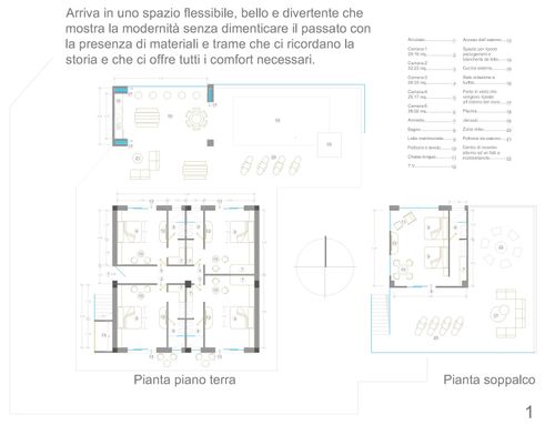 A partir de una estructura existente se prevĂ© crear un pequeño B&B de lujo con 4/5 habitaciones. La ubicaciĂłn está a pocos metros del mar en un contexto natural caracterizado por olivos. La visiĂłn es tener un estilo moderno pero con fuertes referencias al pasado y a la agricultura. La estructura deberĂa disponer de una sala de desayunos buffet y una cocina exterior a disposiciĂłn de los huĂ©spedes. Debe tener una piscina.