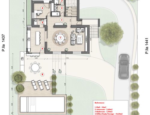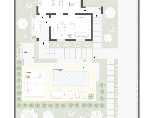 WE ALSO HAVE AN OUTDOOR SPACE OF 750 SQM WHERE WE WOULD LIKE AN OUTDOOR SWIMMING POOL WITH WOOD-EFFECT COVERING THAT CAN BE REMOVED WITHOUT PERMITS AND A RELAXATION AREA WITH BARBECUE PLUS A GAZEBO