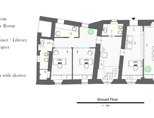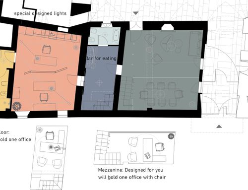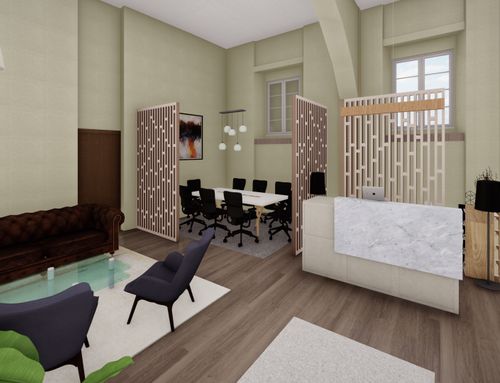 Hello, we are purchasing an office in an advanced phase of renovation by the builder of approximately 125sqm. The Office has three rooms plus services, two of which very large would be divided (possibly with acoustic privacy) creating for one: an entrance, a work / reception desk and a meeting room, in this main room I could evaluate the idea of creating a "mezzanine" given the height of 5 meters taking into account that I cannot intervene on the walls because it is a historic building, but we could insert a self-supporting structure that could possibly create another work surface - if there were also solutions of this type we could keep in consideration; for the other two separate rooms possibly with acoustic privacy. We have no way of intervening with traditional building elements and therefore we are looking for alternative solutions that can make it possible not to lose brightness by having the studio facing on one side only. The research would also ask for any lighting solutions that can allow the rooms to be usable for the entire working day, possibly even with the lights on, considering that the brightness, at least of one of the rooms to be divided, is not the best. Furthermore, a simulation of study furniture in a modern / elegant style (modern classic mix) would also be appreciated. Thank you for the solutions.