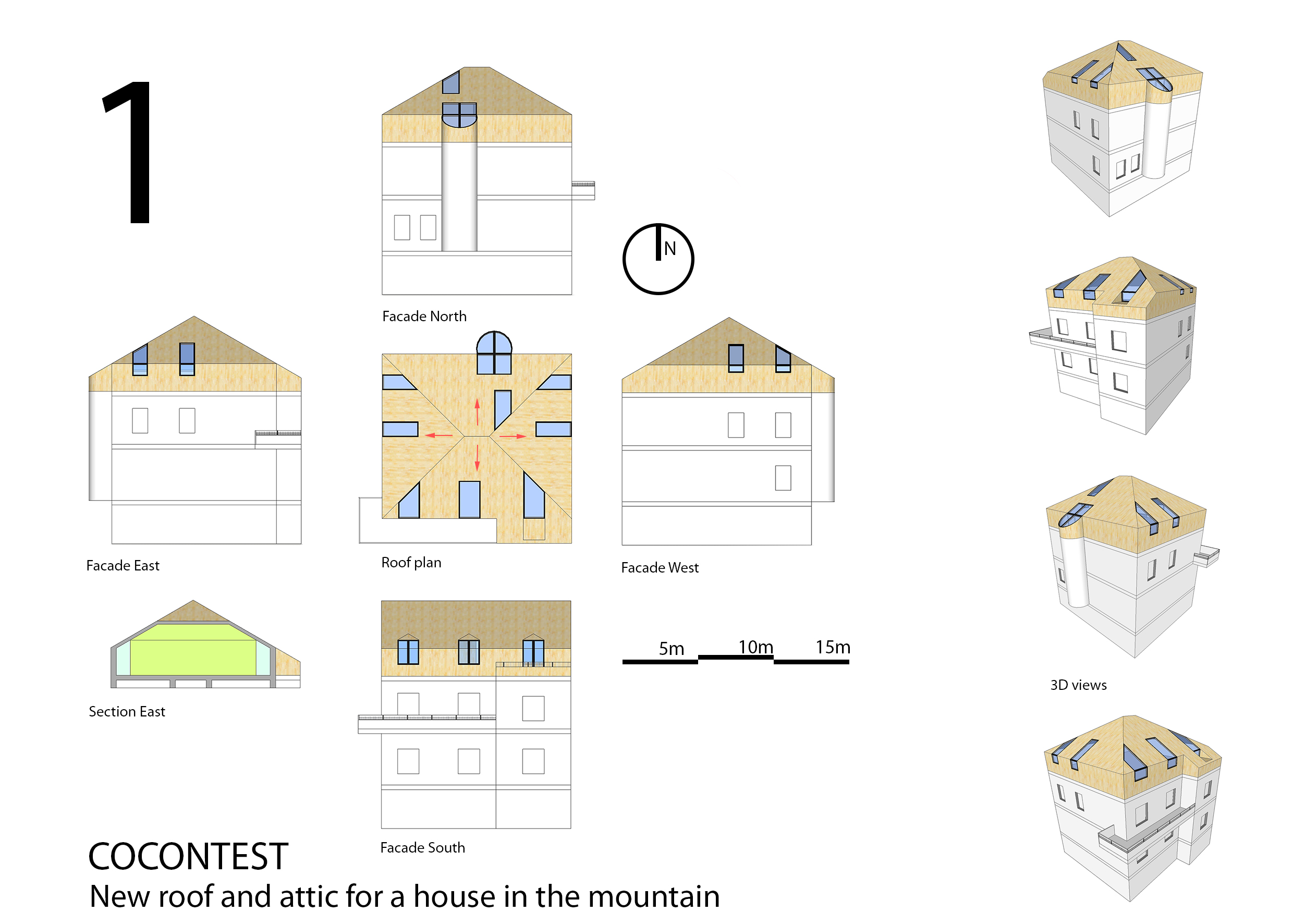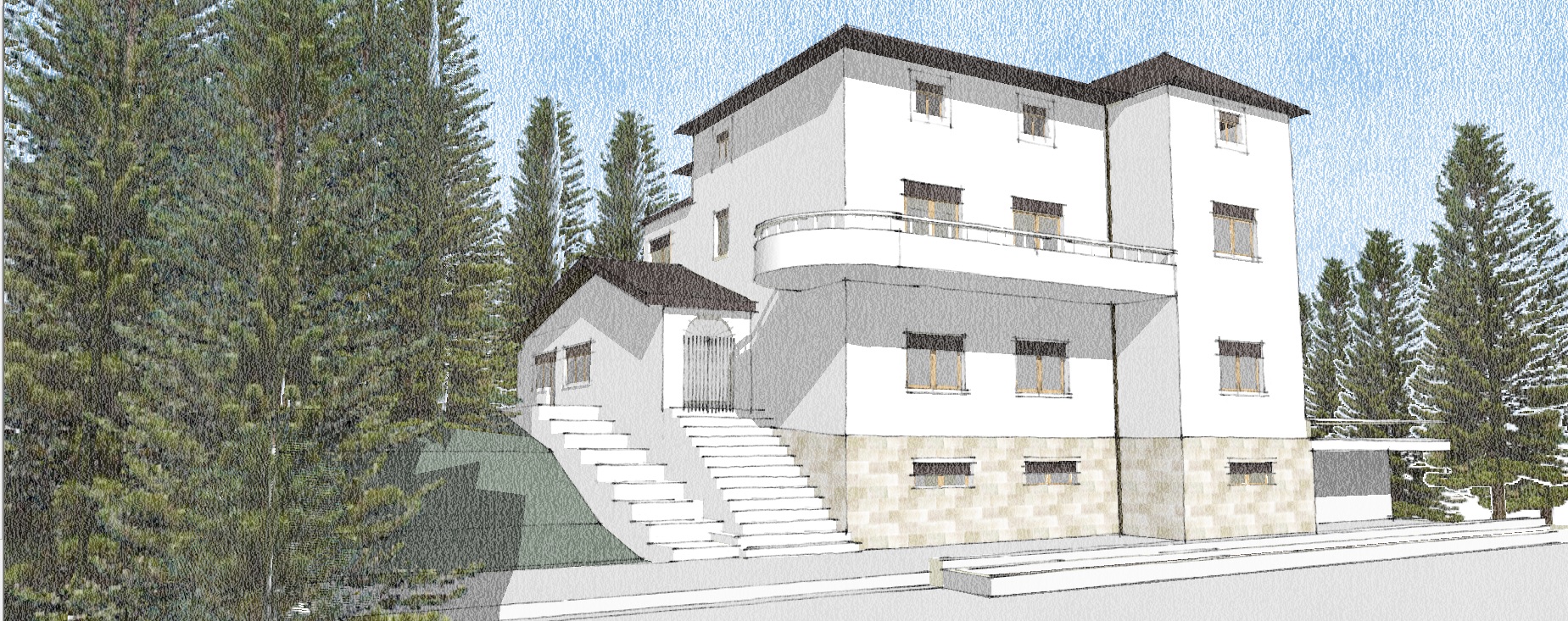 IN SINTESI MI INTERESSA UN DISEGNO DI COME APPARIREBBE L'ESTERNO DELLA CASA CON UN TETTO COMPLETAMENTE NUOVO  RIALZATO RISPETTO ALL'ATTUALE E CON DELLE APERTURE PER RENDERE LA MANSARDA CHE SI CREEREBBE VIVIBILE, MI INTERESSA PRINCIPALMENTE  ANCHE SOLO UNA BOZZA DI DISEGNO, UN'IDEA PER L'IMMAGINE ESTERNA CHE RISULTI BELLA E BILANCIATA.PER IL MOMENTO MI INTERESSA POCO L'INTERNO E L'RREDAMENTO.