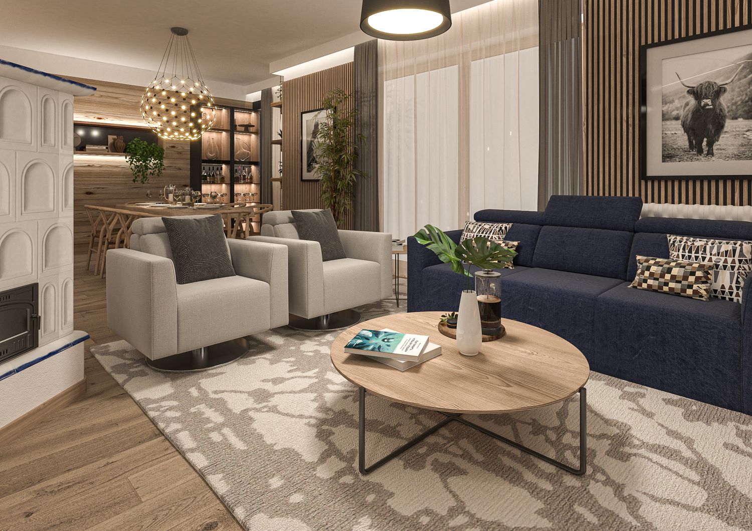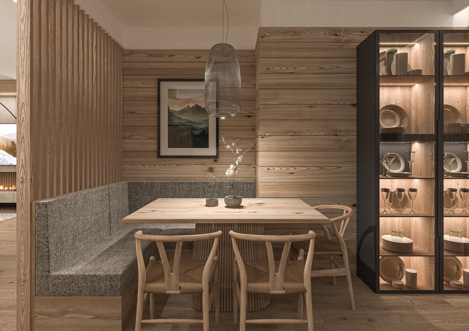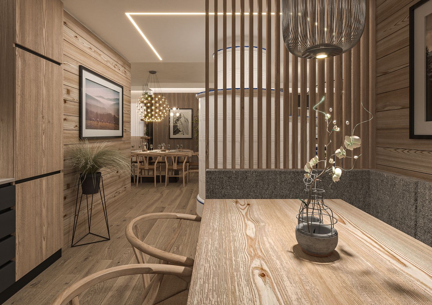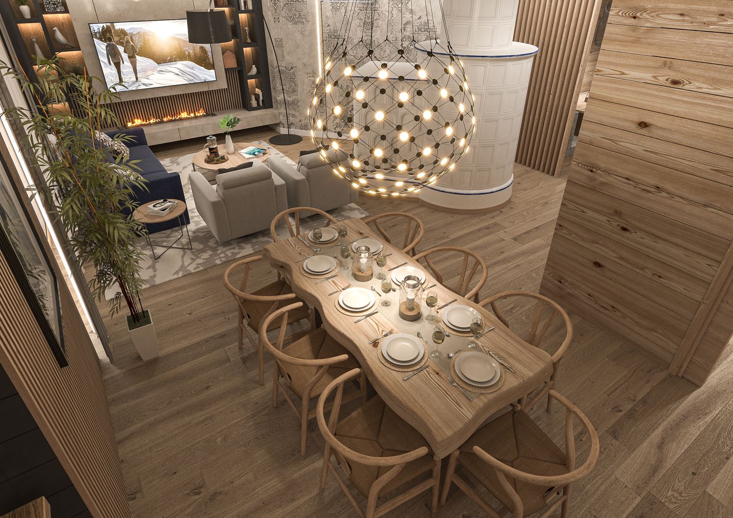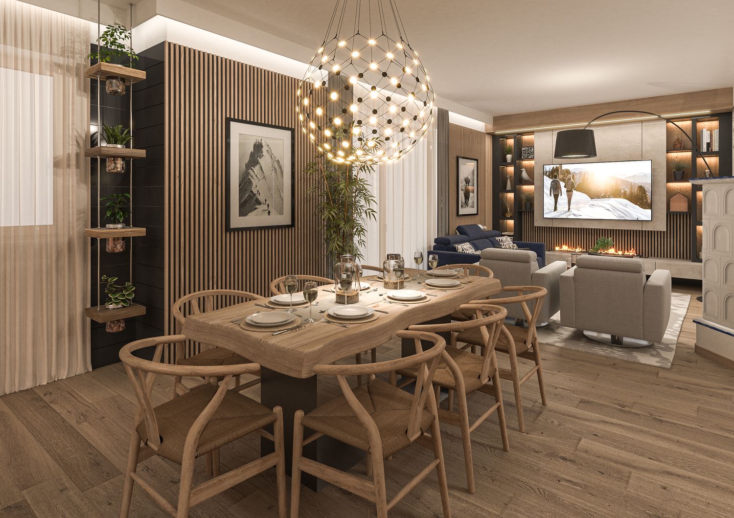Il progetto nasce dalla volontà di reinterpretare la tradizione abitativa montana in chiave Luxury Contemporary, trasformando la zona giorno in un open-space fluido, scenografico e fortemente emozionale.