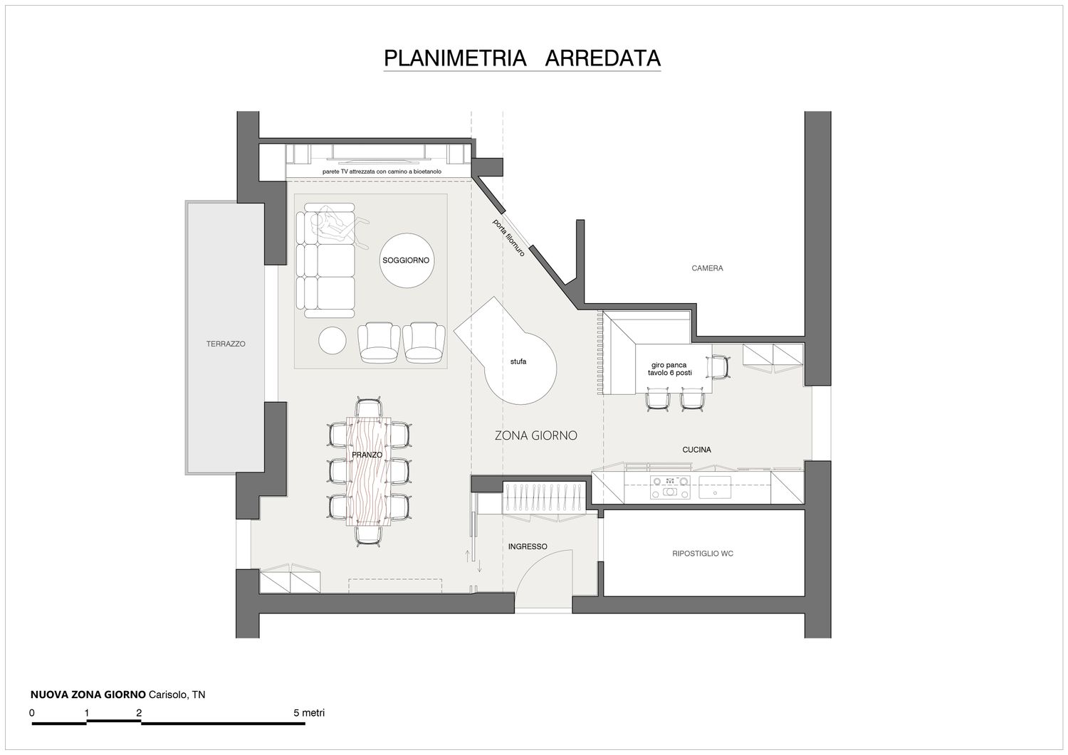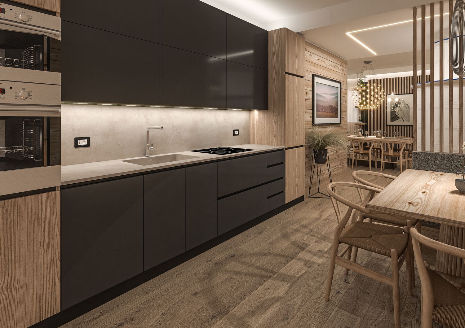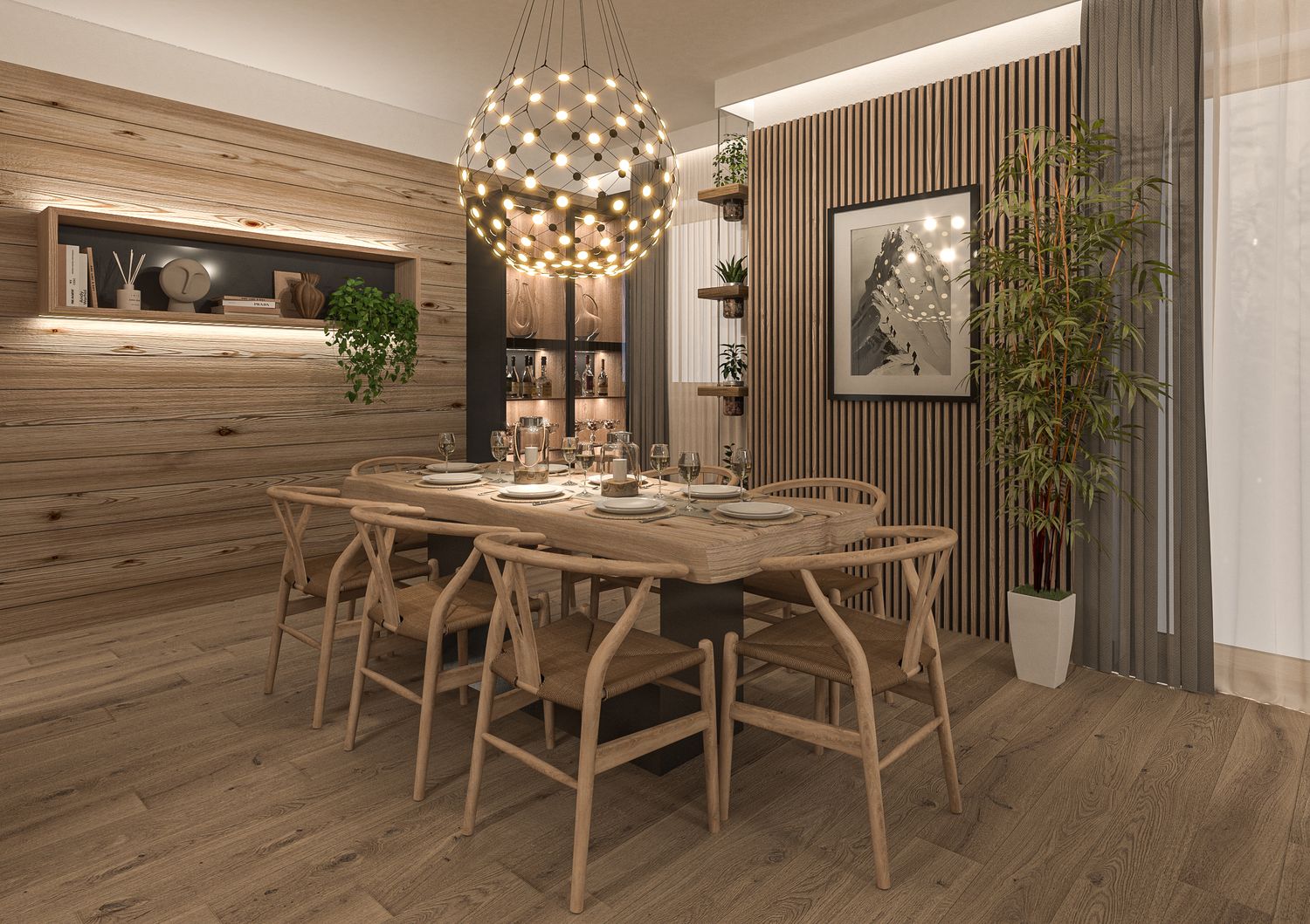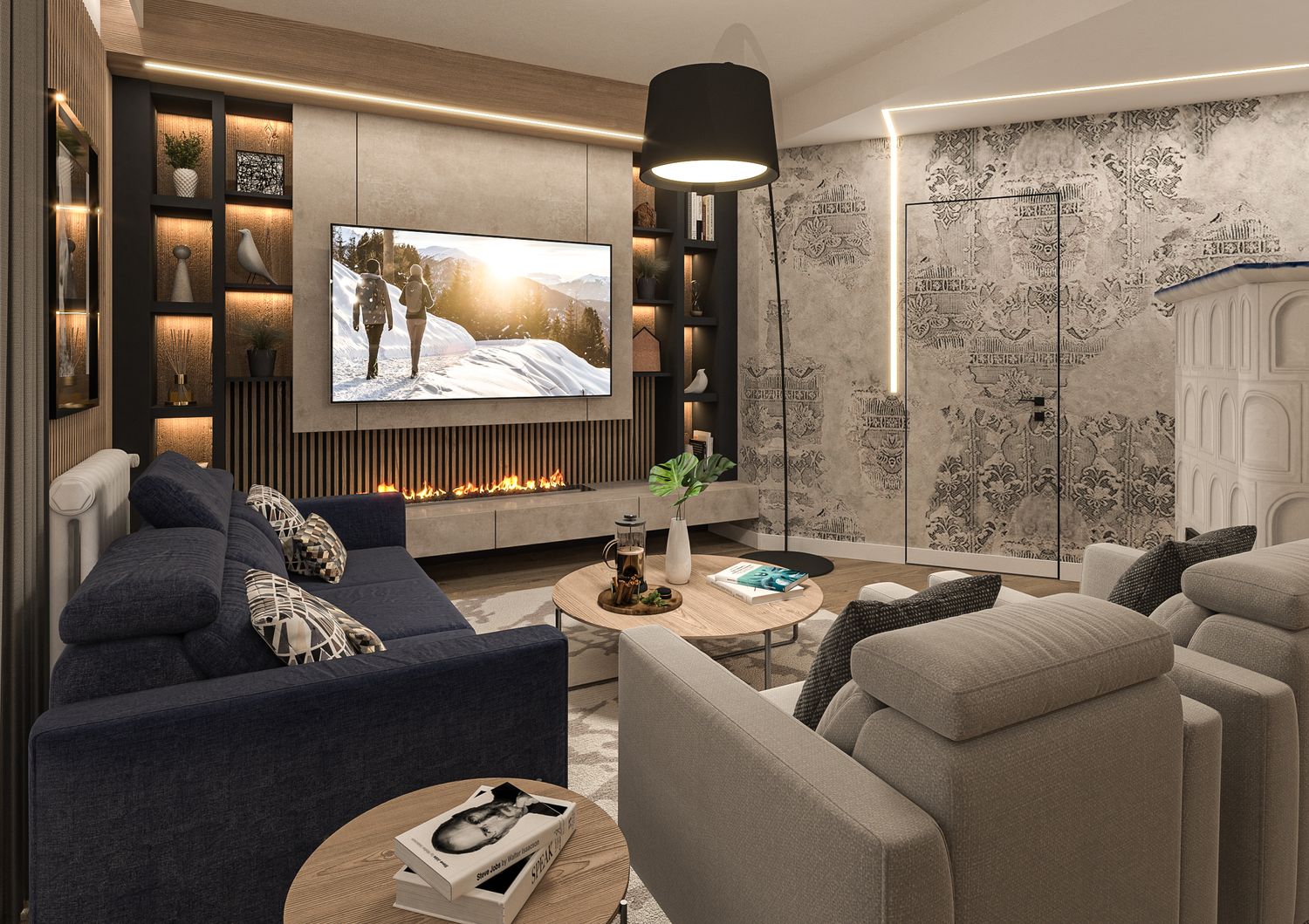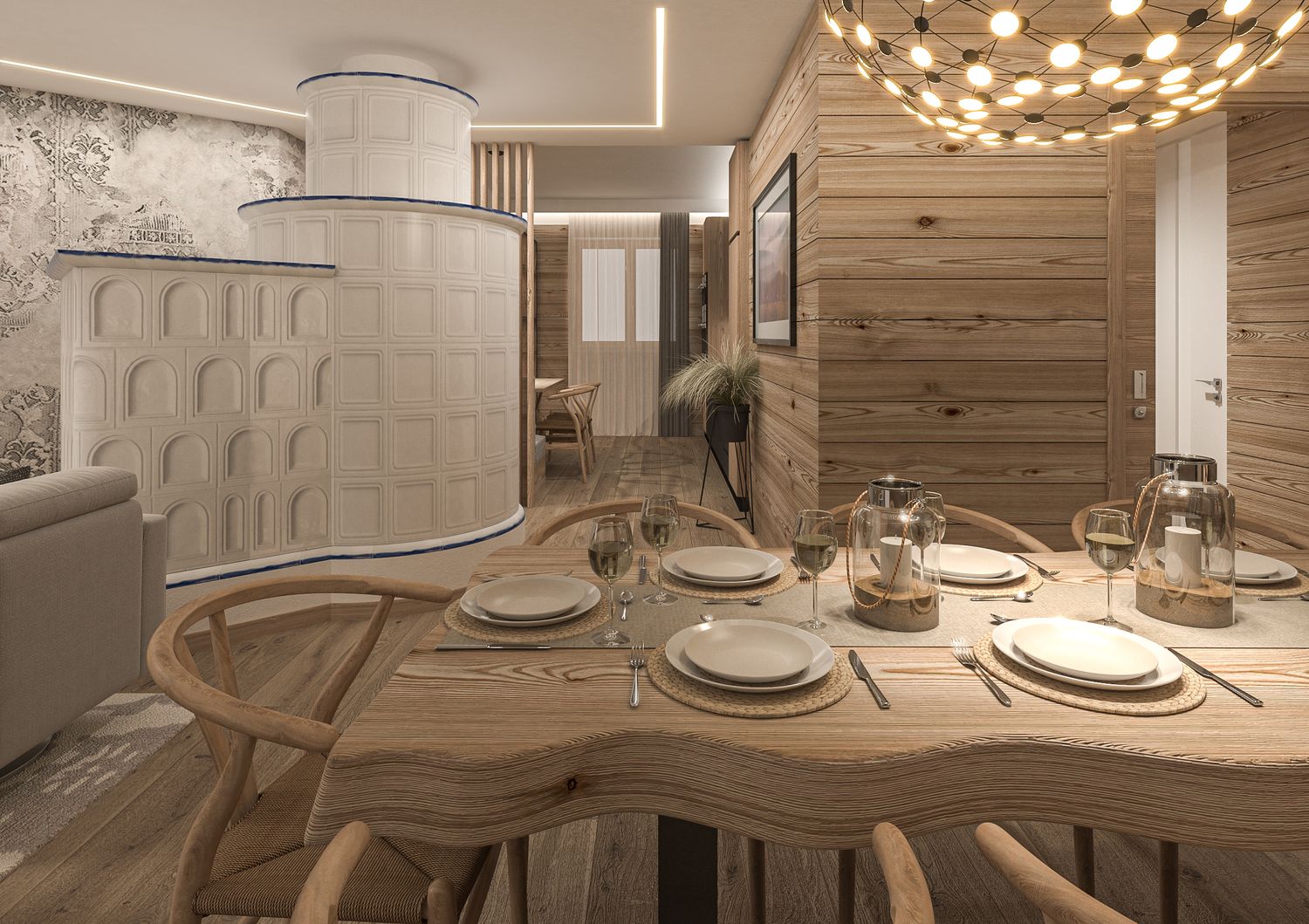Il progetto nasce dalla volontà di reinterpretare la tradizione abitativa montana in chiave Luxury Contemporary, trasformando la zona giorno in un open-space fluido, scenografico e fortemente emozionale.