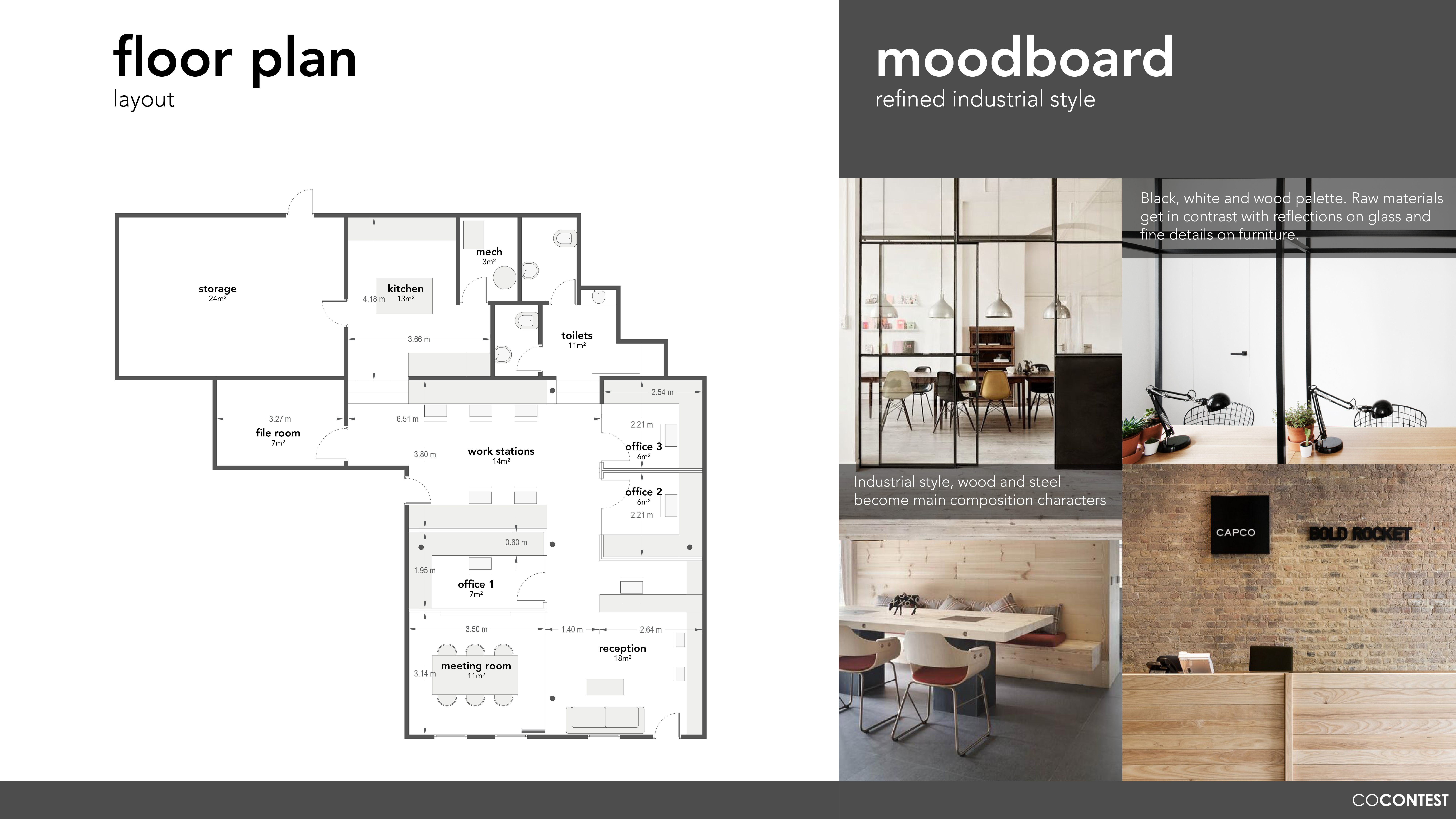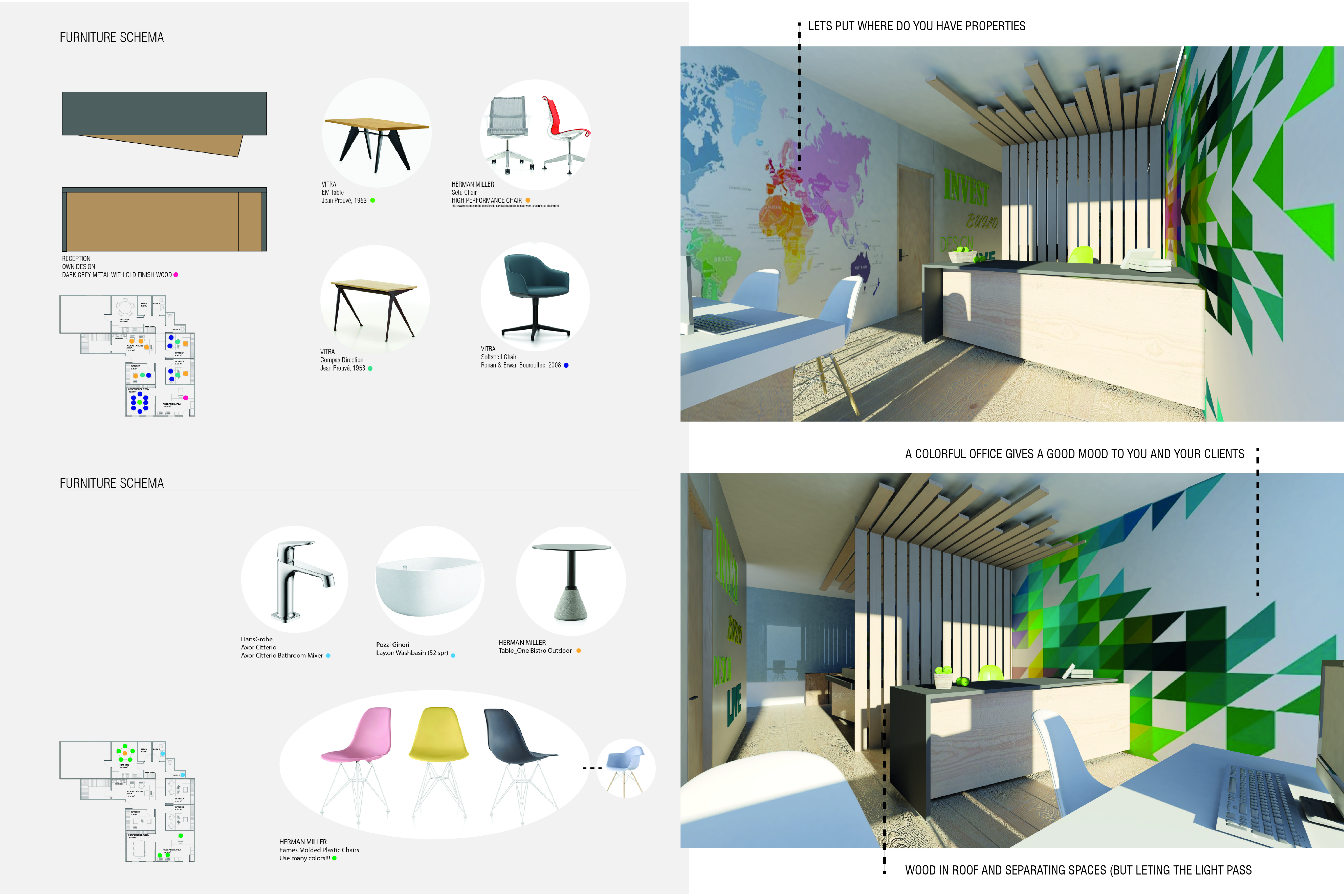 Chesapeake Properties is a construction, real estate investment and property management company located in the Historic District of Annapolis, Maryland. We just signed a lease for a retail space that we will convert to office. Annapolis is a historic city and we would like our office to have a modern feel but includes historic elements, such as the reclaimed wood that we have from our properties. This must be a business functional office with 3 private offices and 3 workstations. We would like a theme of older wood and modern steel but we are open to other ideas. We would like ideas on color schemes also for walls and flooring. We prefer lighter colored woods to make the space feel brighter and more open.
