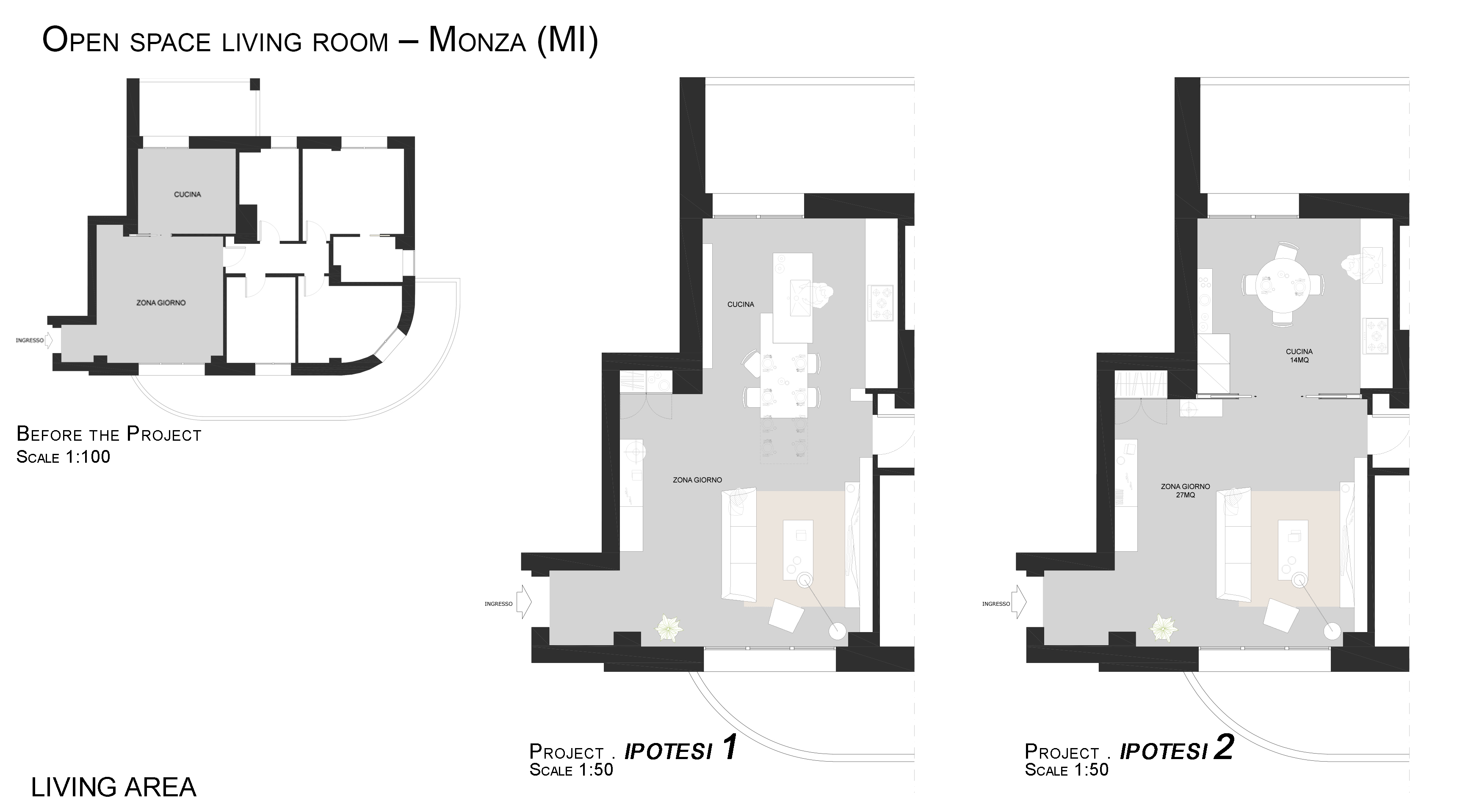 We are a couple of adults (without children for the time being) and we bought an apartment placed at the second floor of a new building near the Monza city center, in an elegant and green area.