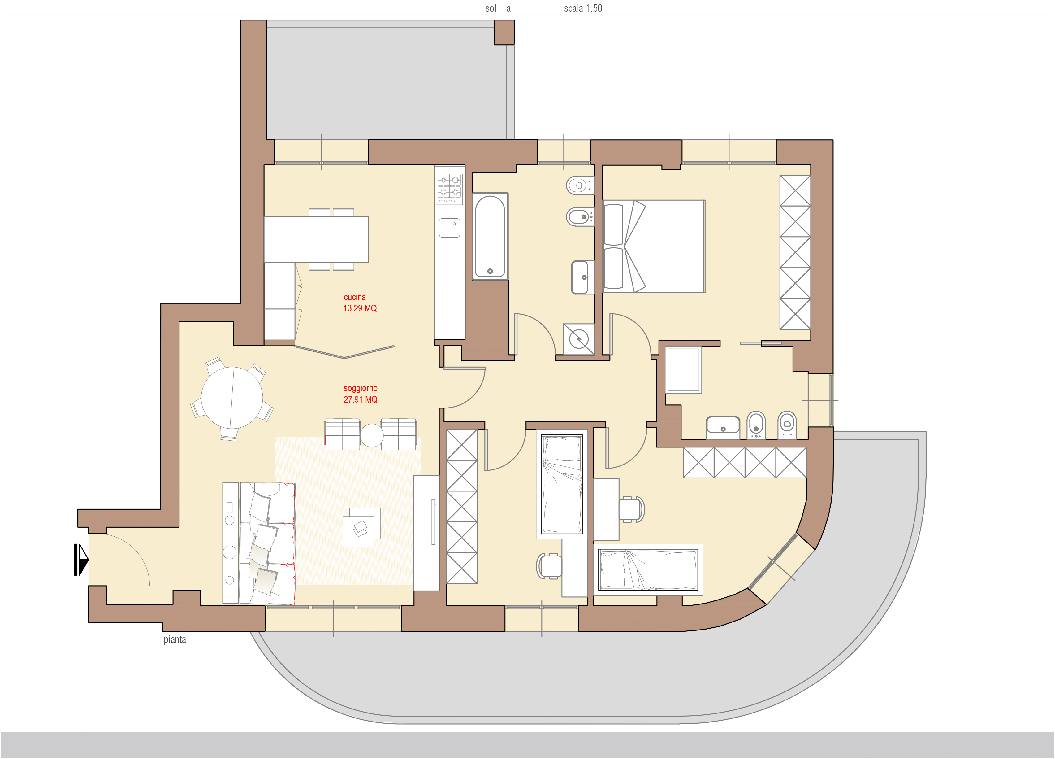 First at all, we would like to ask you to understand whether to tear down the wall that separates the kitchen from the living room (as per our intention), or to insert a double pocket door. It would be helpful to have two visual examples, if it is possible.