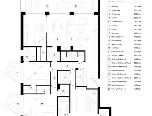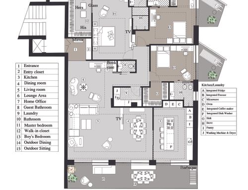 4 = My son's (19 years old) bedroom (internal bathroom and walk-in closet required) with independent terrace.