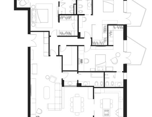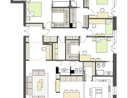 Abbiamo acquistato un nuovo appartamento di circa 200mq e stiamo organizzando la ristrutturazione completa. E’ dunque possibile qualunque variazione interna necessaria (non sono possibili variazioni alla posizione di finestre e vetrate). Desideriamo una casa elegante e contemporanea. Siamo in quattro e preferiamo pareti e soffitti con boiserie.