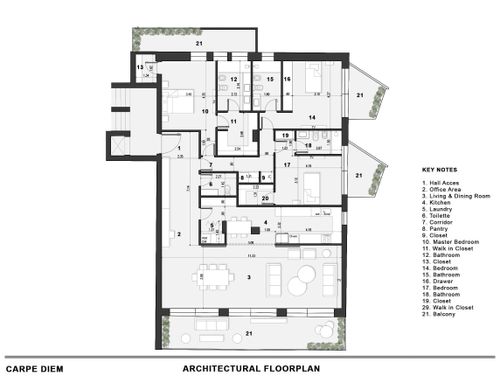 6 = Dormitorio principal (se requiere baño interno y vestidor) con terraza independiente en la parte posterior.