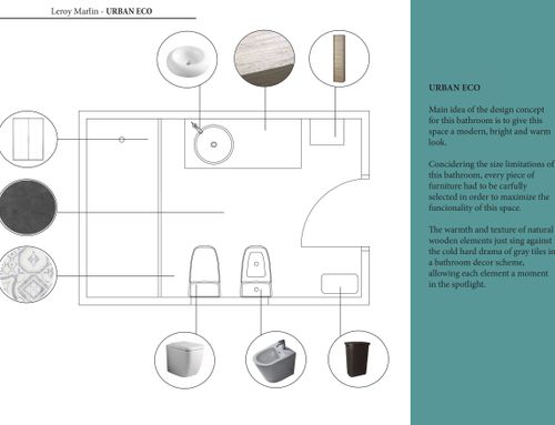In this year's edition, the young designers of tomorrow are invited to prepare 5 mini-bathroom projects. In detail, participants must submit 4 different bathroom styles (one for each style defined by Leroy Merlin) using Leroy Merlin products, plus 1 ideal bathroom, regardless of the products being used, developing it from scratch with ad hoc fittings.