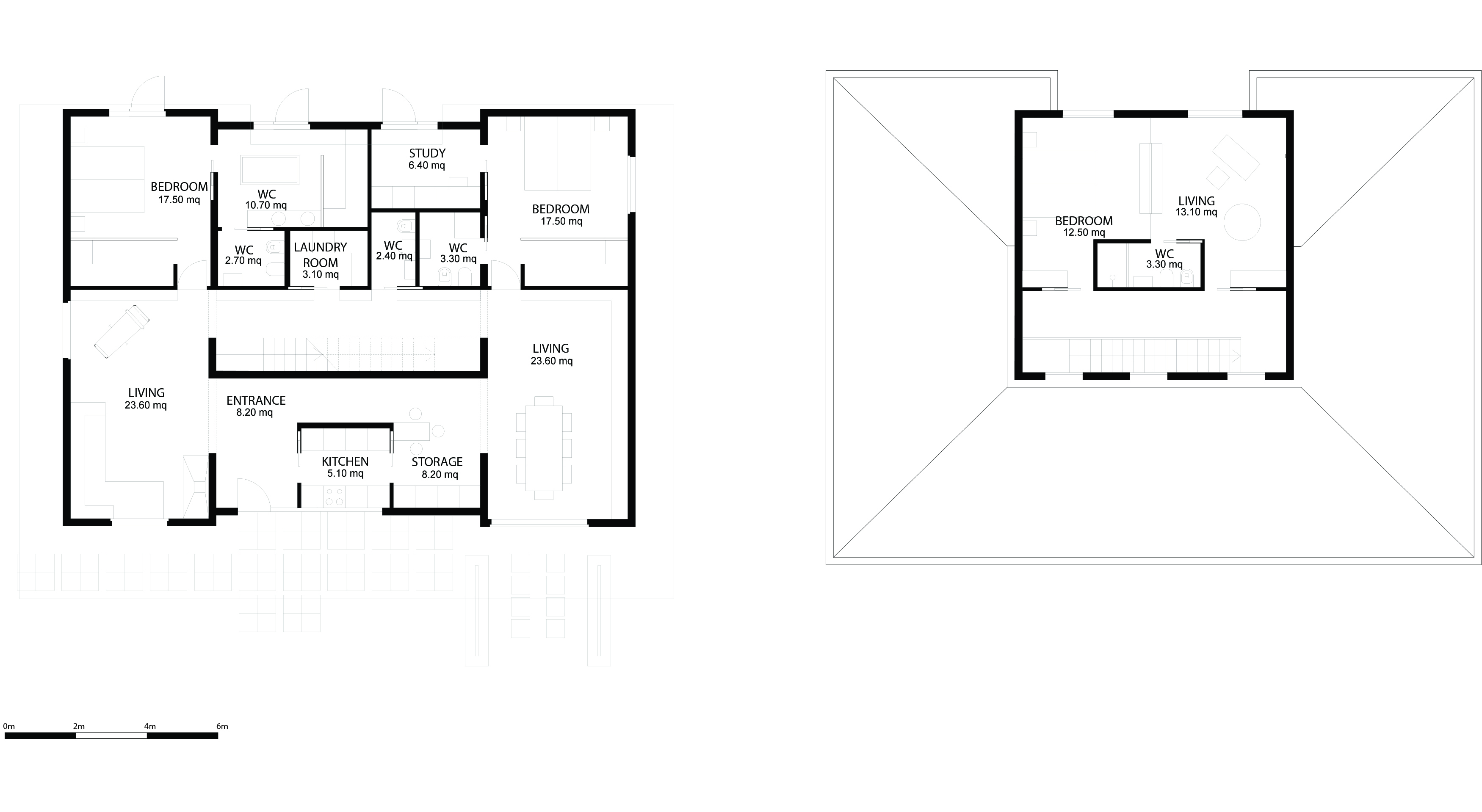 - Zona pranzo (per pranzi ufficiali) dovrebbe ospitare un tavolo per 6 + 2 persone “in testa” (lungo circa 2 metri). Tavolo e sedie saranno di semplice design, contemporaneo e stile minimal. Piano tavolo dovra’ essere di un materiale che non assorbe liquidi.