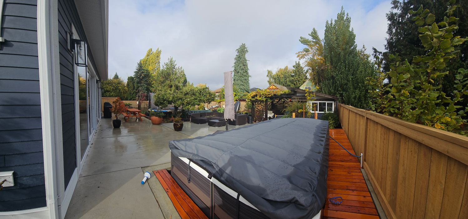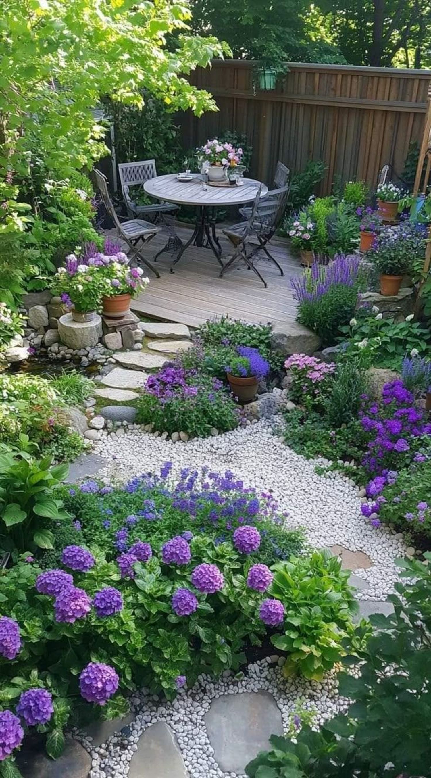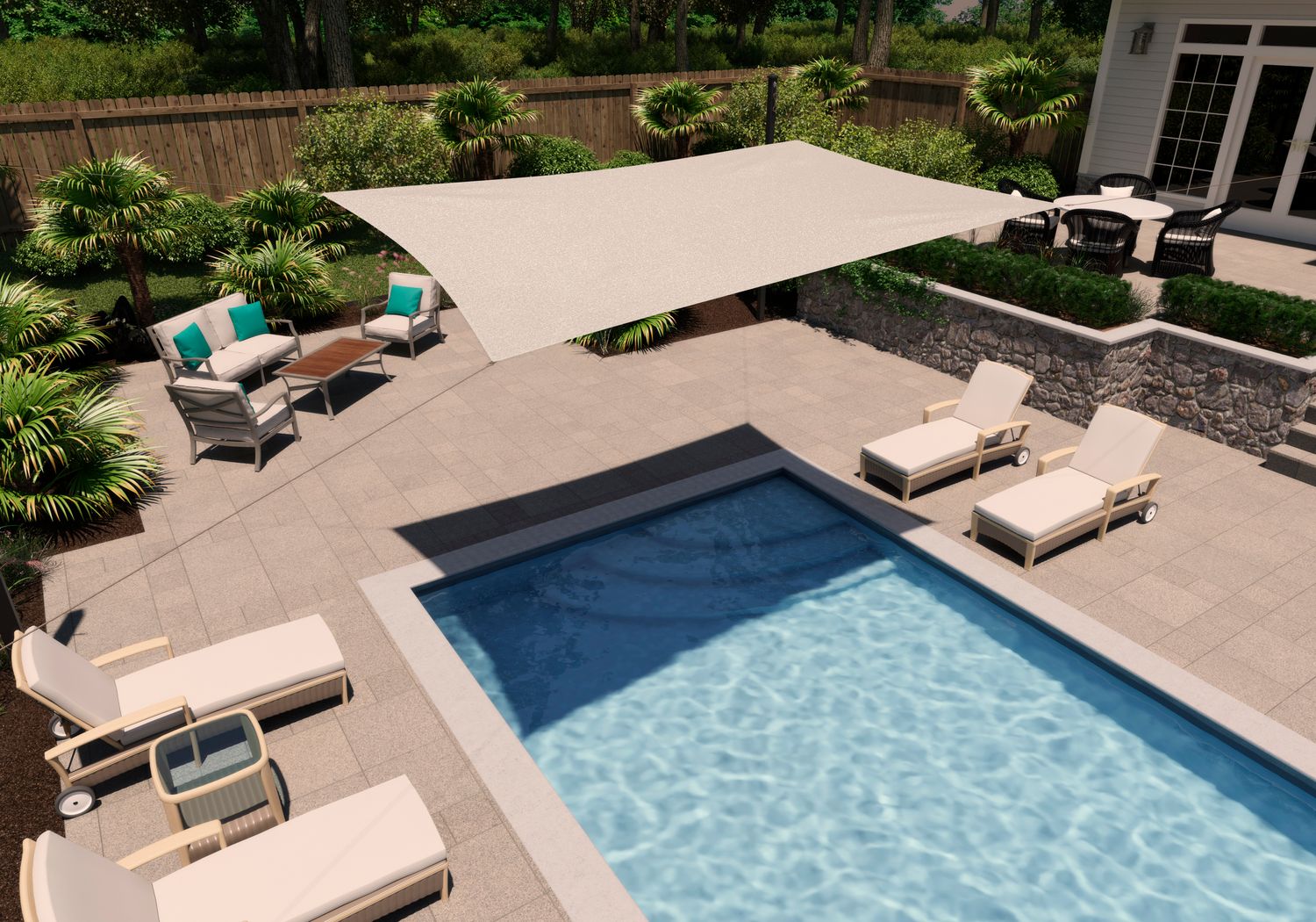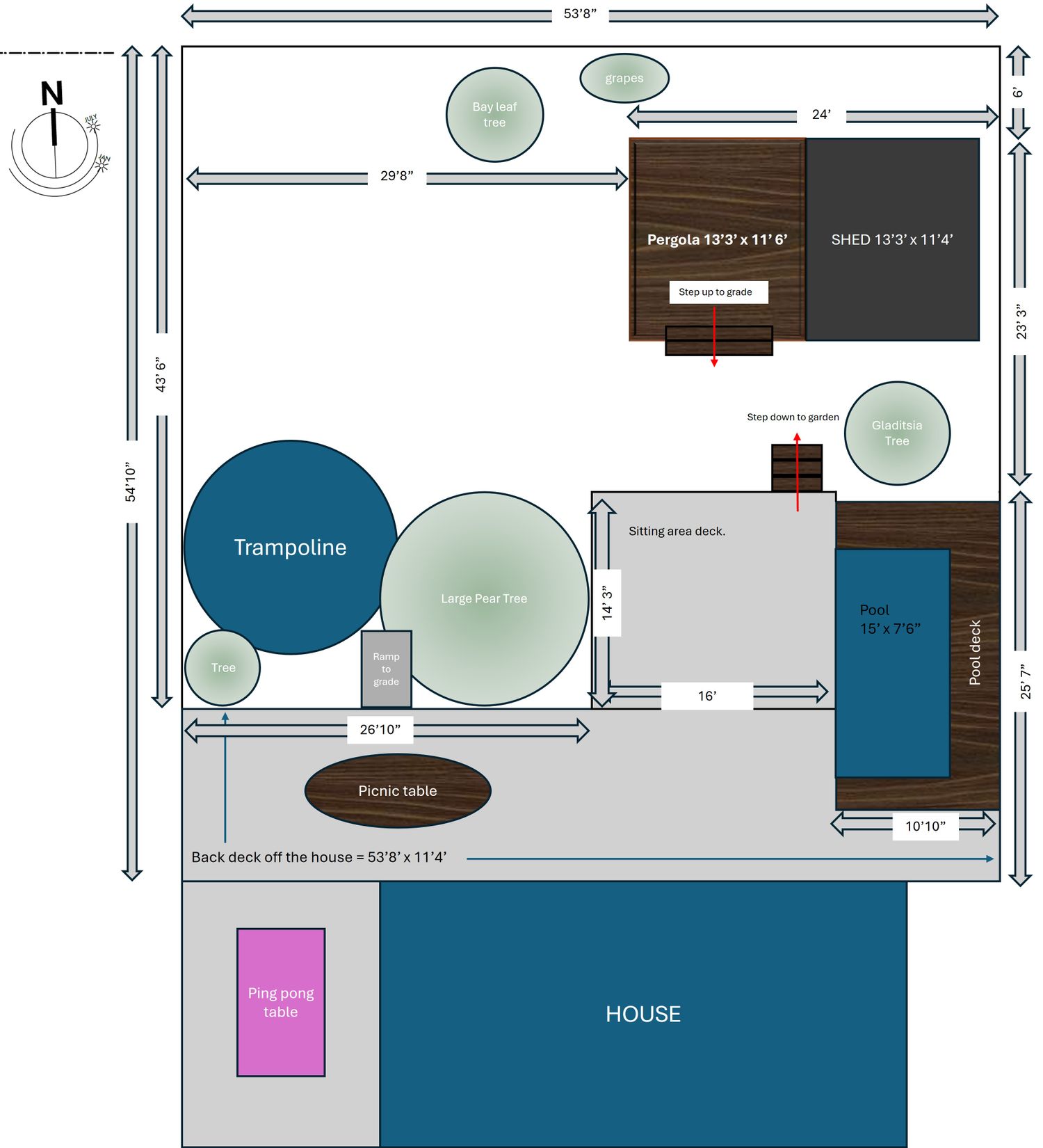 Looking for a cohesive design for our backyard. I love plants, flowers, trees. Would love a comfortable pollinators garden and a space that I can enjoy being in. We have a large concrete deck that I love but feels a bit sterile now. A swim pool and a back shed that all have been built in the last year. There is a large sunken gardent that is a white canvass.