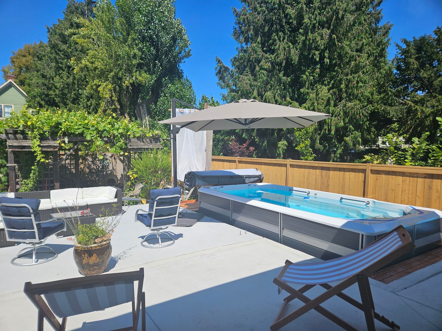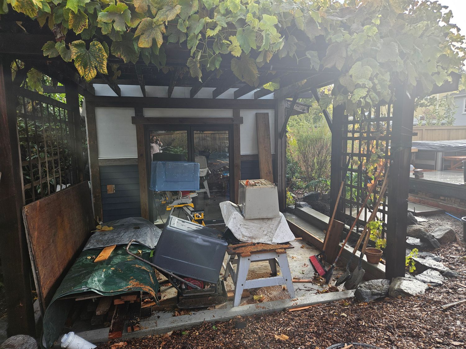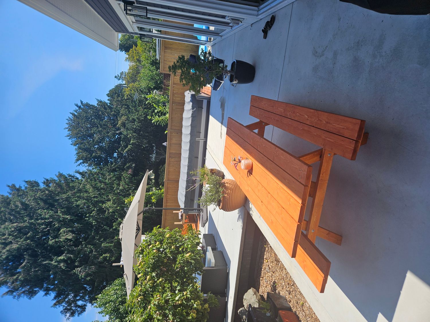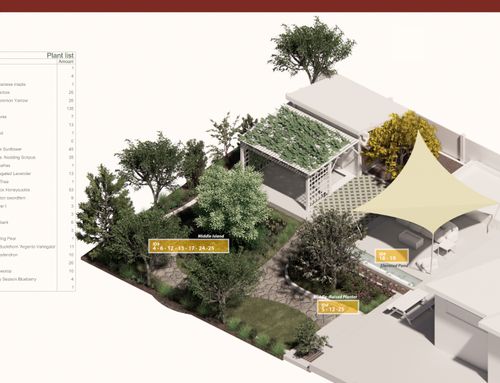 Zone d’ombra per il patio, soprattutto nell’area lounge e sopra il tavolo da pranzo. Il nostro giardino è spesso ventoso e gli ombrelloni volano via facilmente: pensavamo a vele ombreggianti rimovibili per l’estate – servirebbero quindi idee su dove posizionare i pali di supporto;