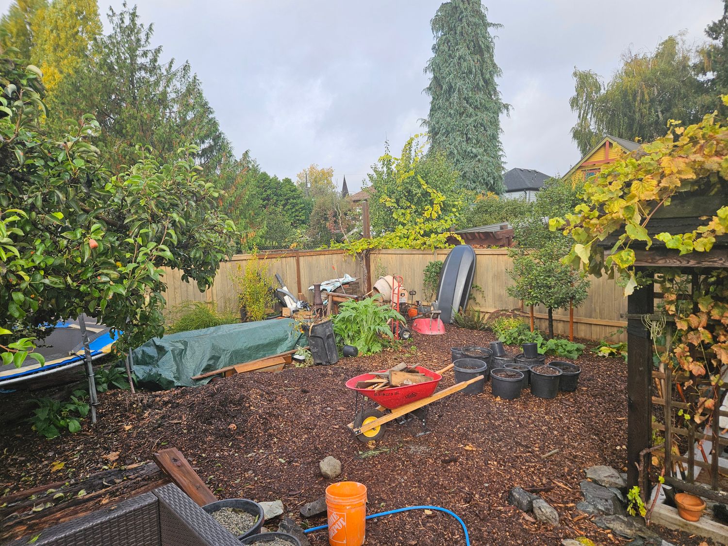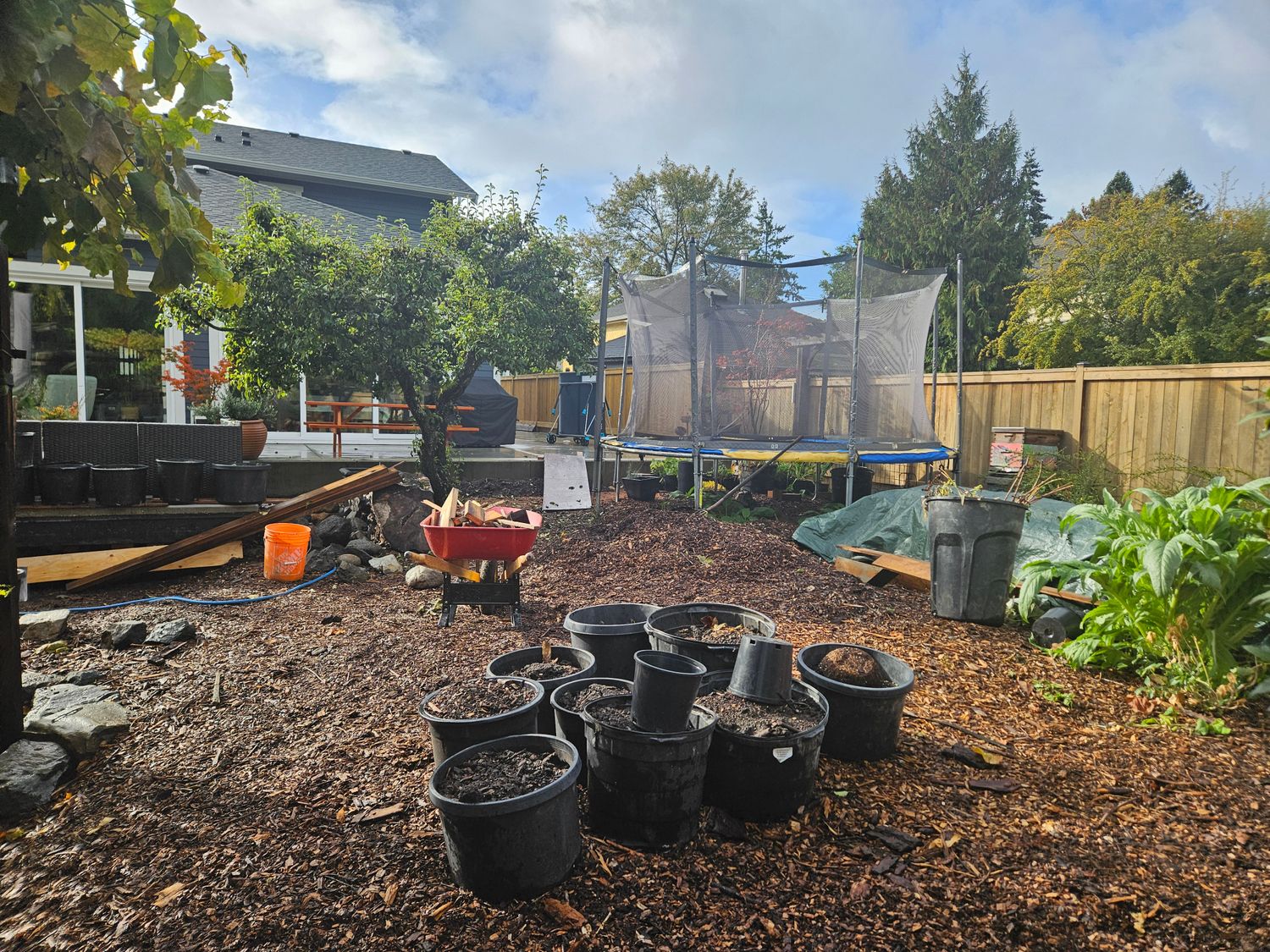 Nuestra zona de cultivo es 9a/8b – Victoria, BC. Podemos cultivar manzanas, peras y ciruelas, pero no limones (salvo Meyer) ni melocotones (a menos que estén protegidos). Algunas variedades de higos producen solo la primera cosecha. La buganvilla sobrevive en verano pero no en invierno.