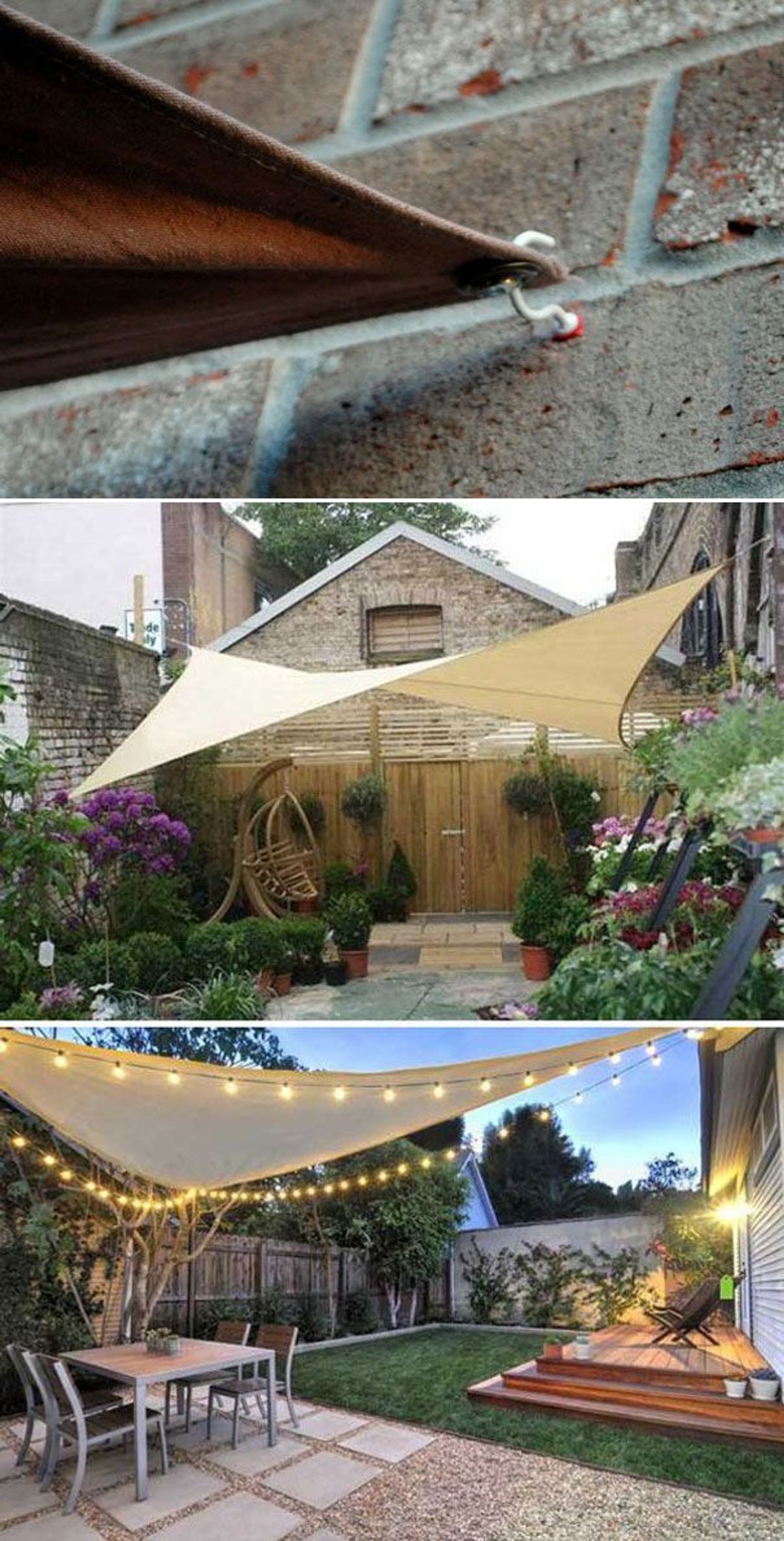 - Suggestions on shade areas for the deck, especially for the sitting area, and above picnic table. Our yard can get quite windy, and the umbrella flew off one too many times. We are thinking shadesails that can be put up in the summer? If that is the case, we need idea on where to install some poles.