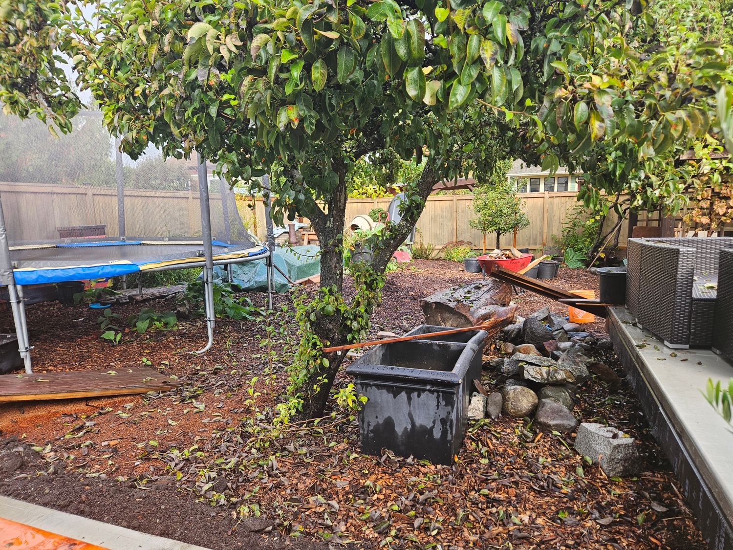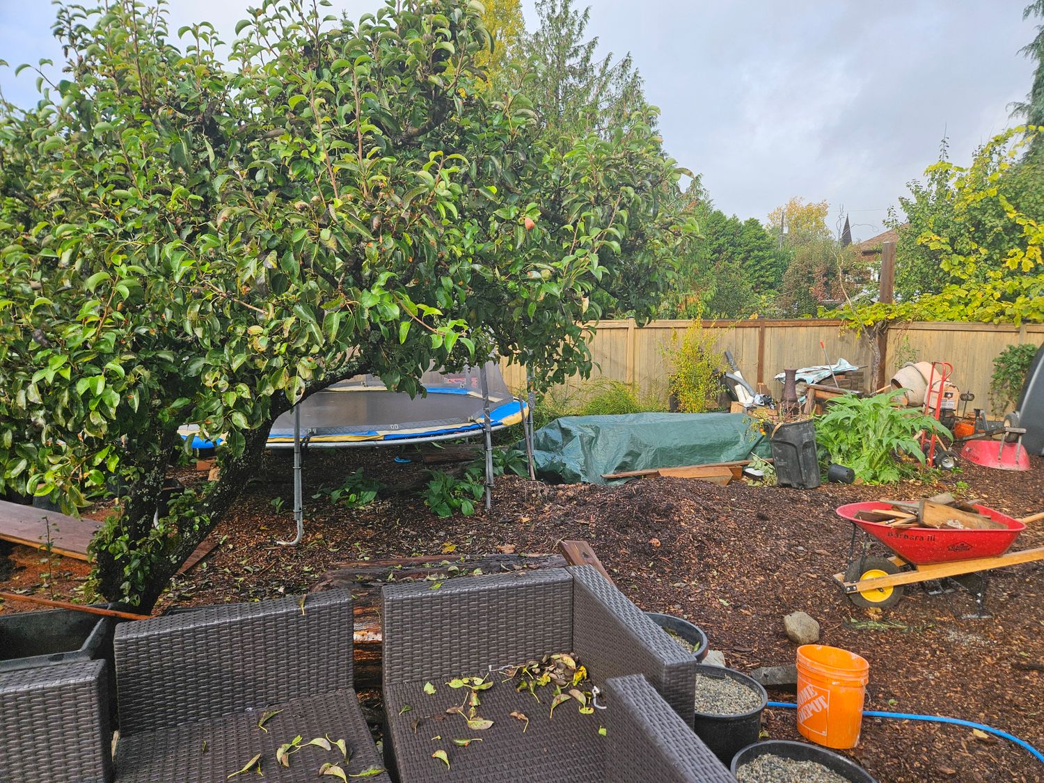 There is a daying Maple tree between the fence and the trampoline that needs to be replaced. I was thinking maybe to plant a dogwood.