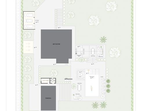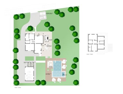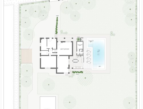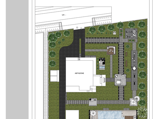 I would like to modernize the appearance of the house, define the external finishes (painting or embellishing the facades), create a cover for the outdoor terrace and a "bbq/cooking area," establish an easily accessible pool area adjacent to the house (with a dedicated room for pool equipment and a small service bathroom), while keeping the exterior garden as linear as possible. Additionally, I would like to design the perimeter fencing and access gates for the residence.