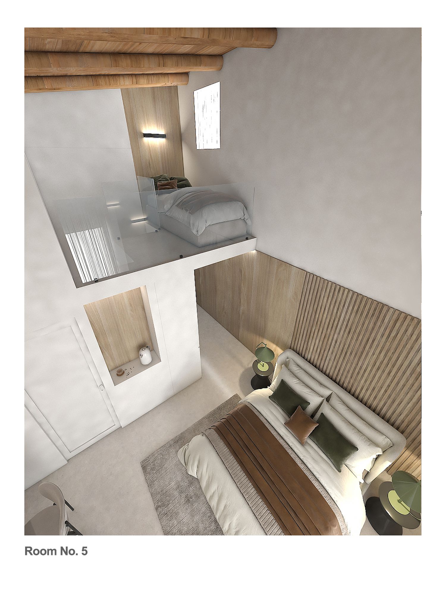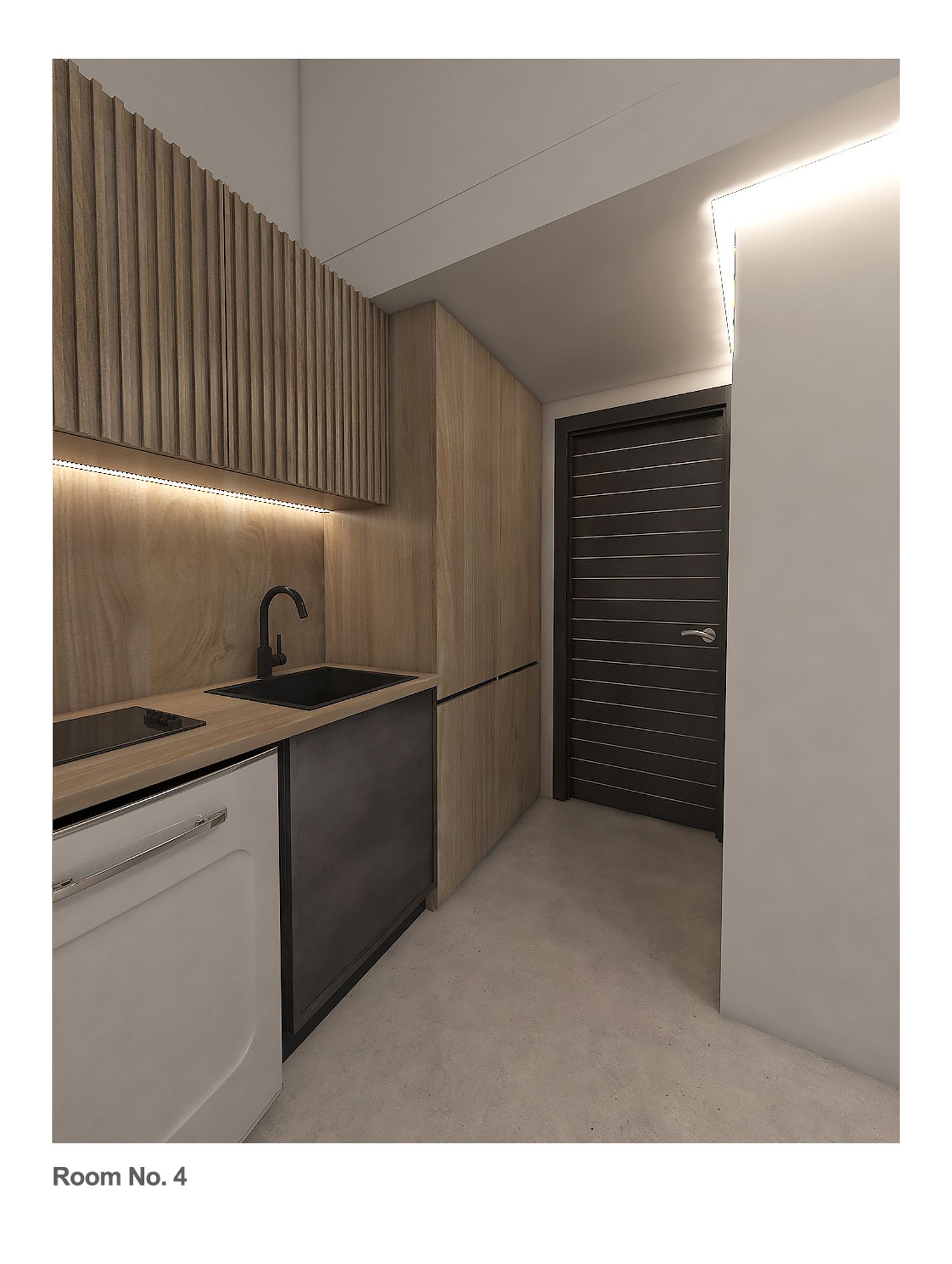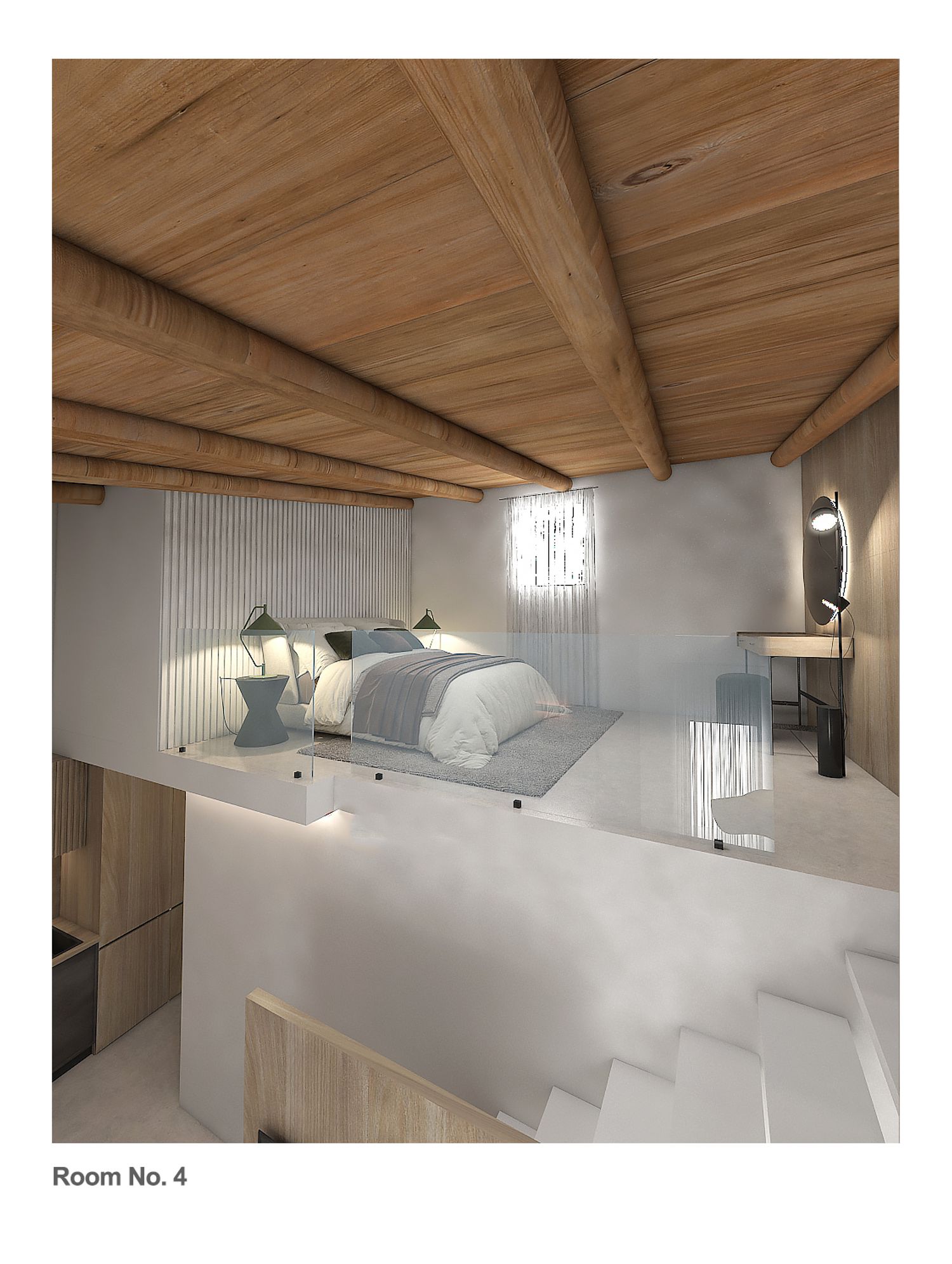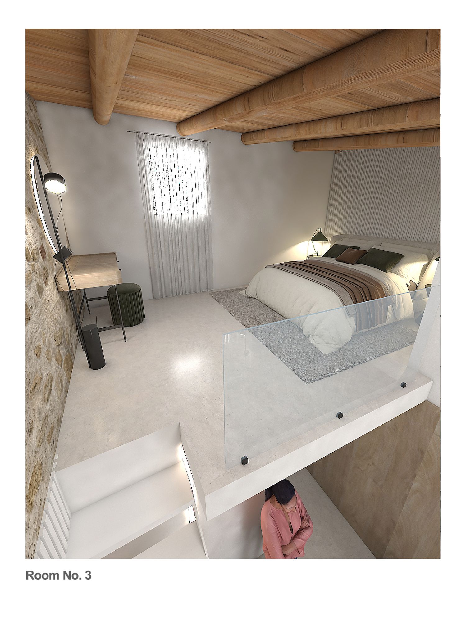 Two rooms have a small kitchen, one of which is planned on the first floor and the other on the ground floor to be used by guests who have difficulty navigating the stairs to the upper floor.