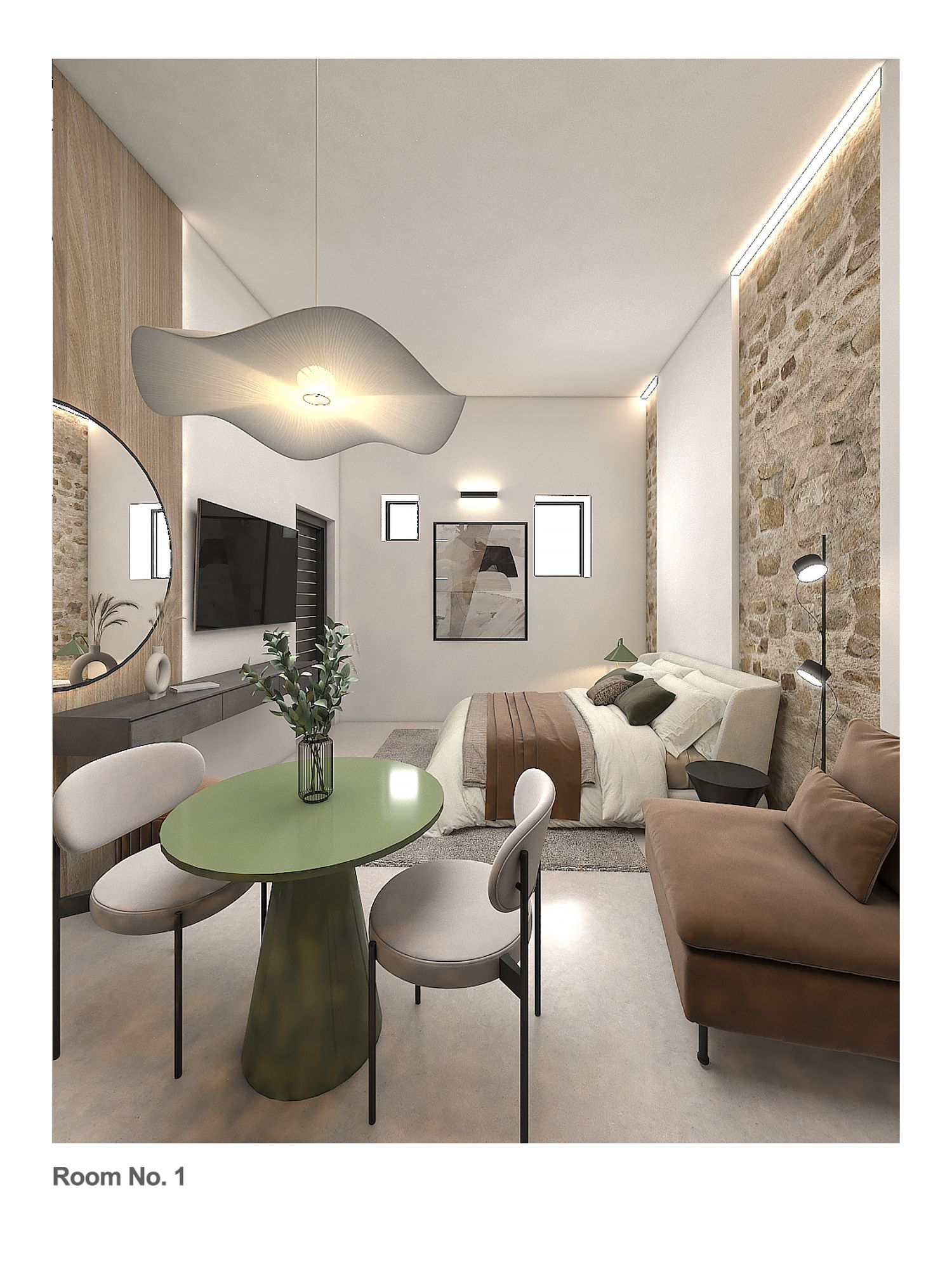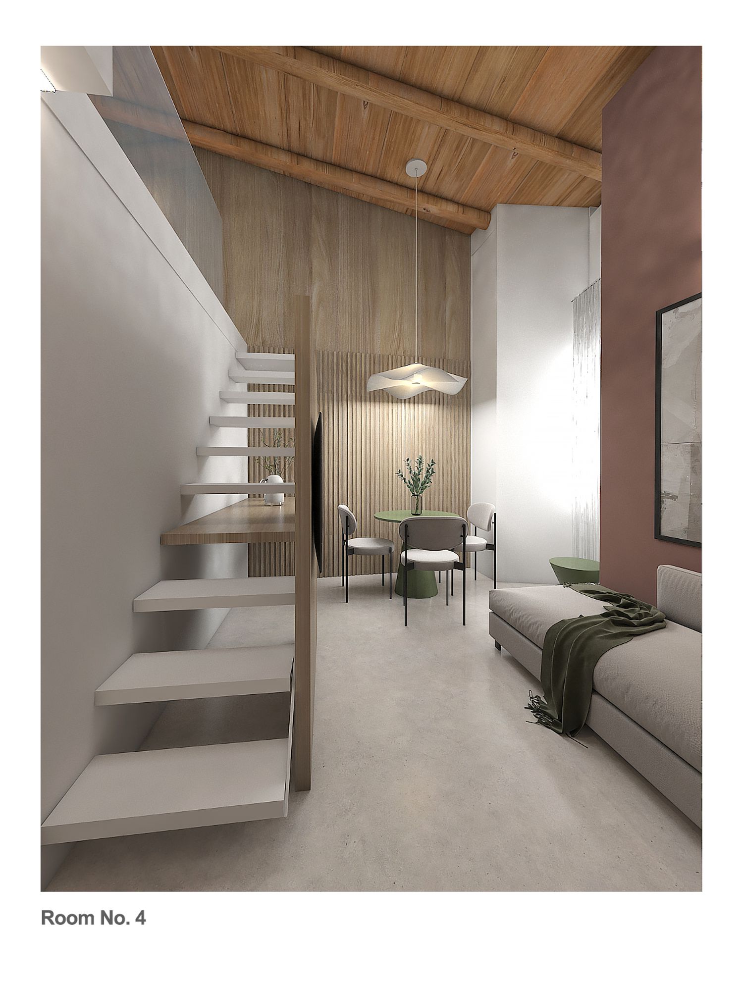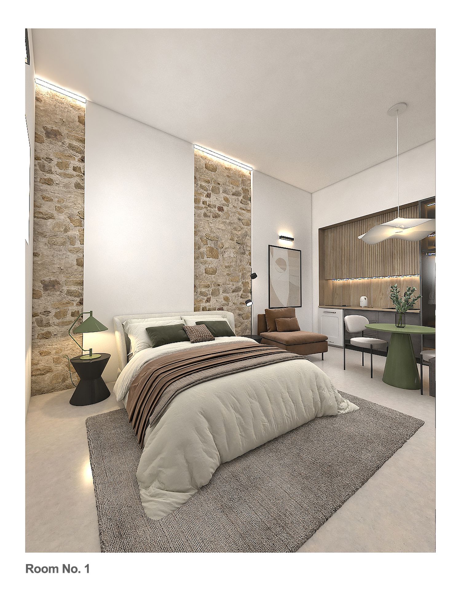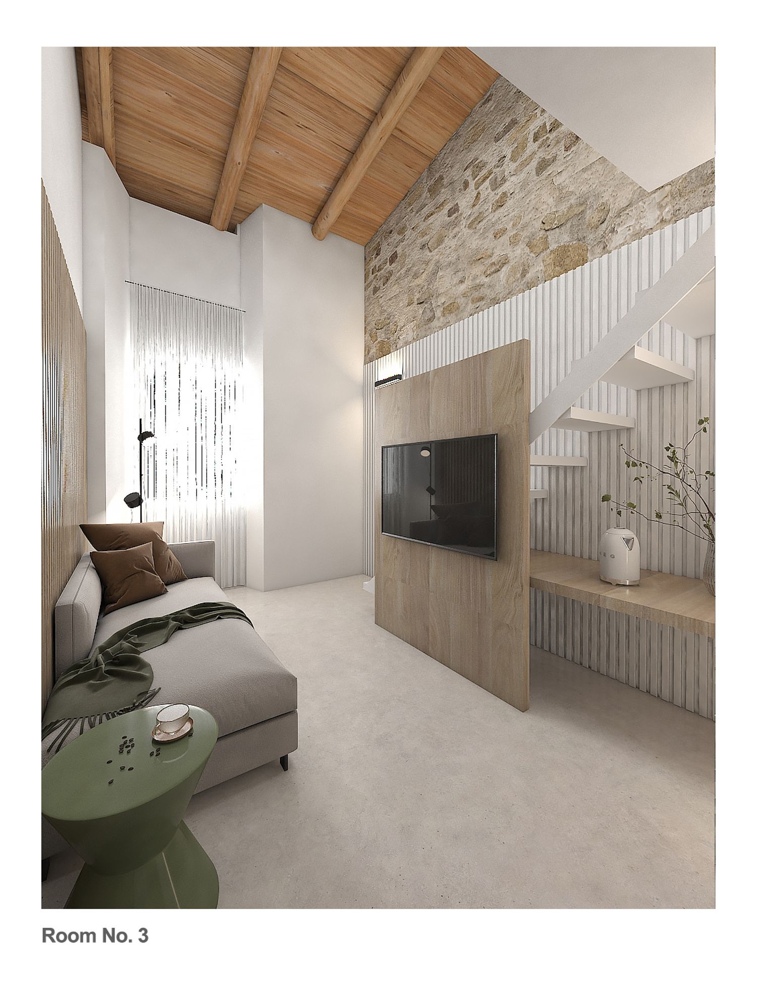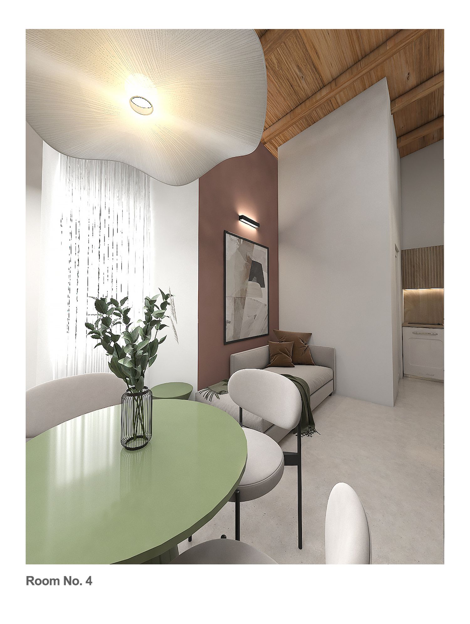 Two rooms have a small kitchen, one of which is planned on the first floor and the other on the ground floor to be used by guests who have difficulty navigating the stairs to the upper floor.