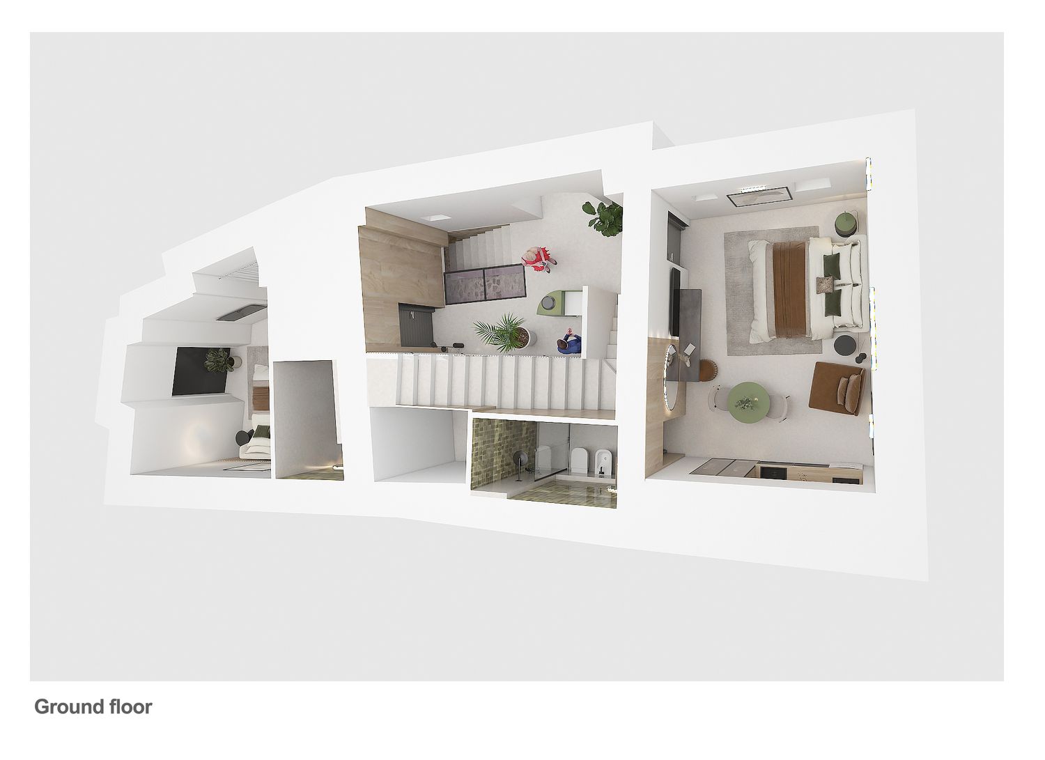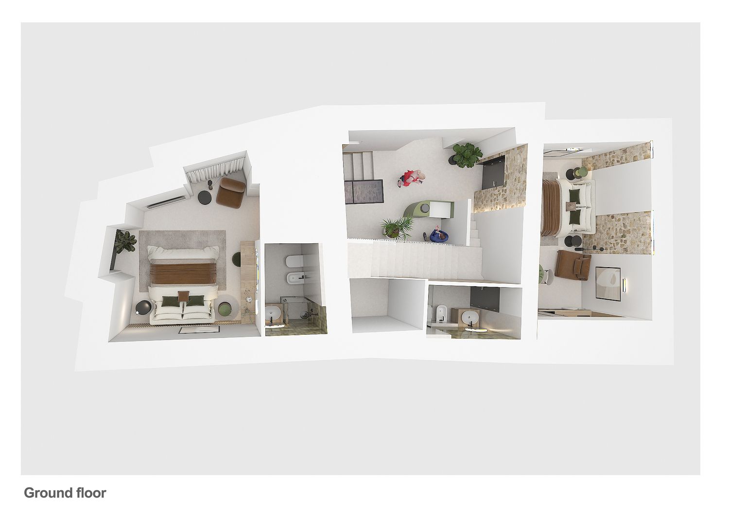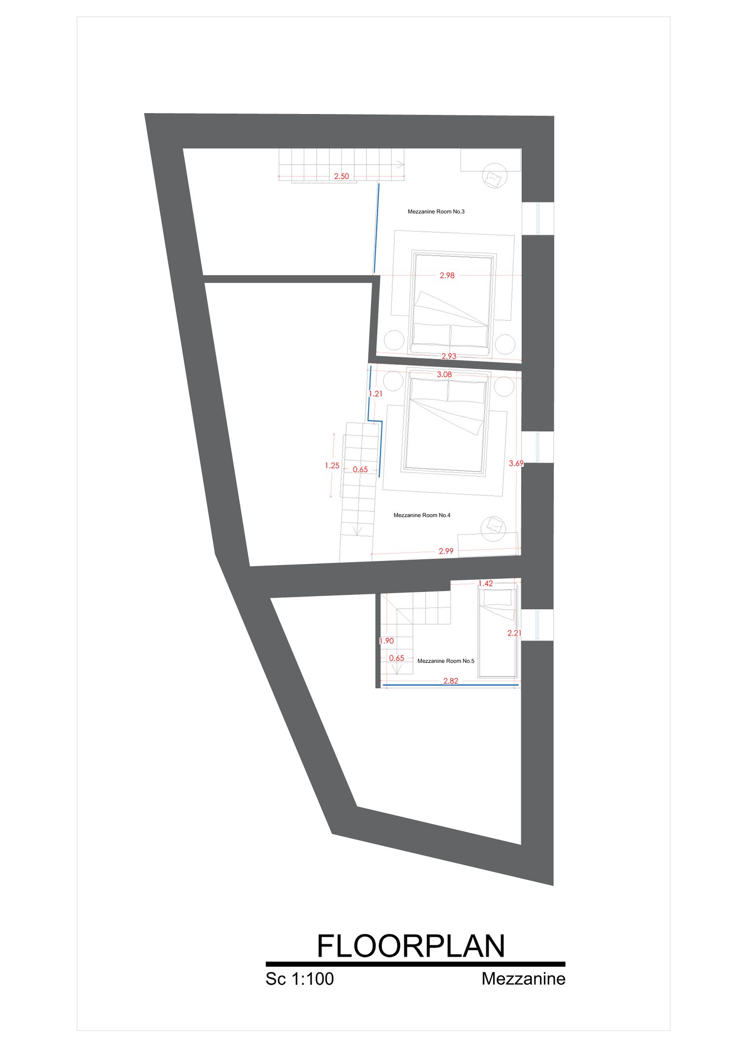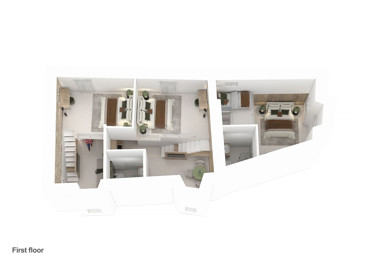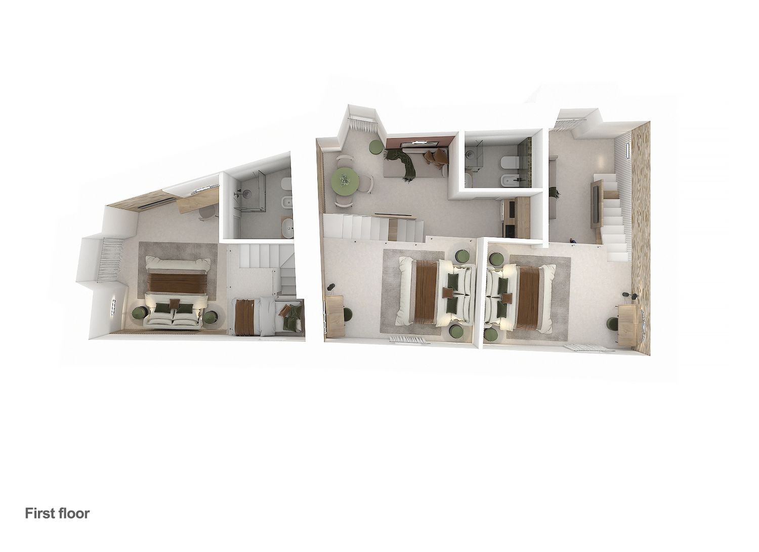 Two rooms have a small kitchen, one of which is planned on the first floor and the other on the ground floor to be used by guests who have difficulty navigating the stairs to the upper floor.