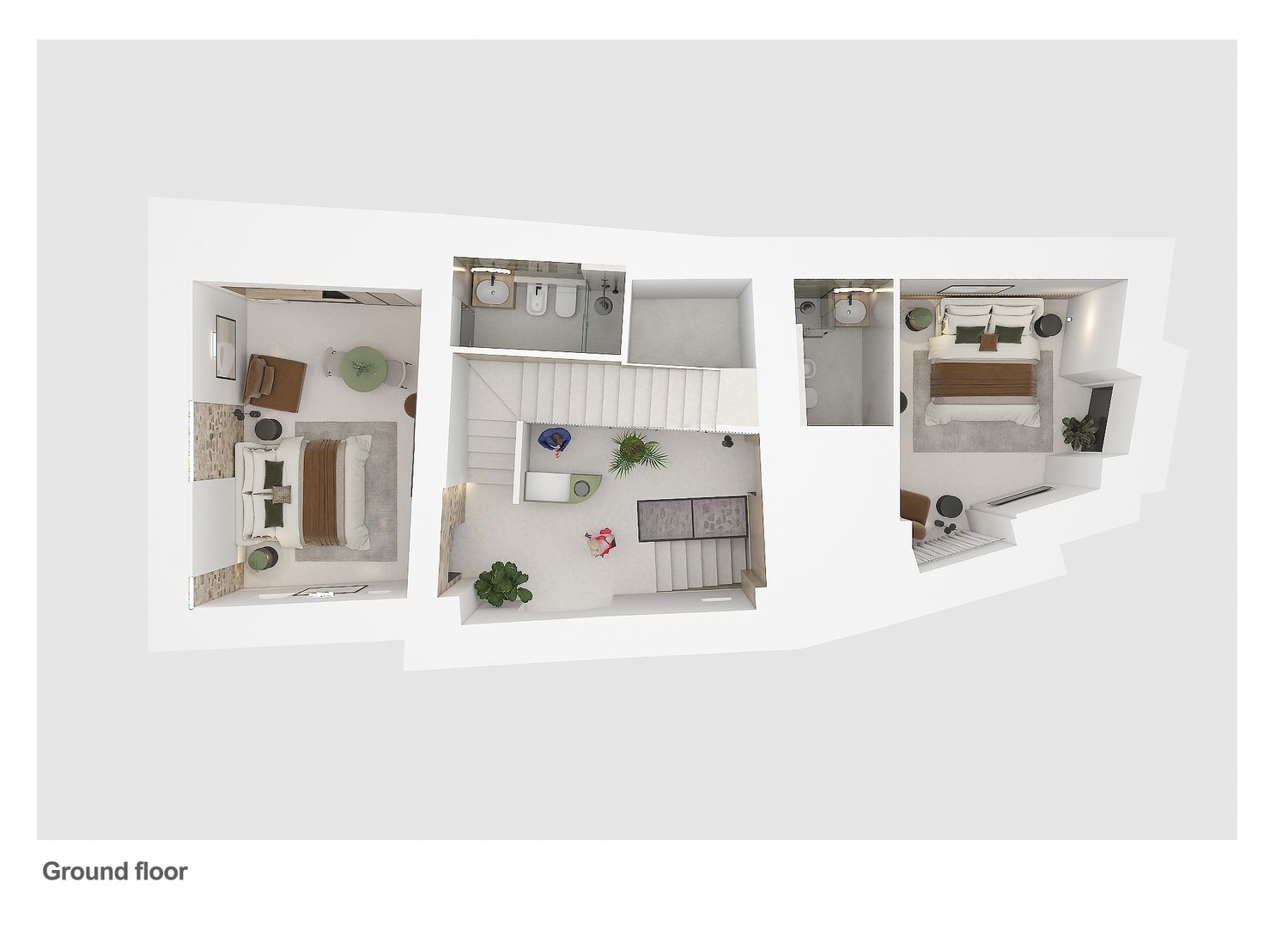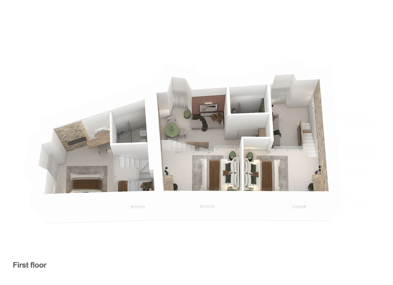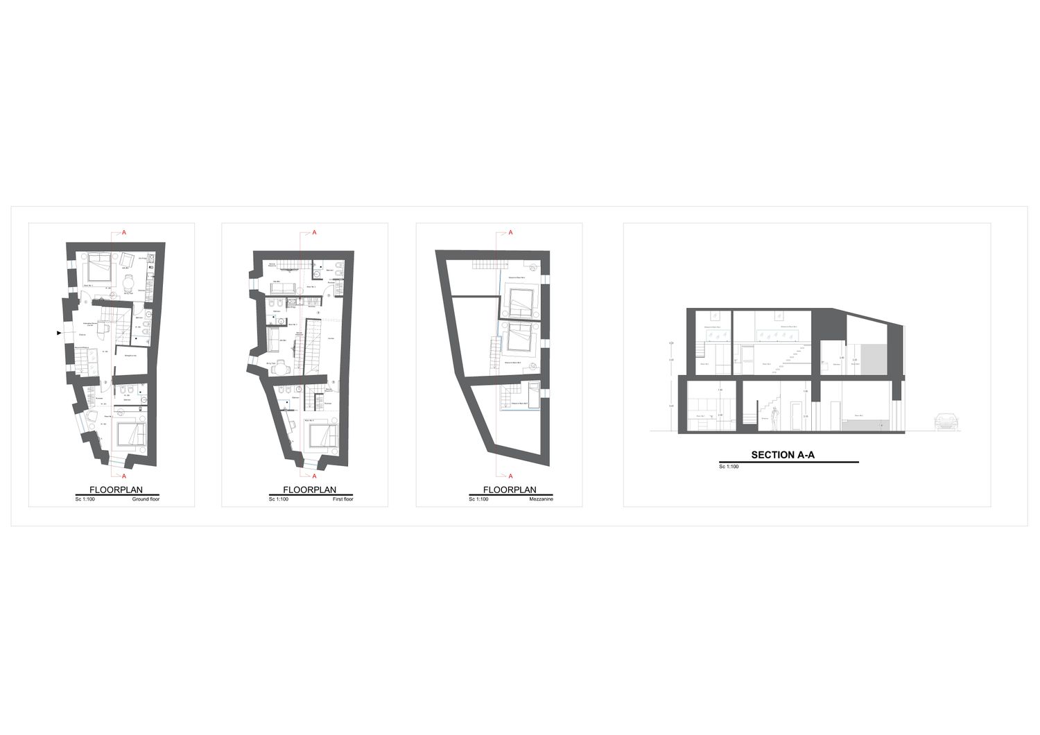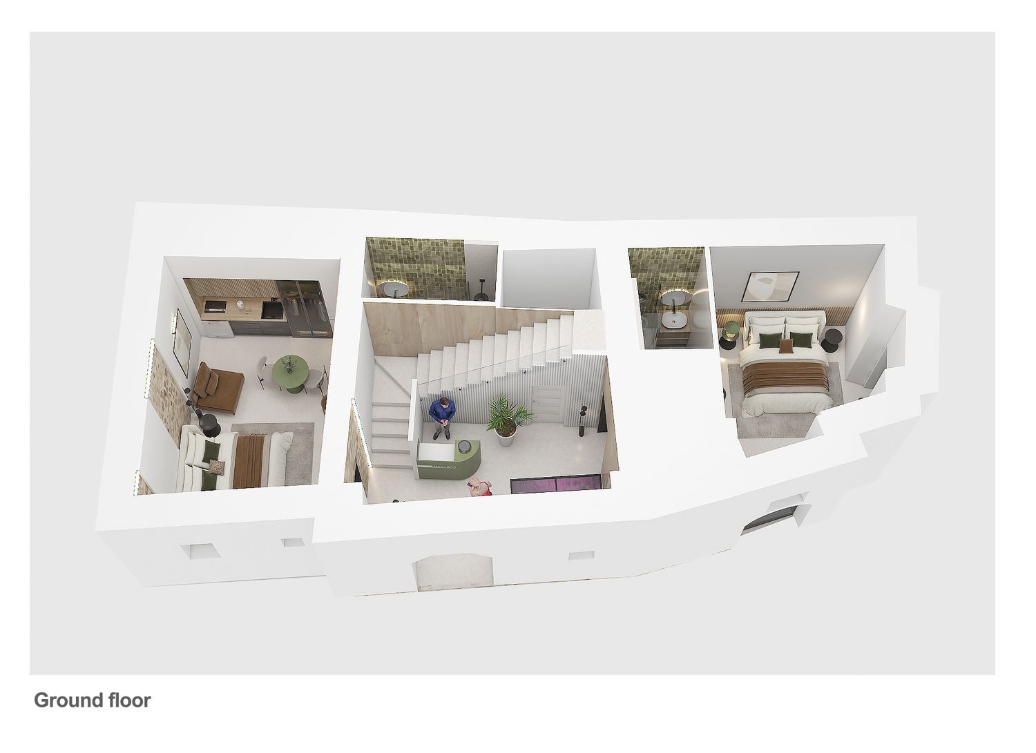 Two rooms are on the ground floor and 3 rooms with a mezzanine are on the first floor.