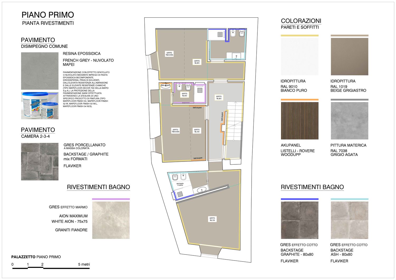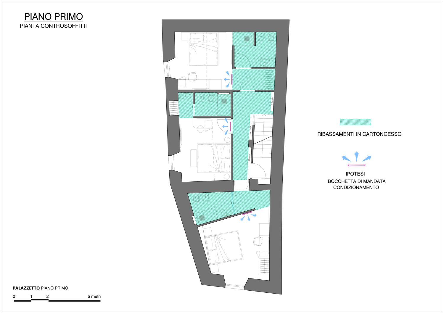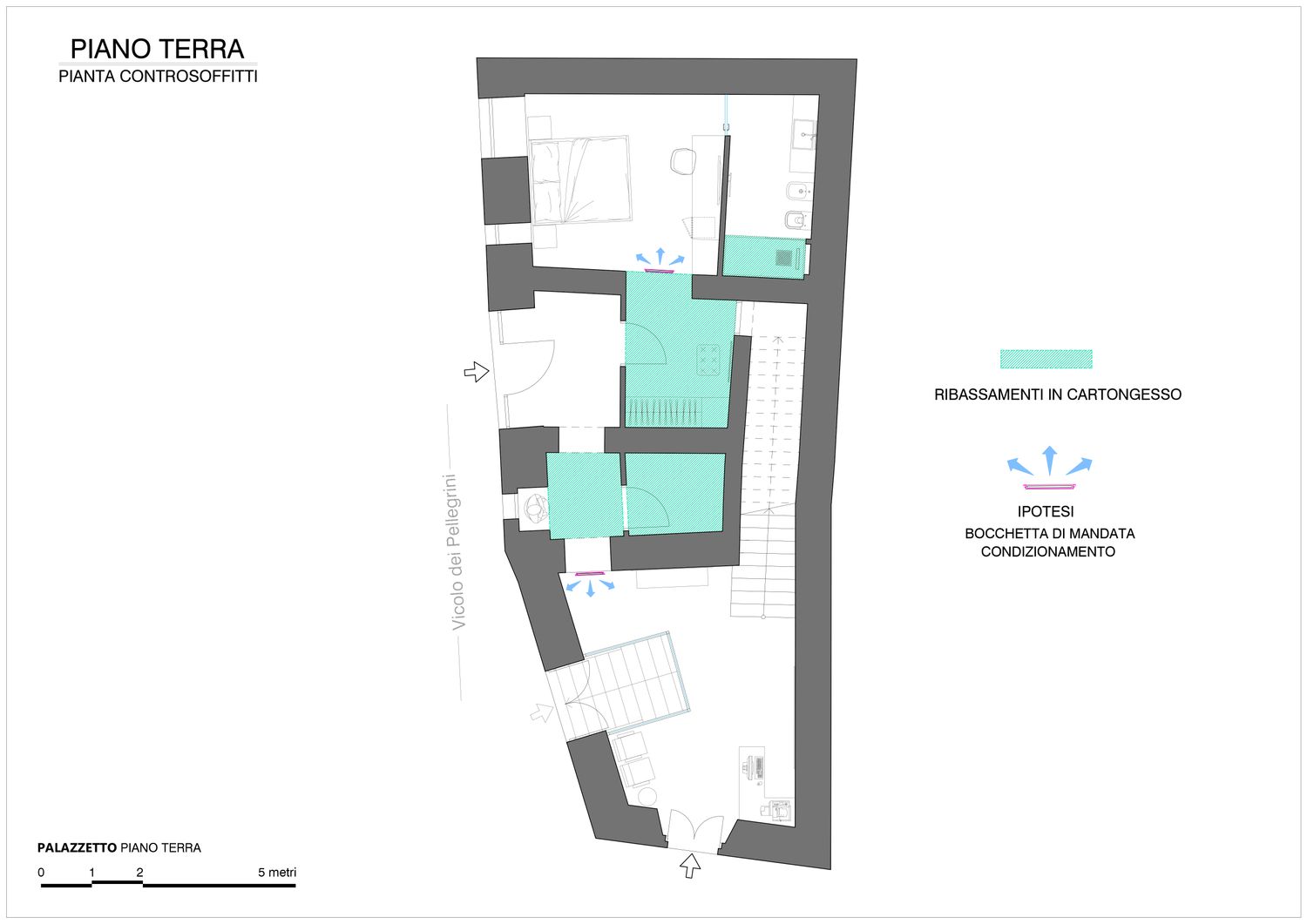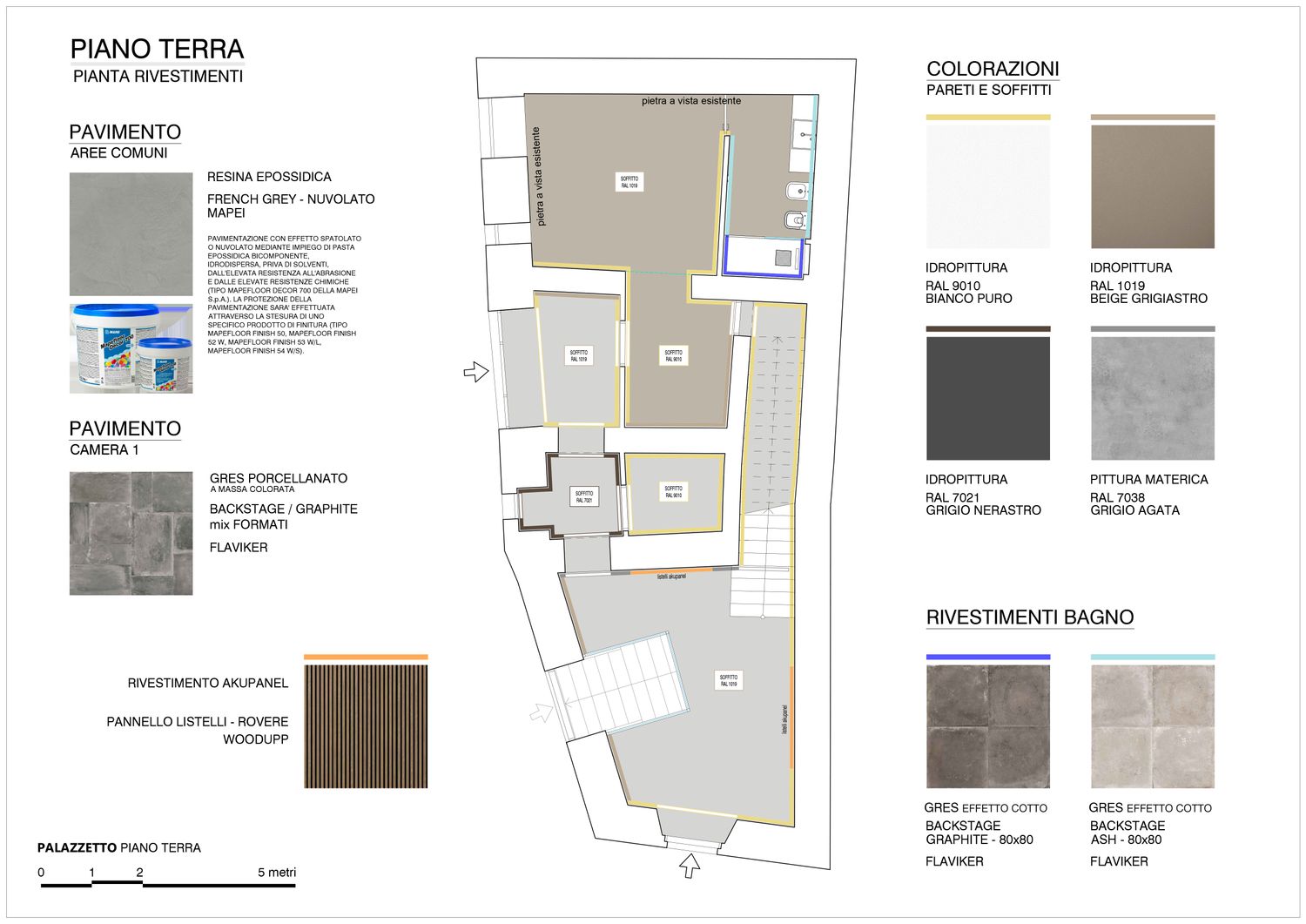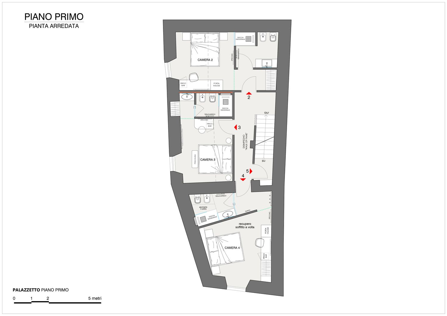 Il progetto propone il recupero e la valorizzazione di un palazzetto storico nel cuore di Viterbo, attraverso un intervento che fonde rispetto per l’architettura originaria e atmosfere contemporanee. L’edificio, articolato su più livelli e arricchito dalla presenza della grotta al piano interrato, viene trasformato in un B&B di charme con cinque camere, ciascuna caratterizzata da dettagli unici e da un linguaggio architettonico coerente.