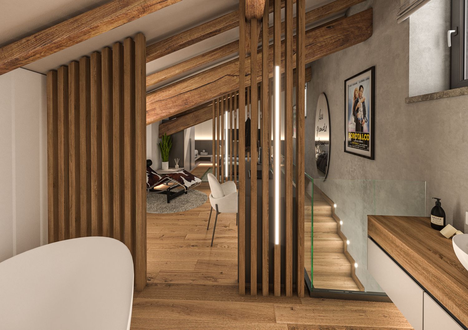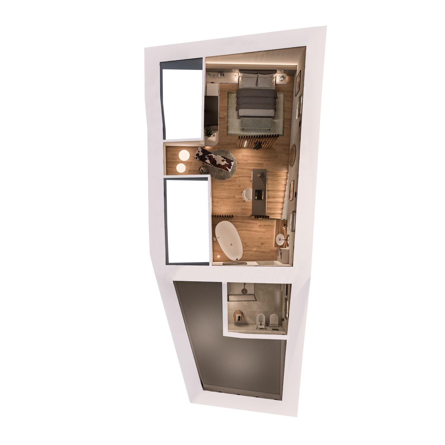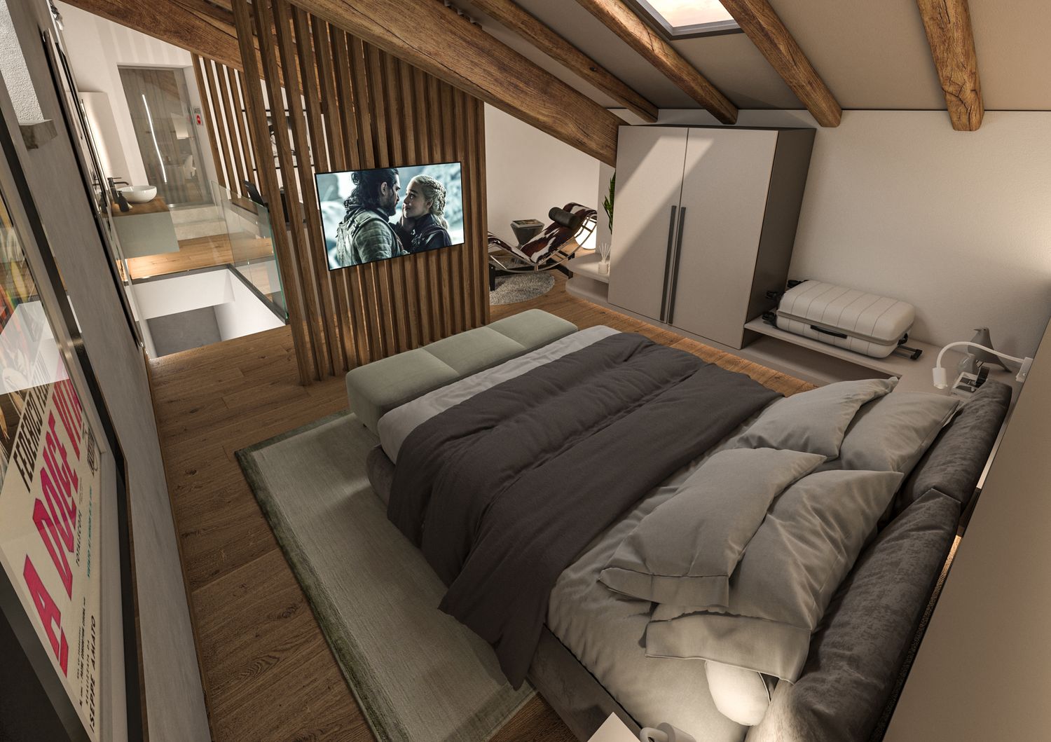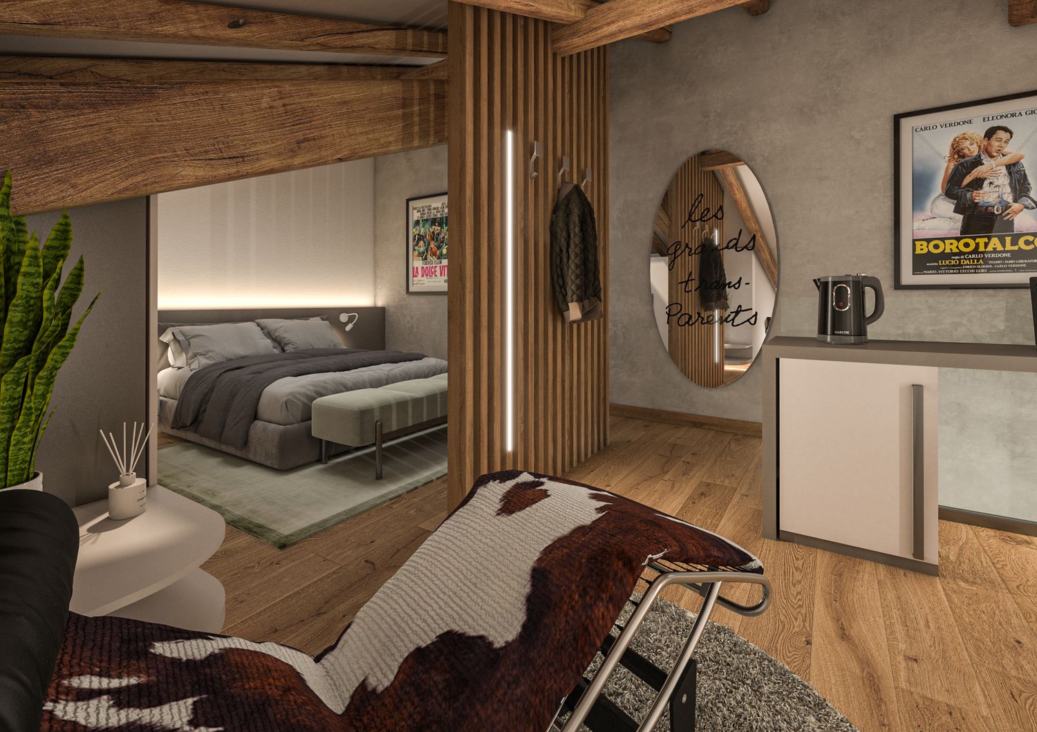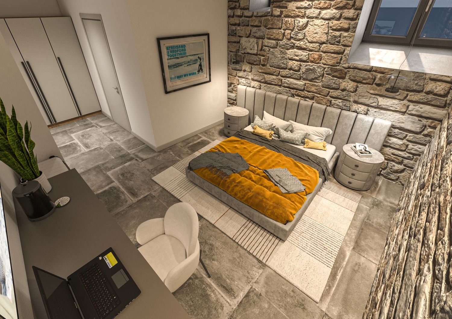 Il progetto propone il recupero e la valorizzazione di un palazzetto storico nel cuore di Viterbo, attraverso un intervento che fonde rispetto per l’architettura originaria e atmosfere contemporanee. L’edificio, articolato su più livelli e arricchito dalla presenza della grotta al piano interrato, viene trasformato in un B&B di charme con cinque camere, ciascuna caratterizzata da dettagli unici e da un linguaggio architettonico coerente.