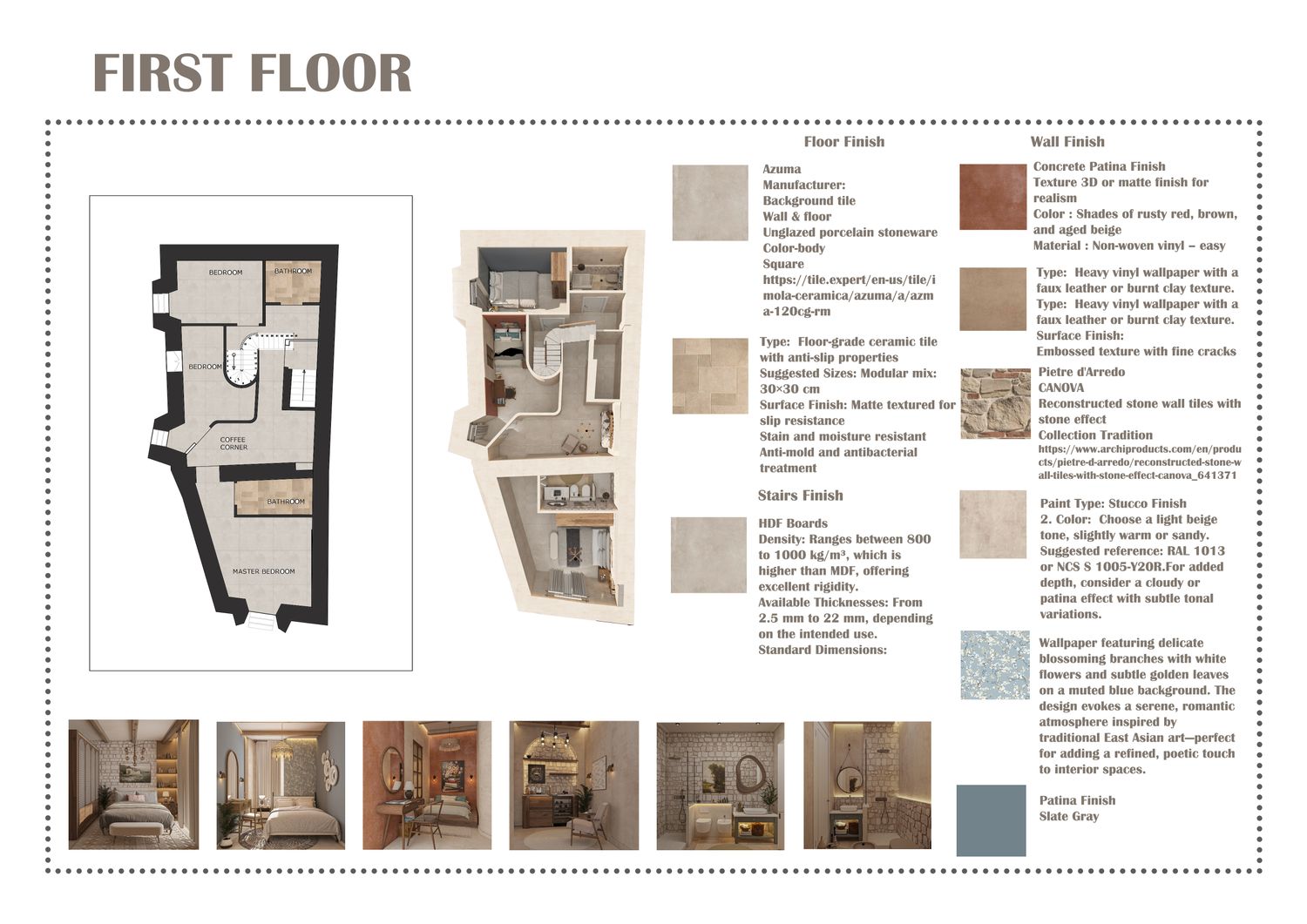 We're excited to share a brief overview of the design concept we've developed for your property, which is being transformed into a charming Bed & Breakfast that blends historical character with cozy elegance.