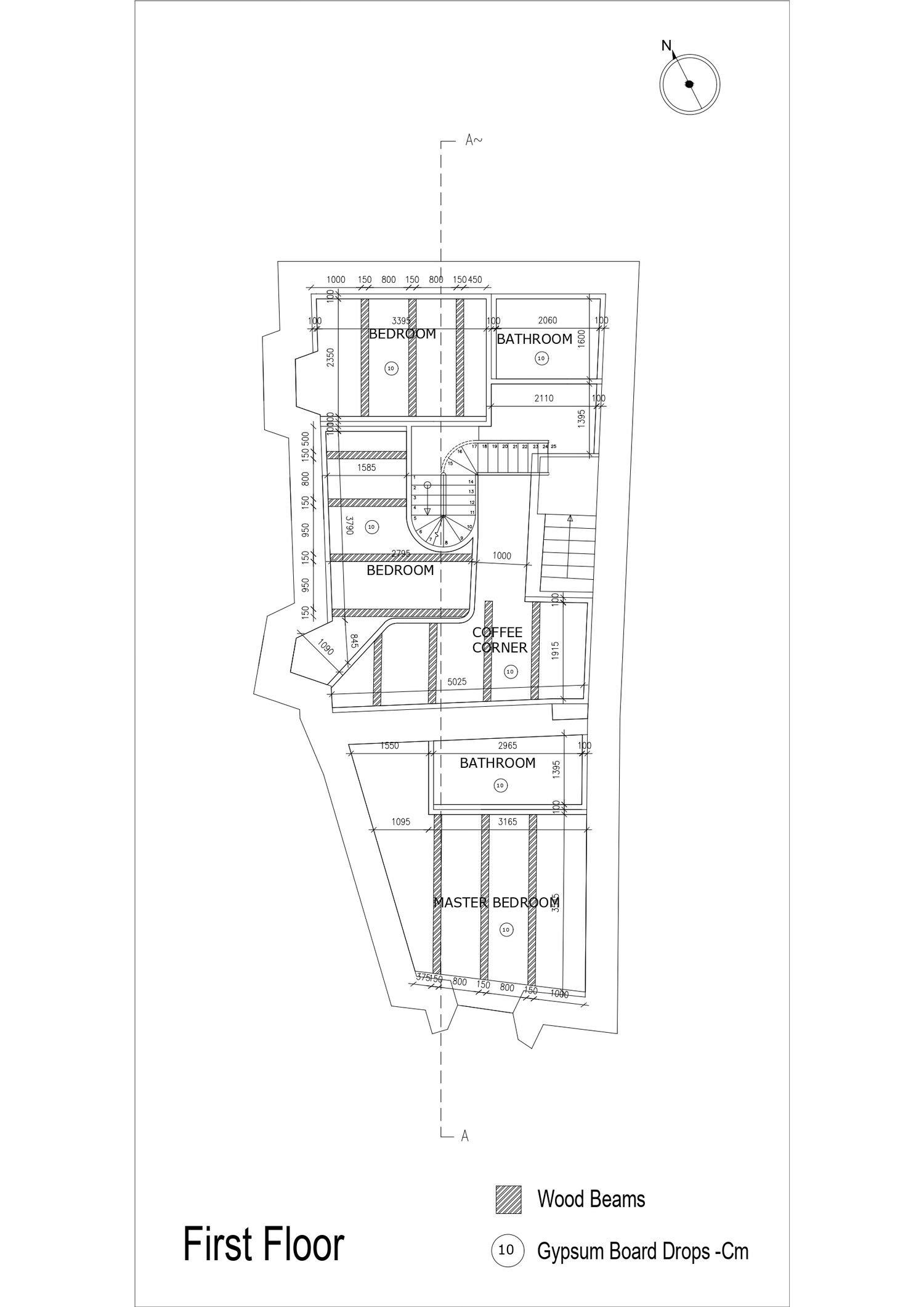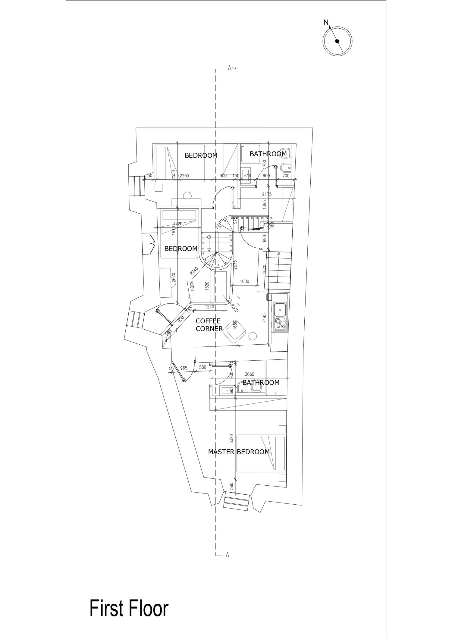 - First Floor Guests ascend via an elegant staircase to the first floor, which features three uniquely styled bedrooms, each with its own character and ambiance. A shared bathroom and a communal coffee and refreshment corner serve this level, encouraging interaction while maintaining comfort and privacy.