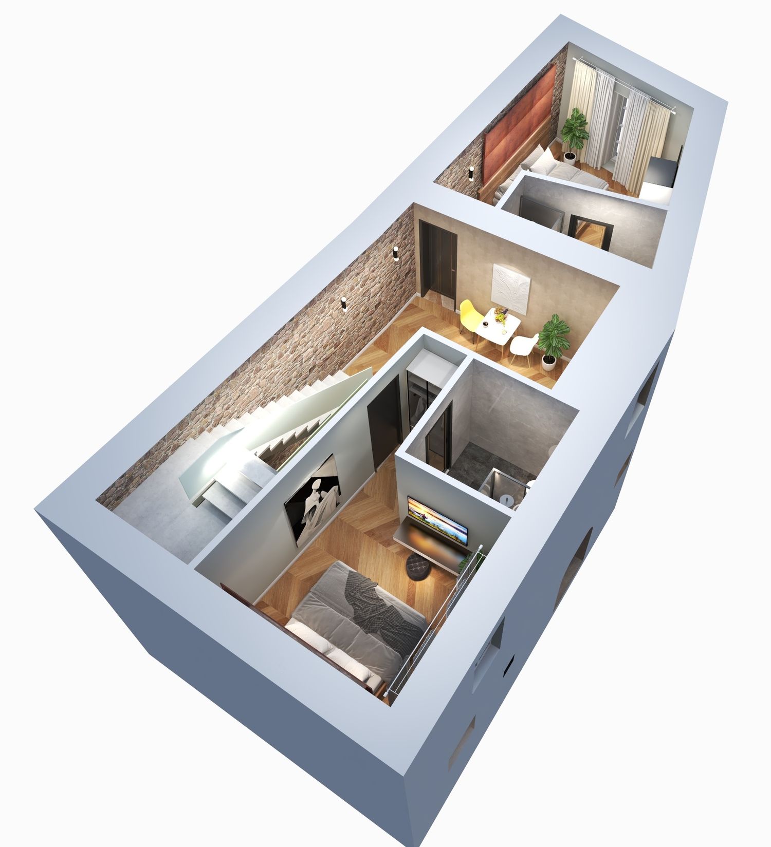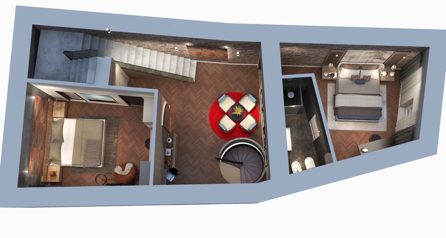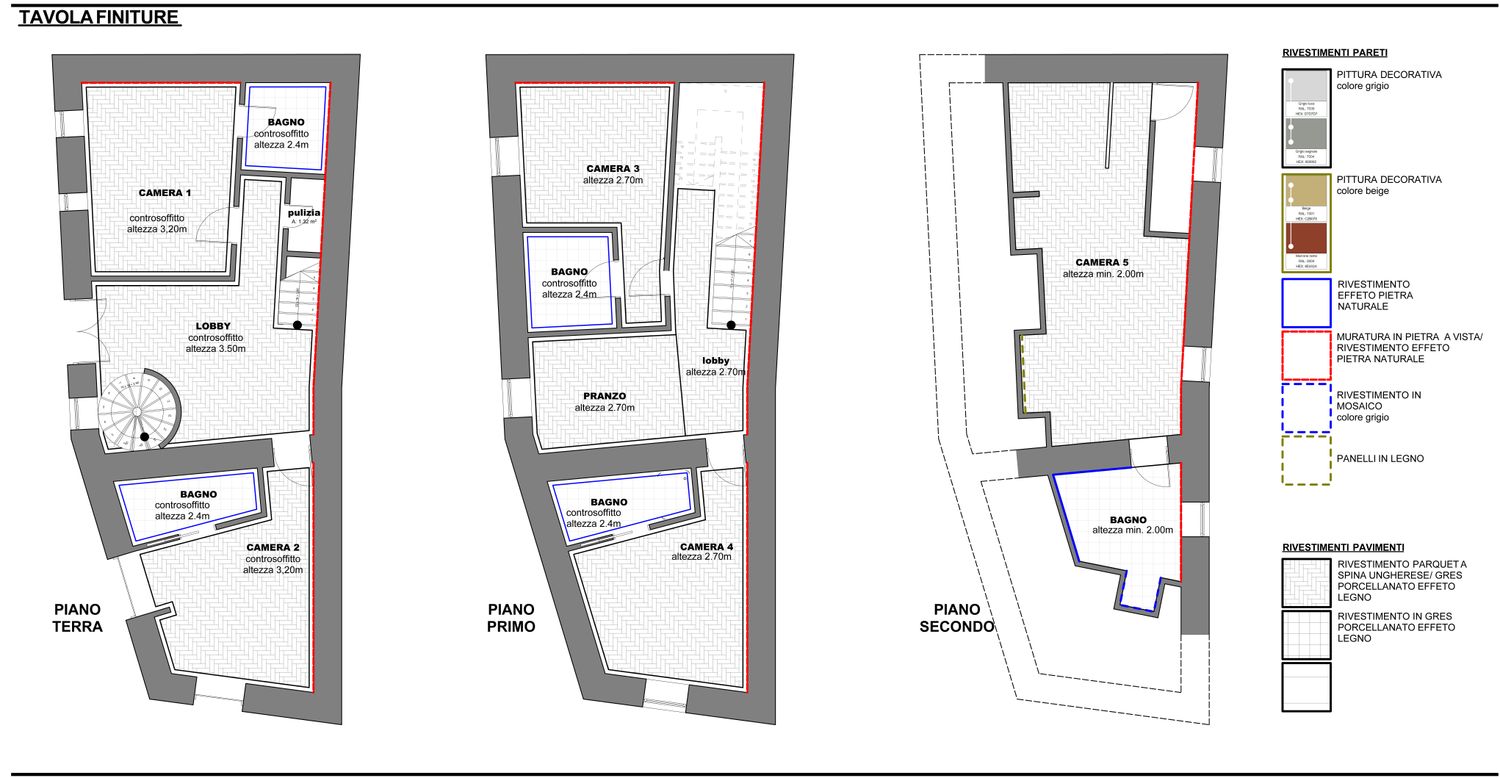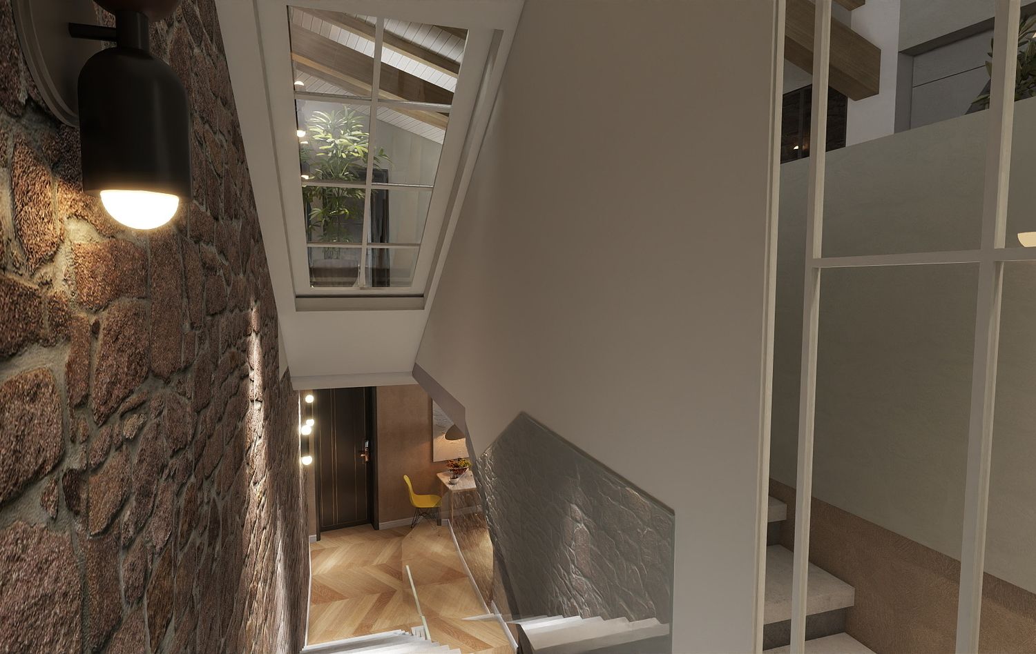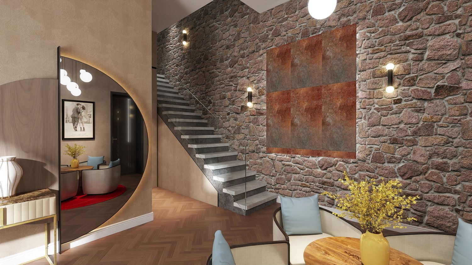 Il progetto interpreta il palazzetto storico di Piazza della Morte con un linguaggio contemporaneo, creando un boutique hotel di forte identità. L’anima medievale dell’edificio viene valorizzata attraverso la pietra a vista, mentre elementi moderni in metallo, vetro e legno naturale introducono un’estetica minimale e raffinata.