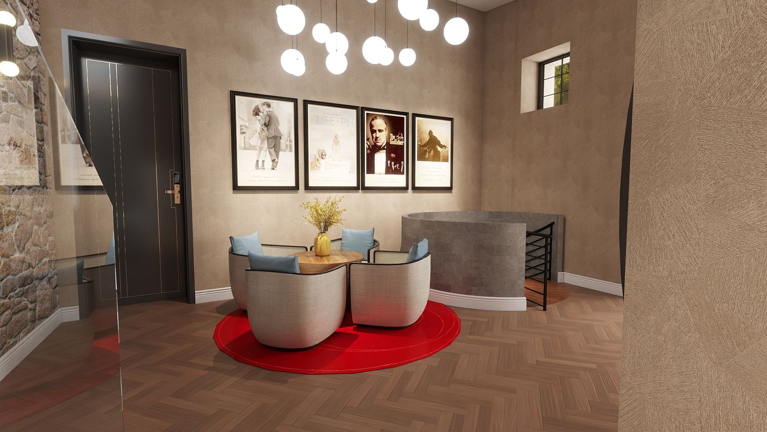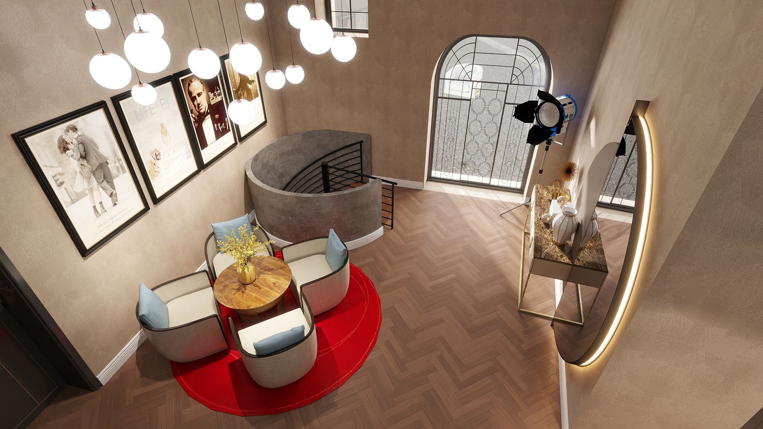 Il tema cinematografico, richiesto dalla proprietà, è integrato in modo elegante tramite luci scenografiche, specchi retroilluminati, composizioni artistiche e richiami iconici, senza risultare invasivo.