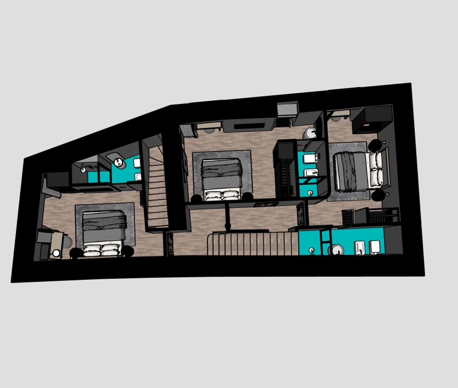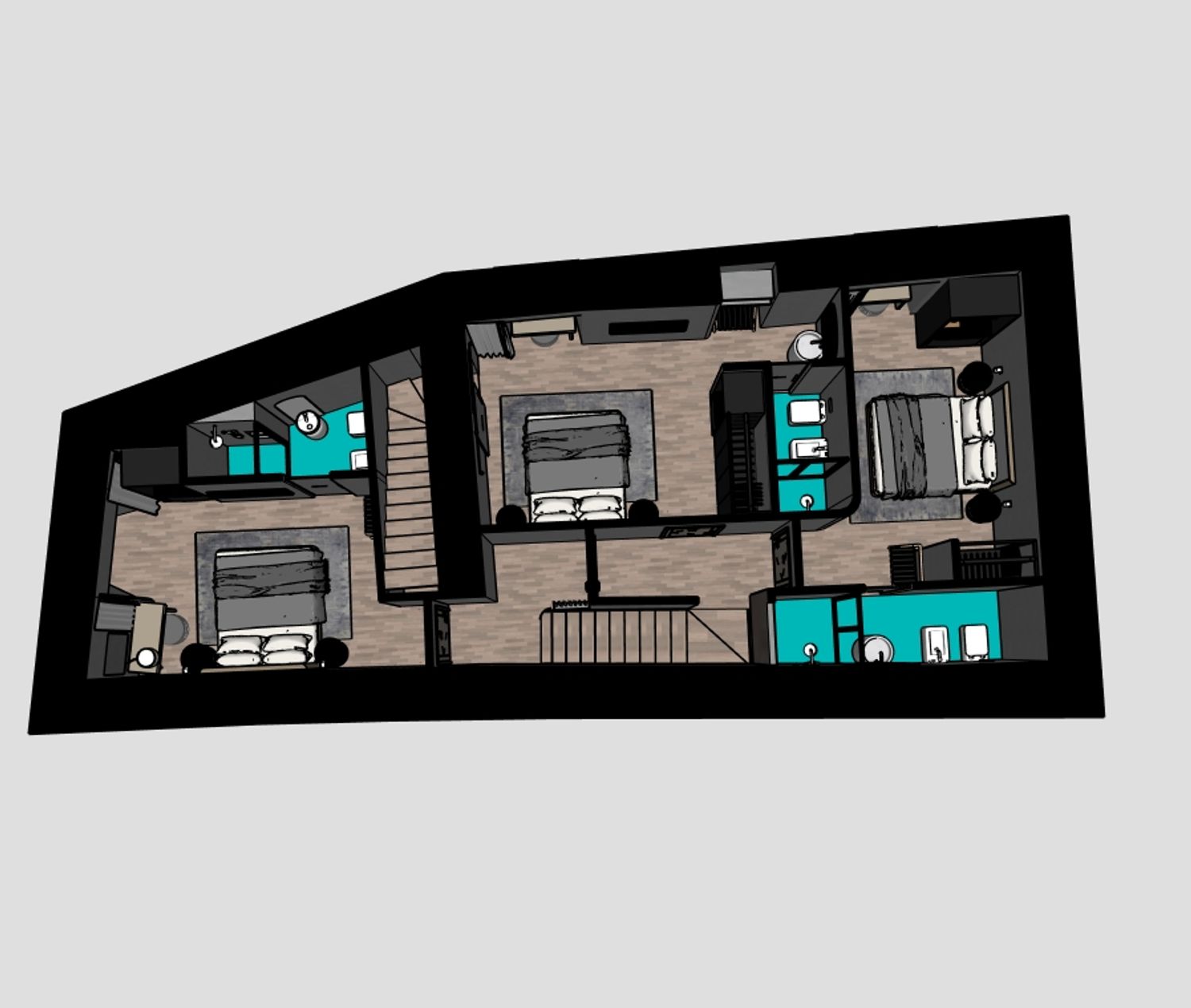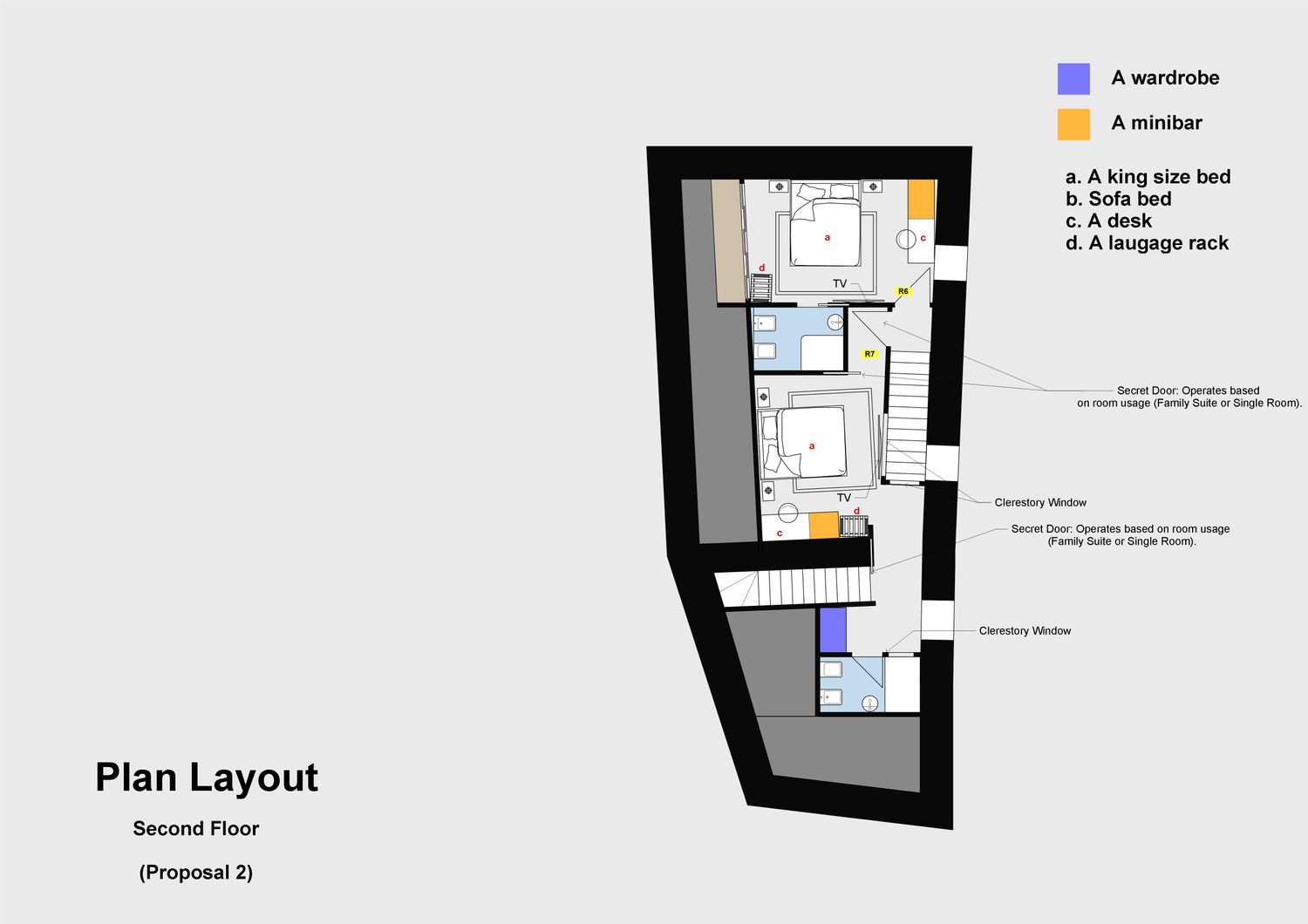 Flexible Room Configurations (7 Rooms Total): The hotel will feature a total of seven rooms, each designed for individual booking and equipped with its own luxurious en-suite bathroom. A core aspect of the design is the flexibility to cater to varying guest needs: