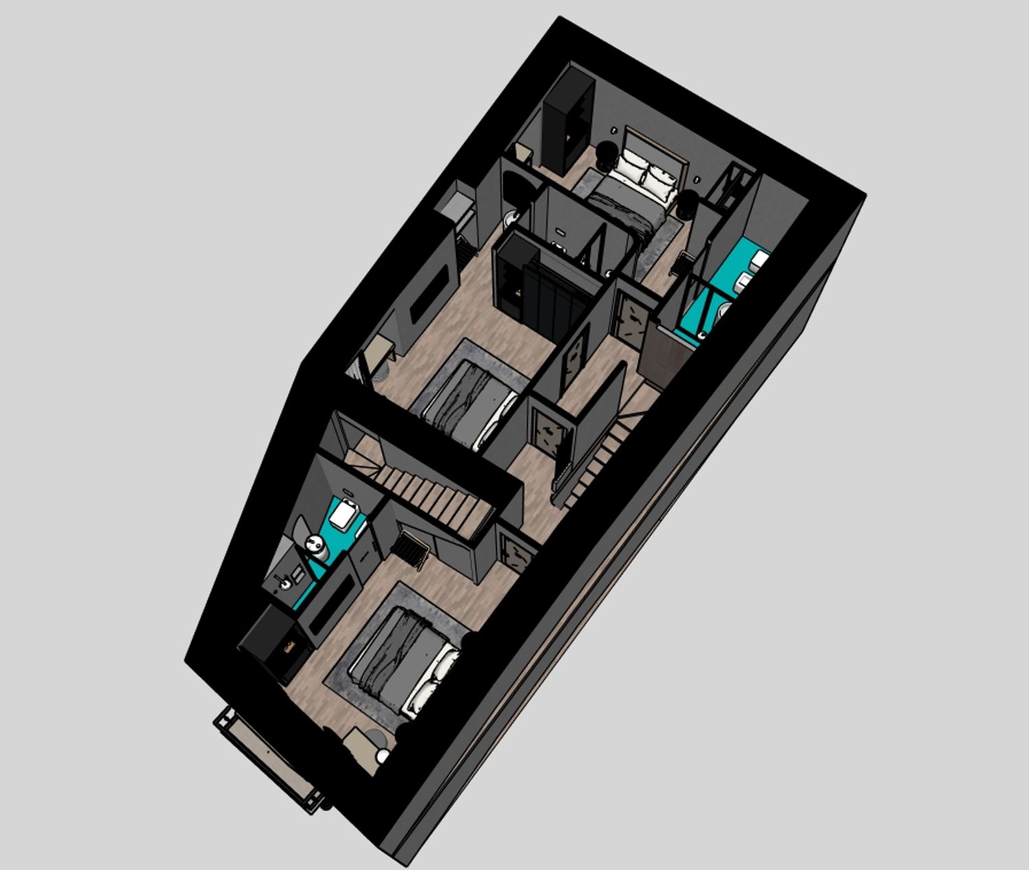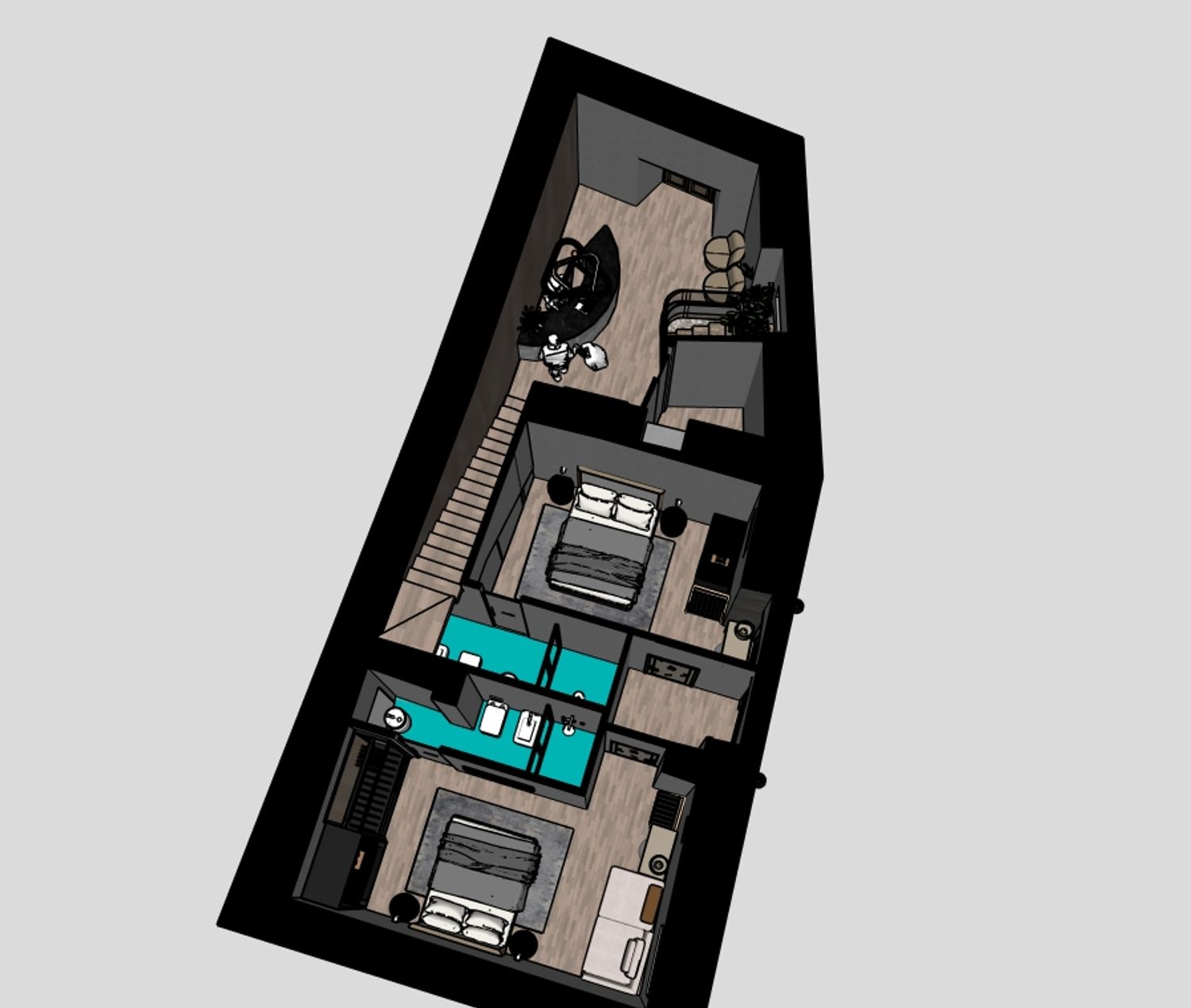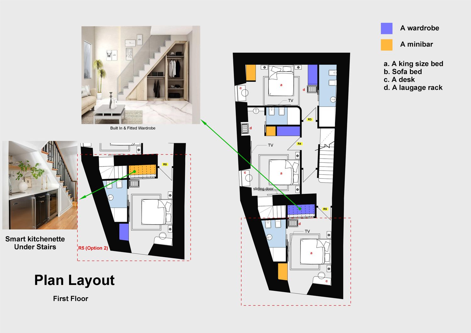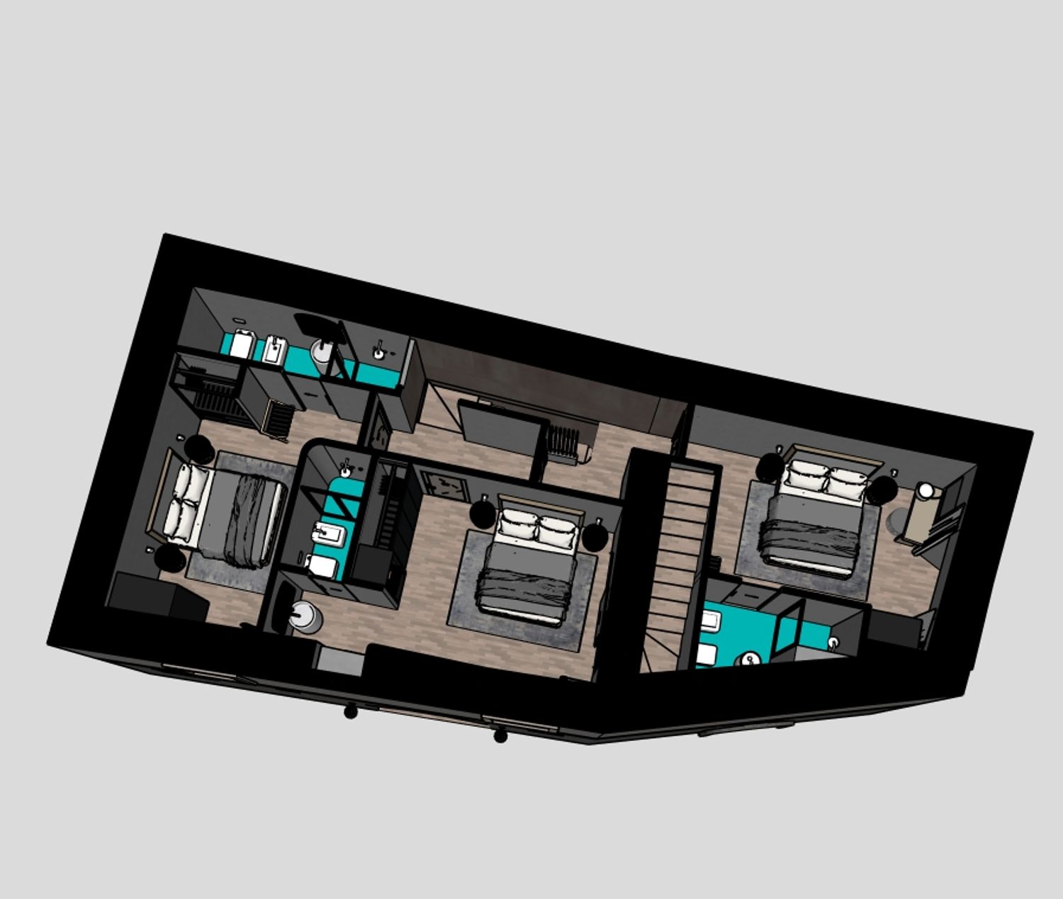 Flexible Room Configurations (7 Rooms Total): The hotel will feature a total of seven rooms, each designed for individual booking and equipped with its own luxurious en-suite bathroom. A core aspect of the design is the flexibility to cater to varying guest needs: