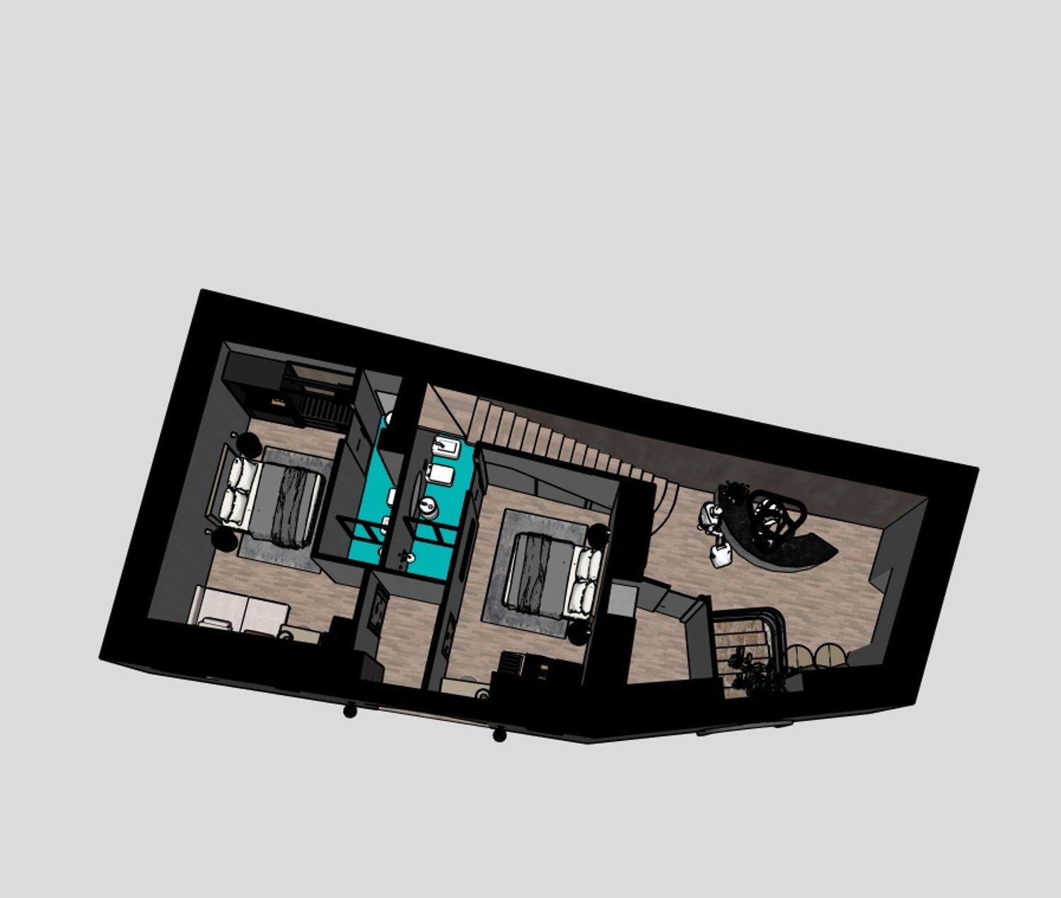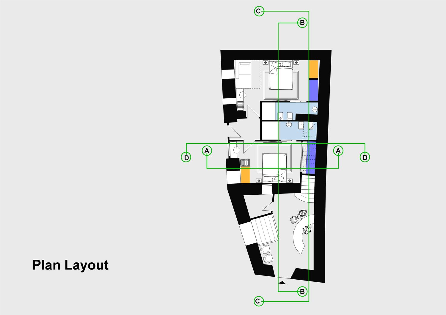 Internal Staircase: An elegant, space-saving internal staircase connecting different levels within the family suite.