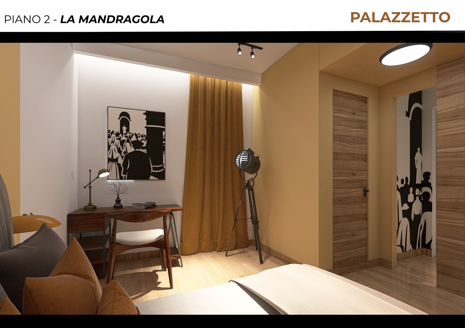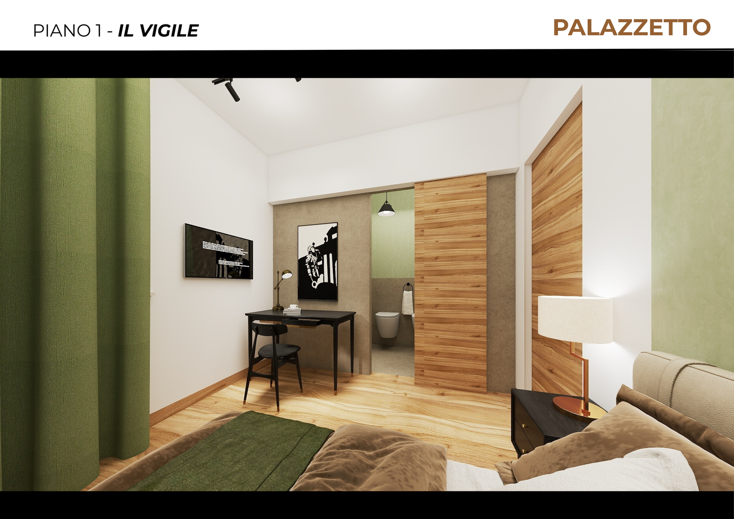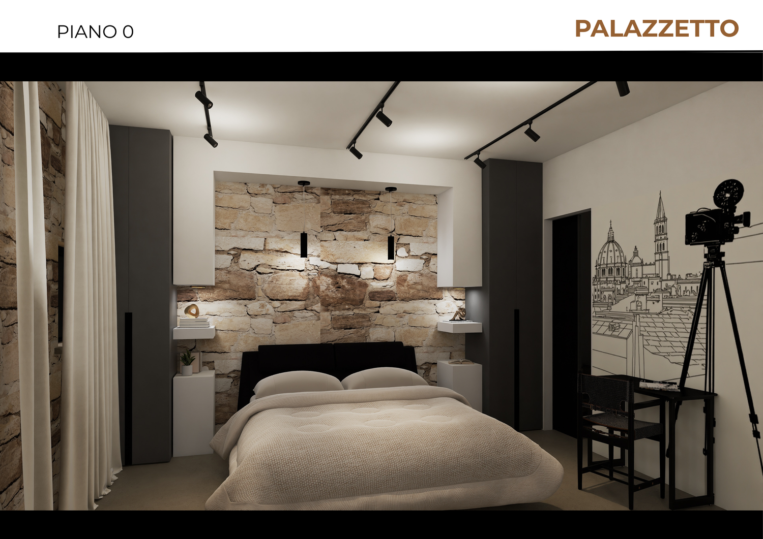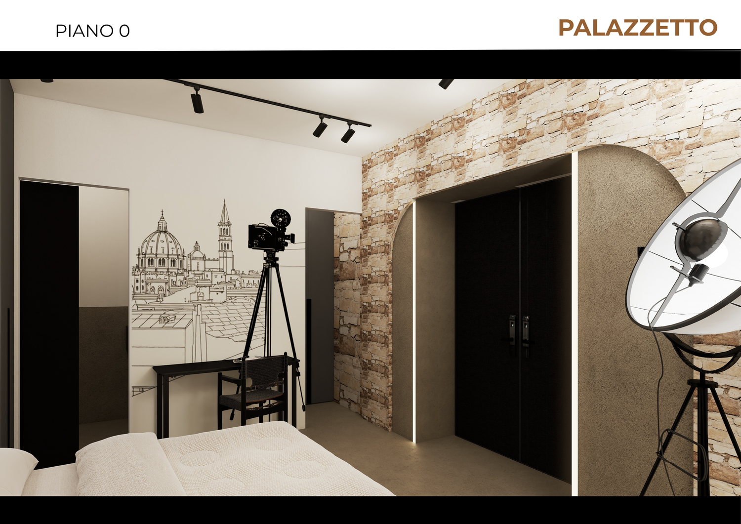 Con questo progetto ho cercato di dare forma a un’idea di ospitalità che rispetti l’anima dell’edificio e al tempo stesso valorizzi il tema cinematografico indicato, creando ambienti accoglienti, armoniosi e legati al contesto unico di Viterbo.
