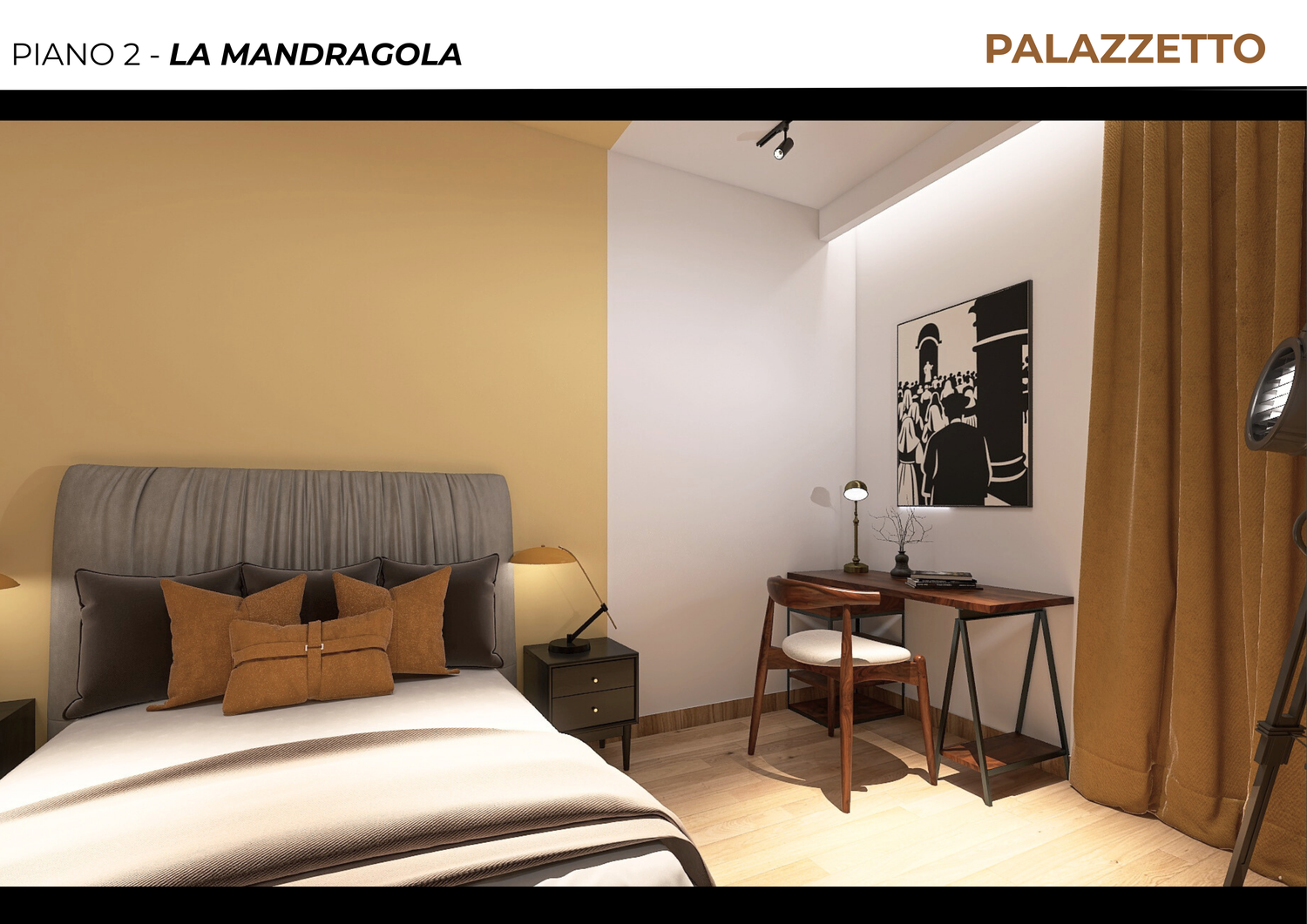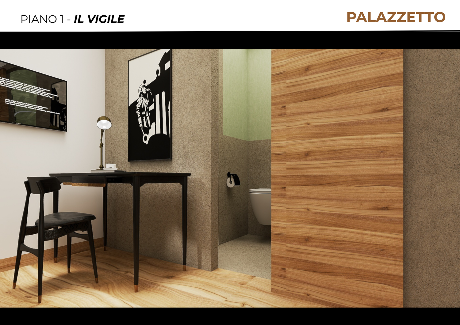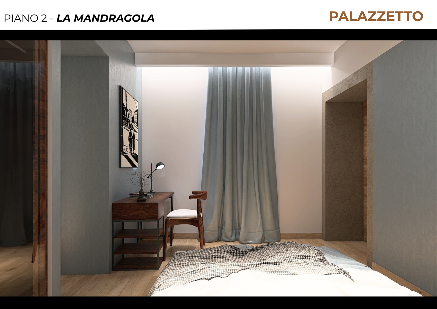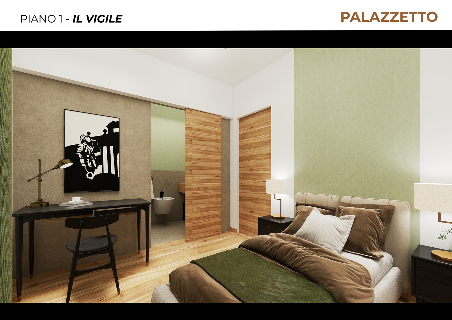 Con questo progetto ho cercato di dare forma a un’idea di ospitalità che rispetti l’anima dell’edificio e al tempo stesso valorizzi il tema cinematografico indicato, creando ambienti accoglienti, armoniosi e legati al contesto unico di Viterbo.