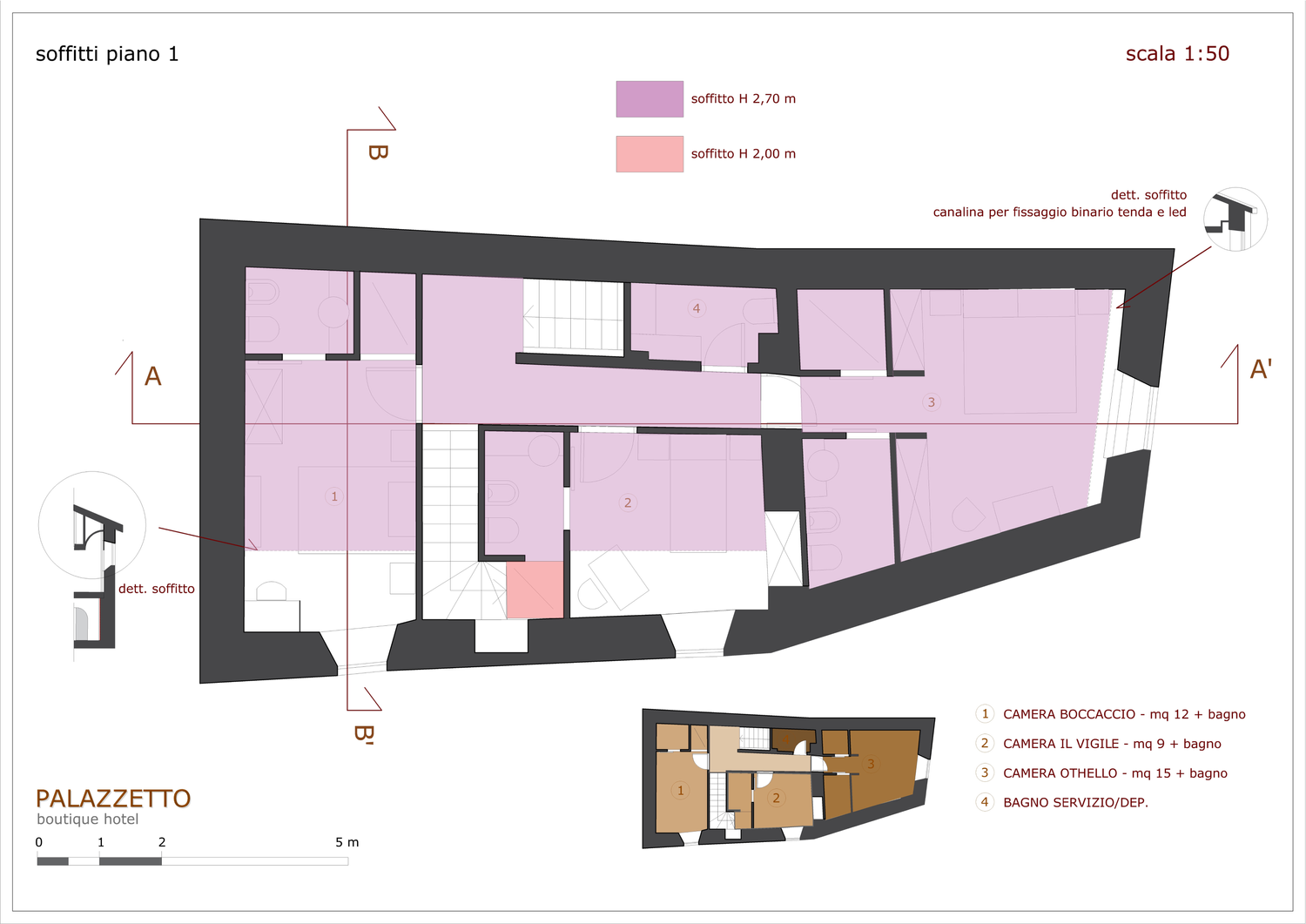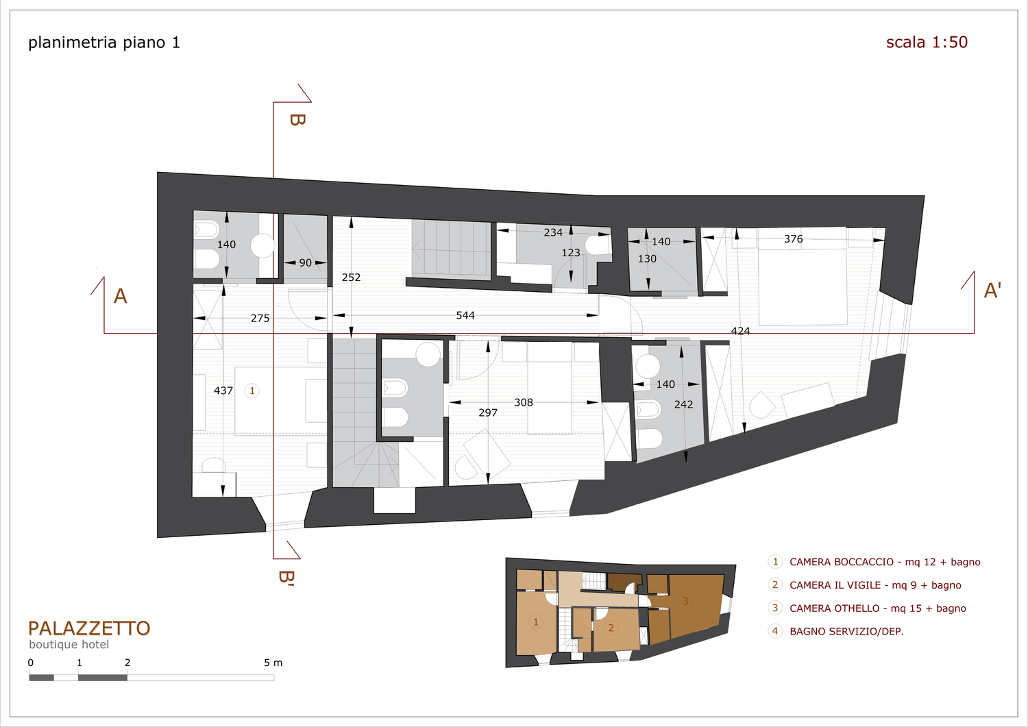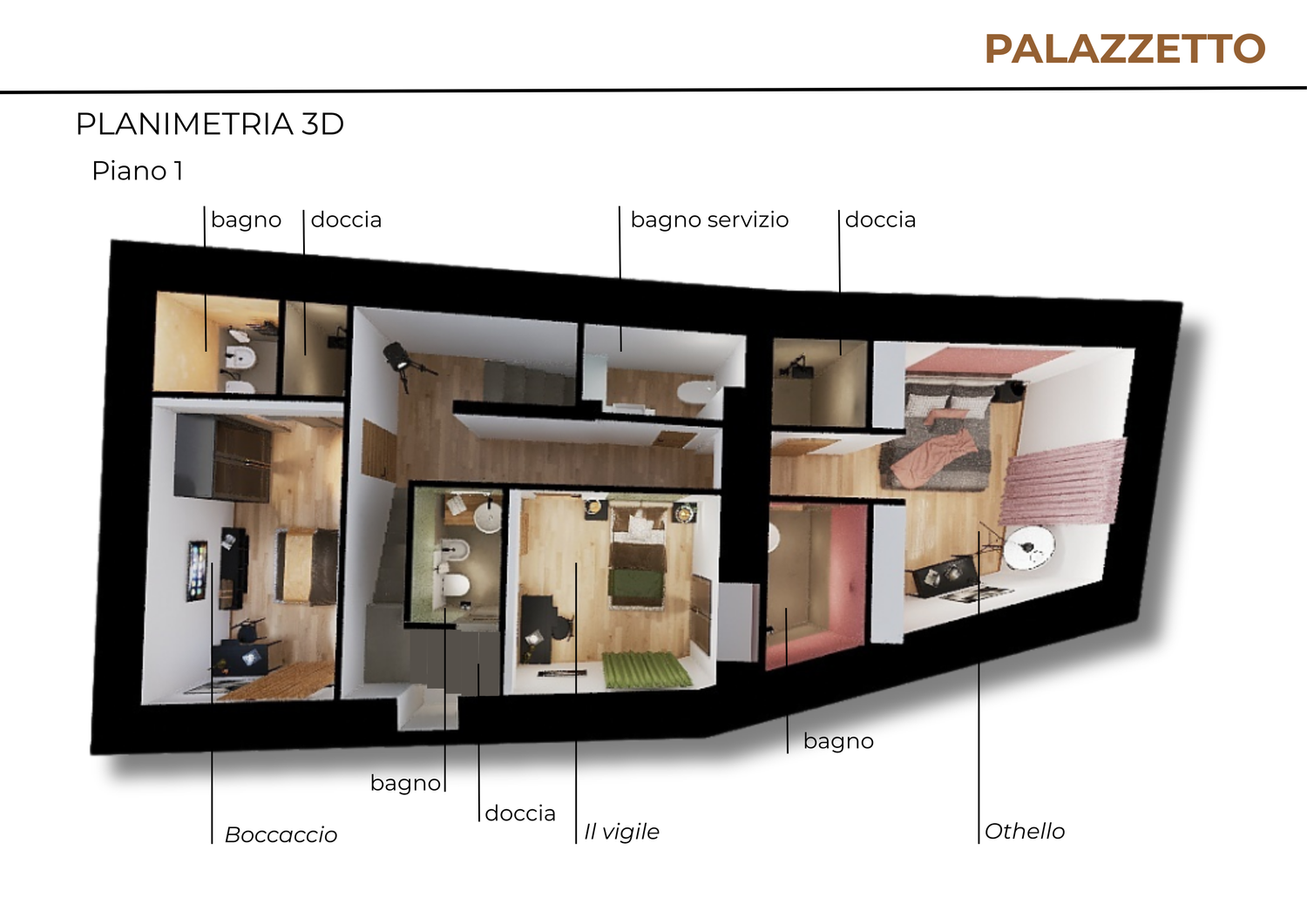 • Camera “Boccaccio”: circa 12 m² + bagno