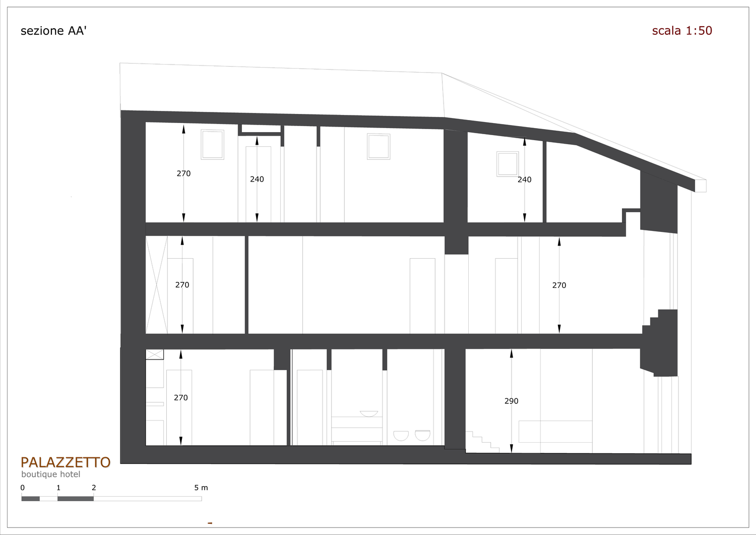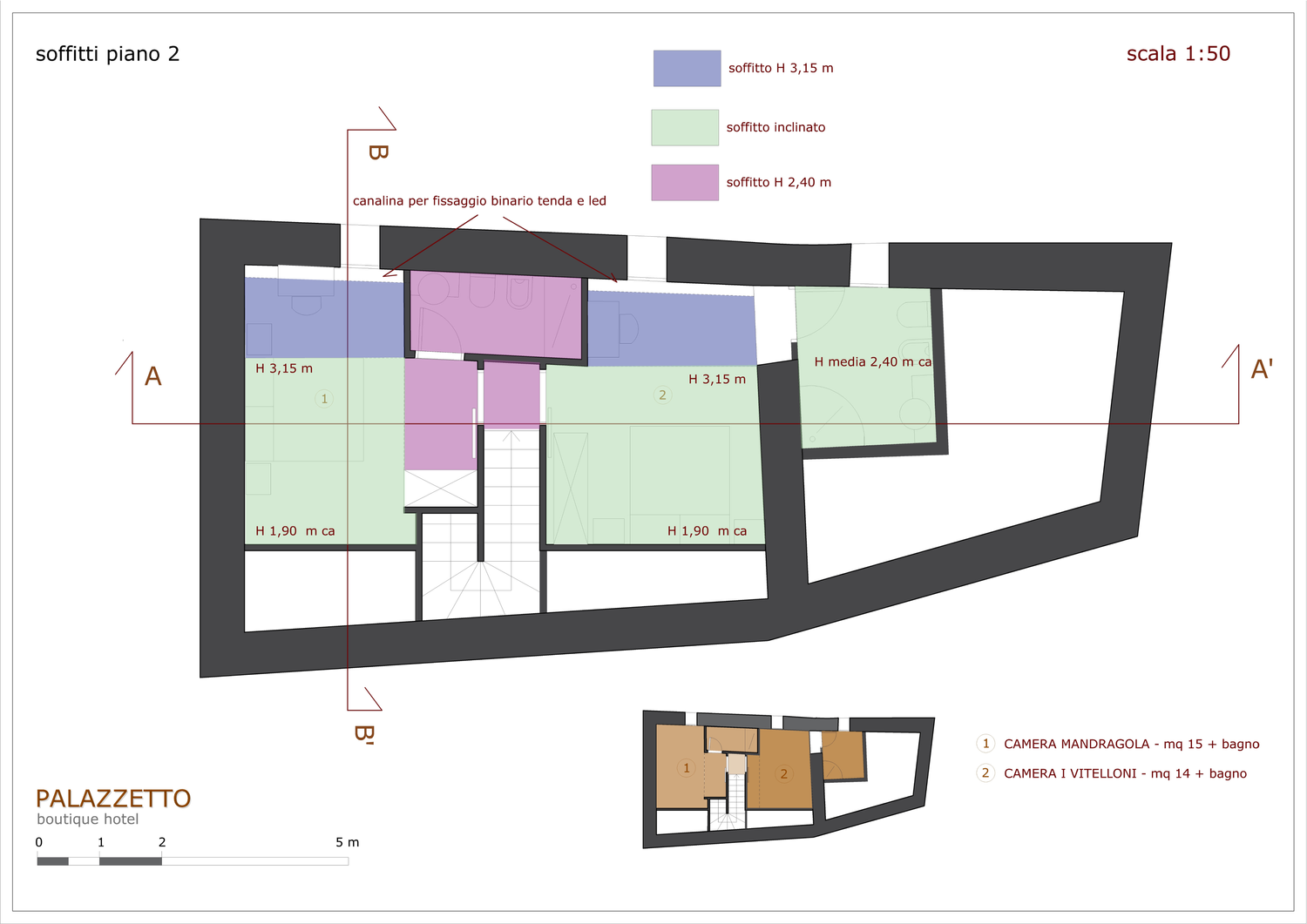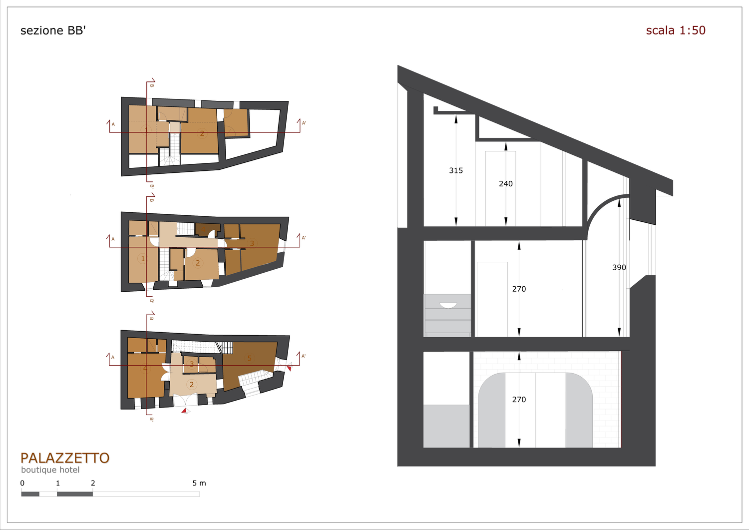 Il progetto dell’Hotel Boutique "Palazzetto" si sviluppa intorno a due temi guida: il territorio locale, inteso come identità storica e materica della città di Viterbo, e il cinema, elemento suggerito dalla committenza come caratterizzazione distintiva della struttura.
